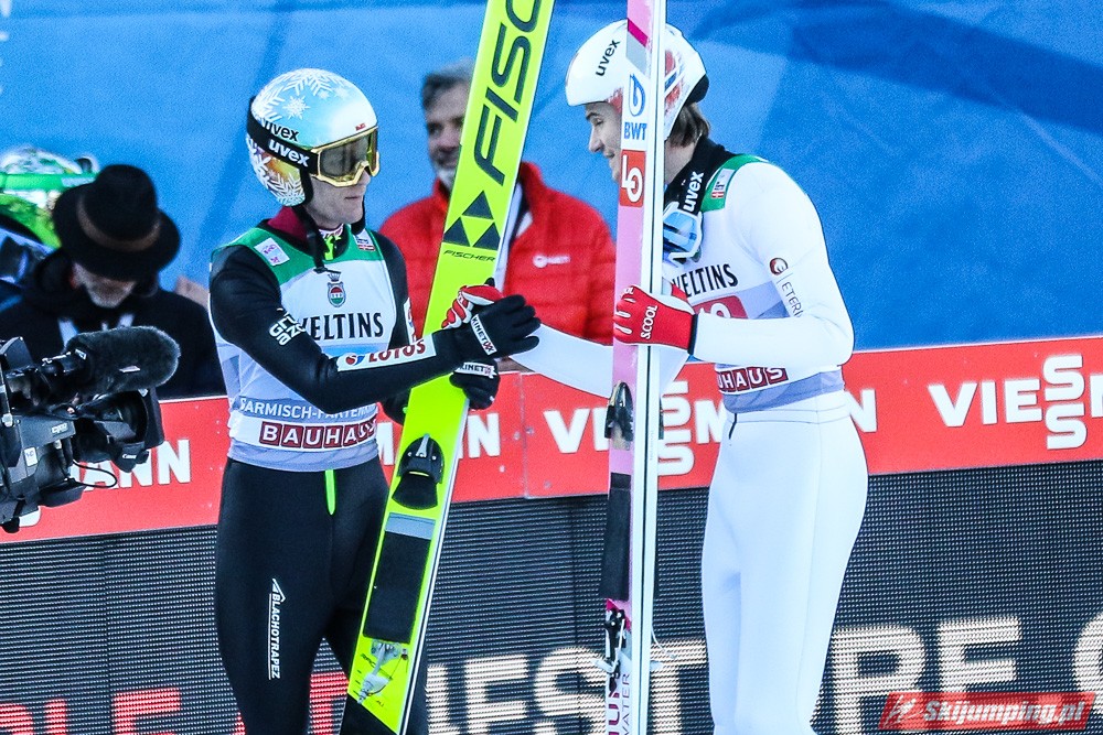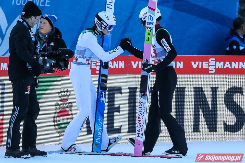 Finałowe momenty drugiej serii były rywalizacją na najwyższym poziomie. Ostatecznie po pierwsze pucharowe zwycięstwo w karierze sięgnął Marius Lindvik. Norweg wylądował na 136 metrze i o 4,8 punktu pokonał Karla Geigera (141,5 m). Podobnie jak w Oberstdorfie, na trzeciej pozycji rywalizację zakończył Dawid Kubacki (139,5 m). Szóstego zwycięstwa w zawodach Turnieju Czterech Skoczni nie zdołał odnieść Ryoyu Kobayashi. Lider cyklu, pomimo próbie na 141 metr, pozostał na czwartej pozycji, o 1,9 pkt. za Polakiem.