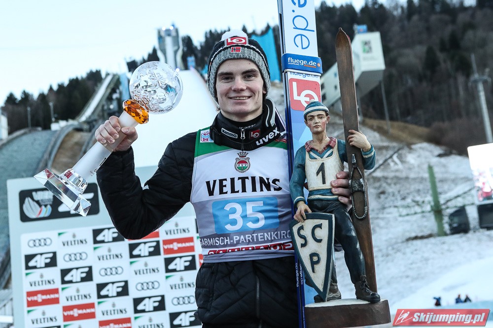 Marius Lindvik został zwycięzcą noworocznego konkursu 68. Turnieju Czterech Skoczni na Grosse Olympiaschanze (HS142) w Garmisch-Partenkirchen. Reprezentant Norwegii odniósł pierwsze w karierze zwycięstwo w zawodach Pucharu Świata dzięki skokom na odległość 143,5 metra (wyrównany rekord skoczni) i 136 metrów. Drugie miejsce zajął Niemiec Karl Geiger, a trzecie - Dawid Kubacki. Do finału awansowało trzech Polaków.