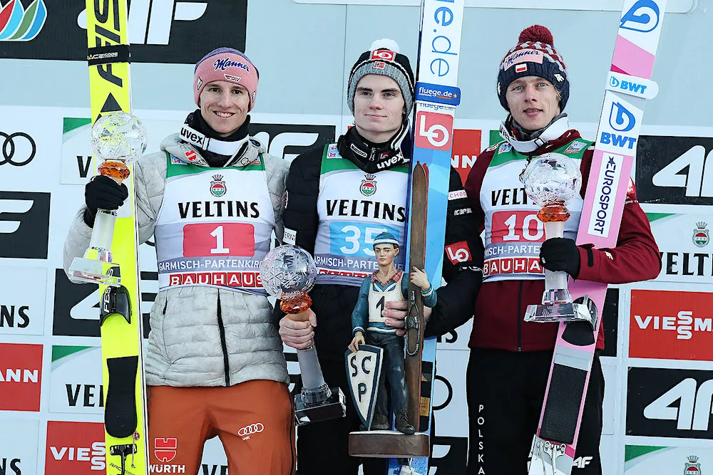 Tuż za czołową trójką plasuje się Marius Lindvik. Mistrz świata juniorów sprzed dwóch lat odniósł w Garmisch-Partenkirchen swoje pierwsze zwycięstwo w zawodahc Pucharu Świata. Norweg traci na półmetku zmagań 18,9 punktu do prowadzącego Ryoyu Kobayashiego, zaś 10,4 pkt. do trzeciego Dawida Kubackiego.