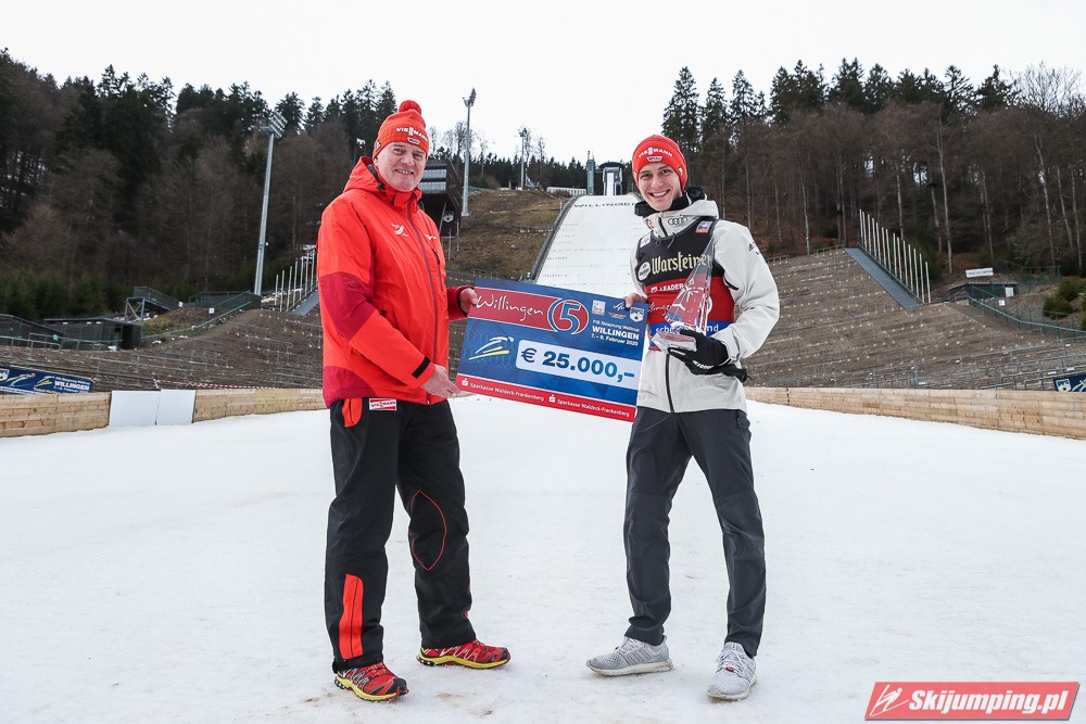 Trzy skoki warte 25 tysięcy euro, a do tego premie związane z wygraniem kwalifikacji oraz pierwszych w karierze zawodów rangi Pucharu Świata. Stephan Leyhe w sobotę przeżył wymarzony dzień na domowym obiekcie w Willingen, gdzie w towarzystwie tysięcy niemieckich kibiców świętował jeden ze swoich największych sukcesów na arenie międzynarodowej. W niedzielę raz jeszcze pojawił się pod Mühlenkopfschanze, aby odebrać trofeum za triumf w tegorocznej edycji Willingen Five.