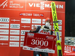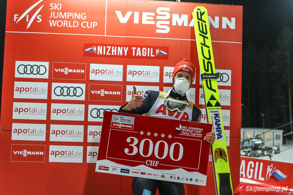 Piątkowe kwalifikacje w Niżnym Tagile padły łupem Markusa Eisenbichlera. Lider Pucharu Świata wylądował na 135 metrze i pokonał o 2,3 punktu Norwega Halvora Egnera Graneruda (131,5 m). Trzecie miejsce zajął Austriak Daniel Huber (130 m). Czwarty był Yukiya Sato (127,5 m), piąty Marius Lindvik (128 m), szósty Robert Johansson (130 m), a siódmy Timi Zajc (128,5 m).