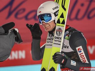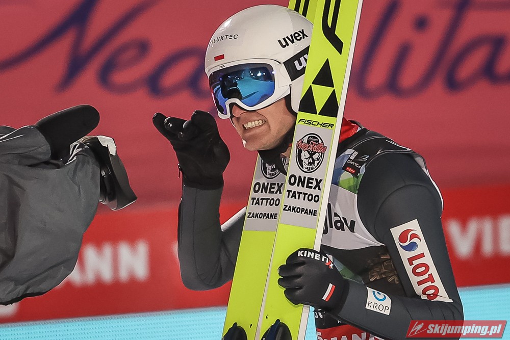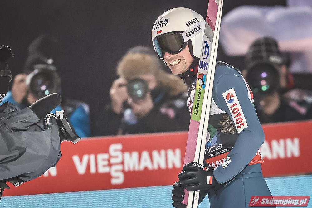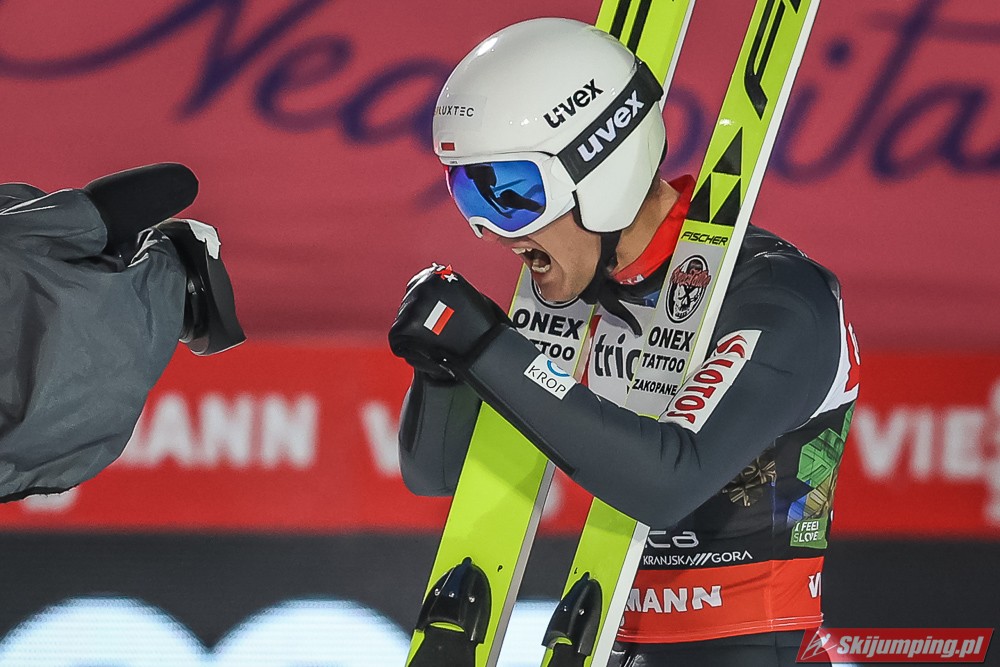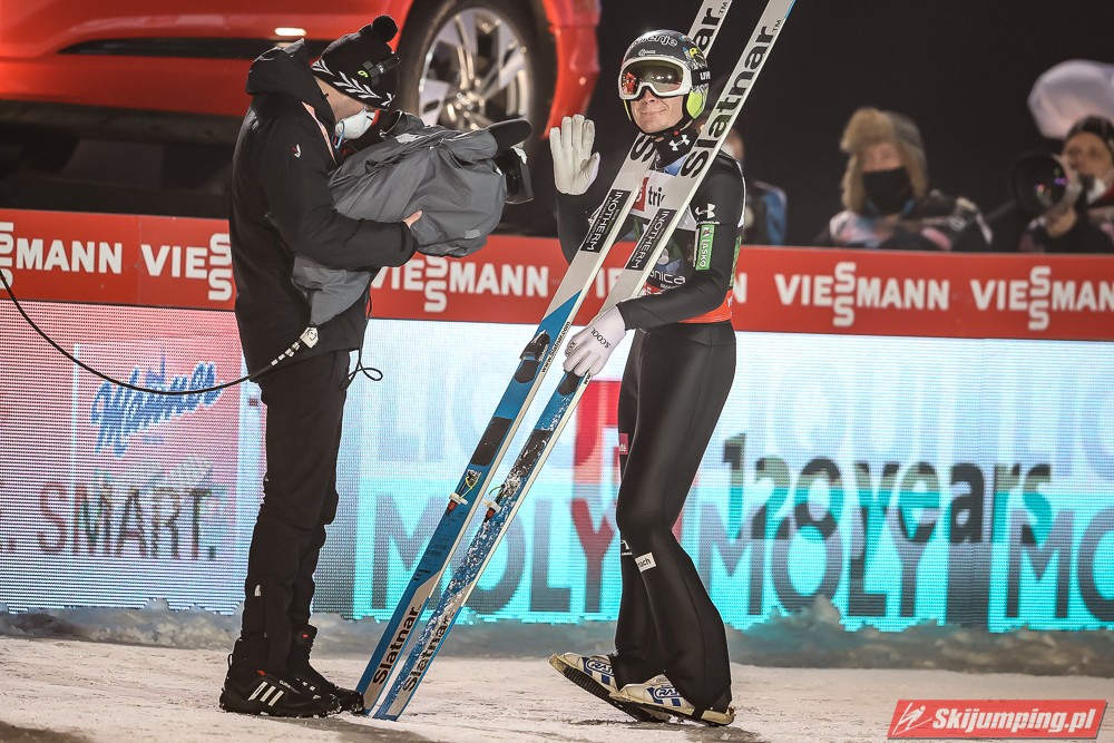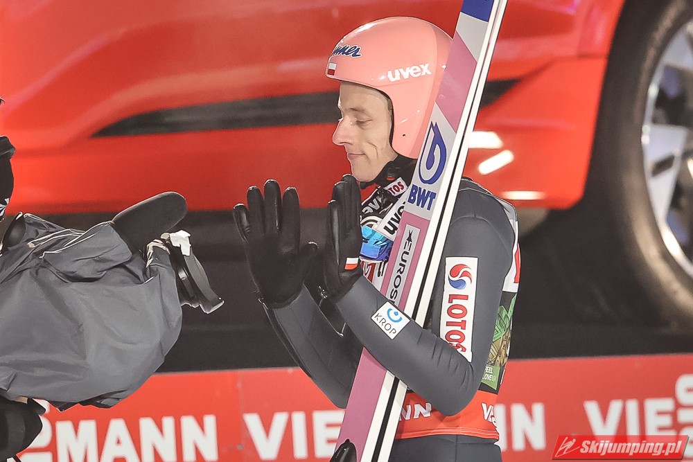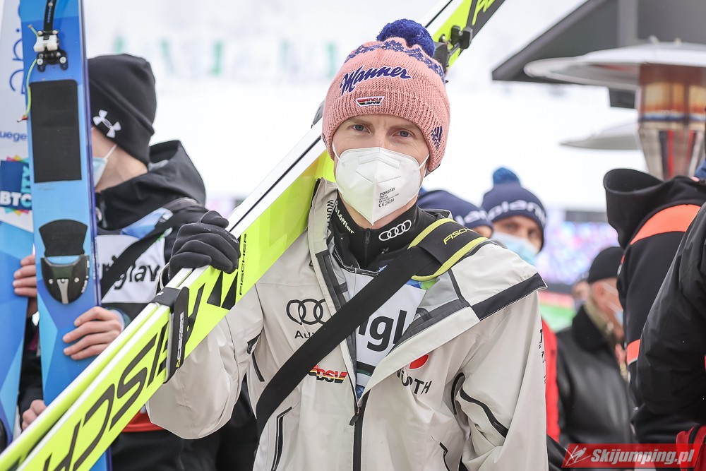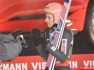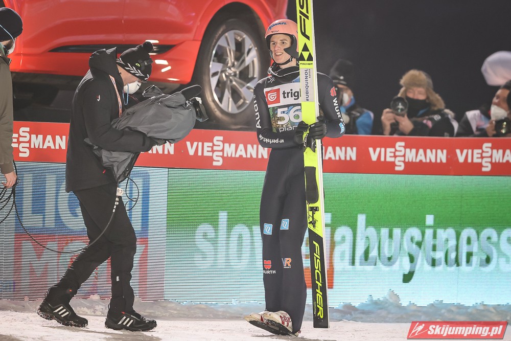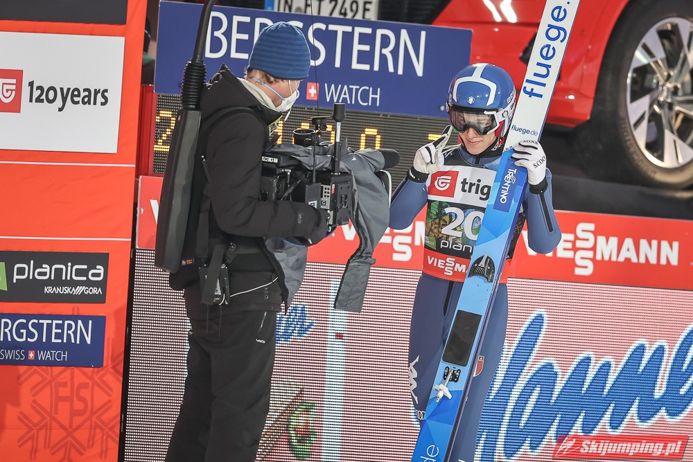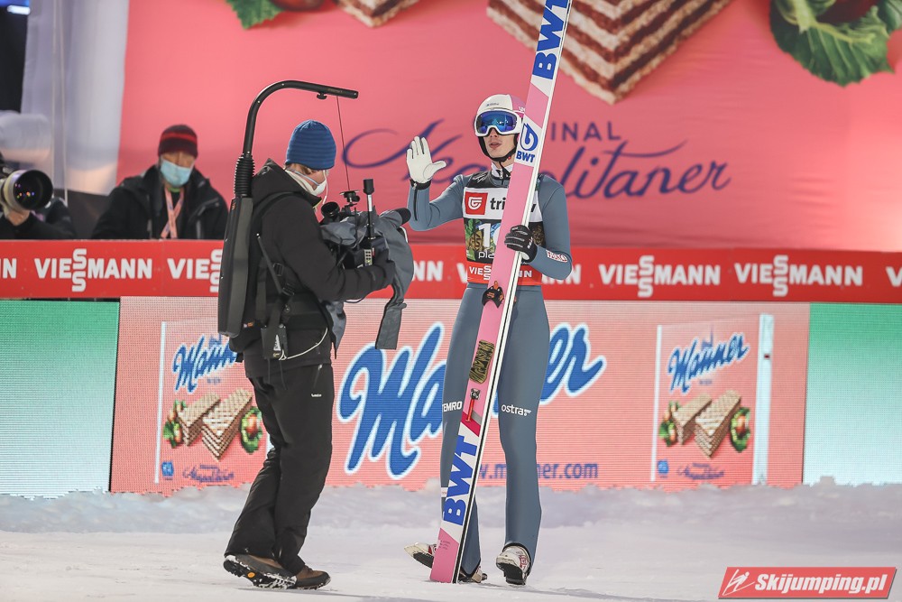 Wielki pech Krafta, który co chwila pozabawia ważnego organu - przez Covida miał stracić płuca; teraz plecy. Aż strach pomyśleć na co przyjdzie pora następnym razem. Jego pech otworzył szeroko drzwi Kahoferowi na zrobienie wyniku niebywałego - może jutro spokojnie powalczyć o możliwość oddania 4 skoków indywidualnie, a do tego też znaleźć się w krajowej czwórce na drużynówkę. Dla przypomnienia- przed startem igelitowego sezonu rok temu miał na swoim koncie zaledwie 12 występów międzynarodowych: głównie w kraju, na Alpenie, gdzie zapunktował tylko 4 razy. Czapki z głów, bo nawet pomijając wiadome okoliczności to jest to progres kosmiczny.