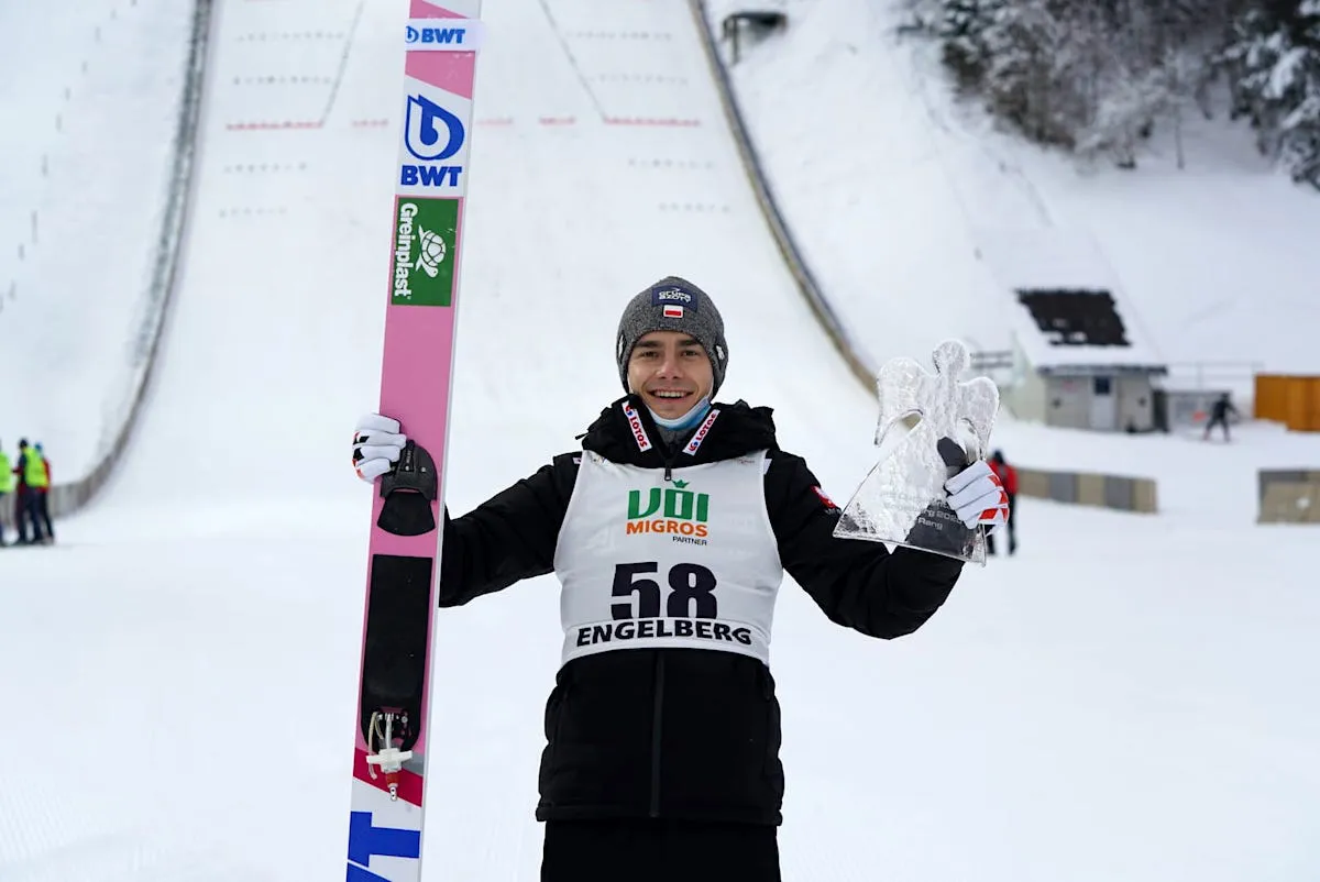 Jakub Wolny został zwycięzcą niedzielnego konkursu Pucharu Kontynentalnego w szwajcarskim Engelbergu (HS140)! Reprezentant Polski triumfował dzięki skokom na odległość 127 m oraz 133,5 m. Drugi był Słoweniec Tilen Bartol, a trzeci Austriak Gregor Schlierenzauer. Punktowało pięciu Biało-Czerwonych.