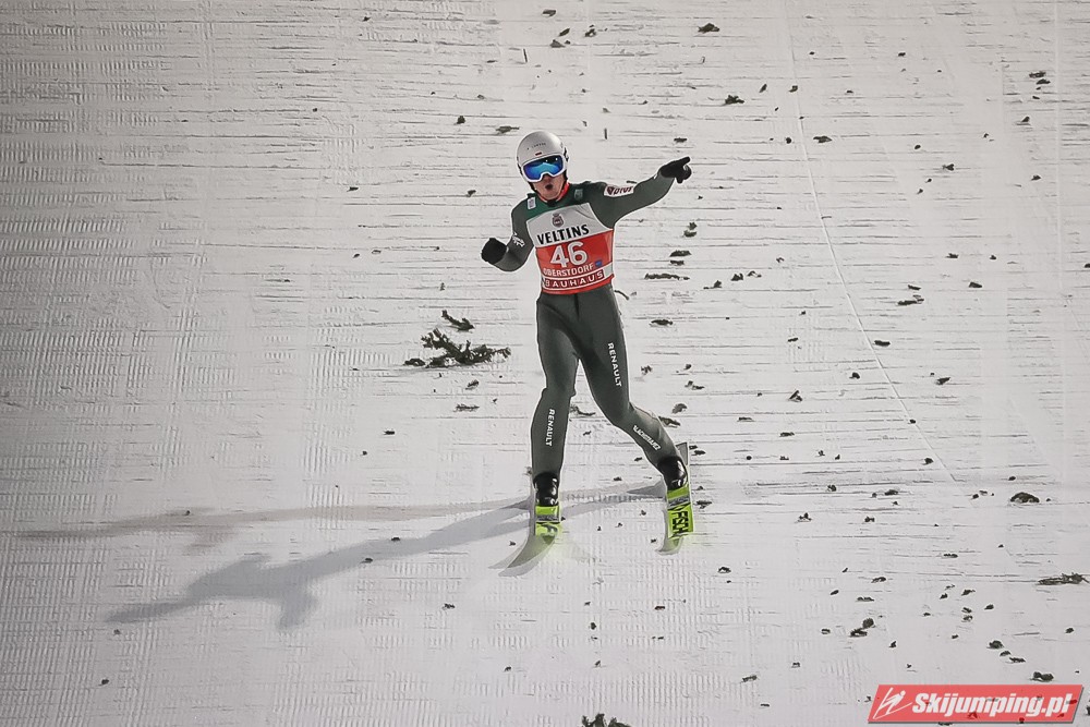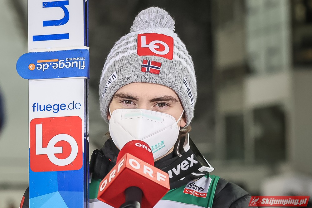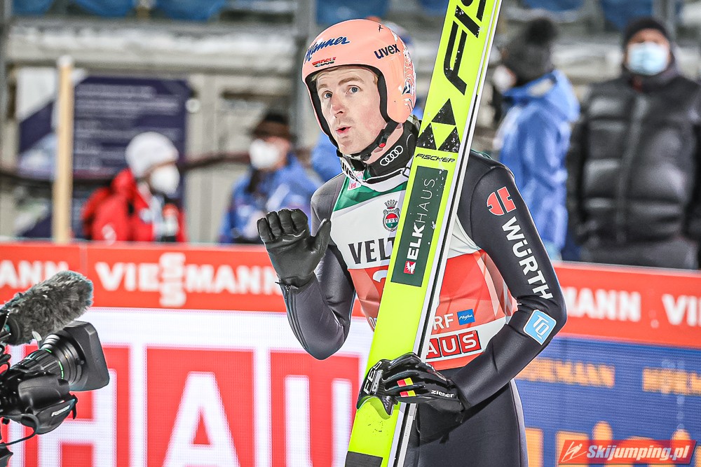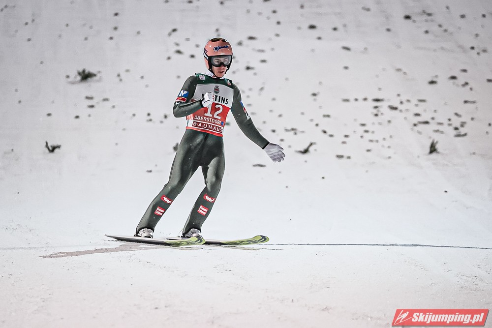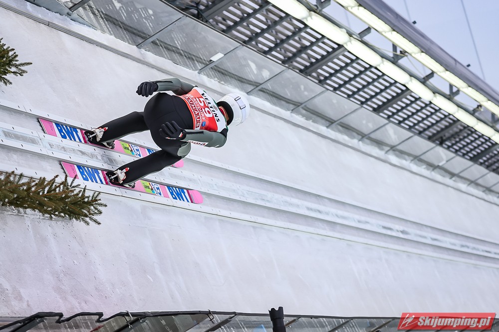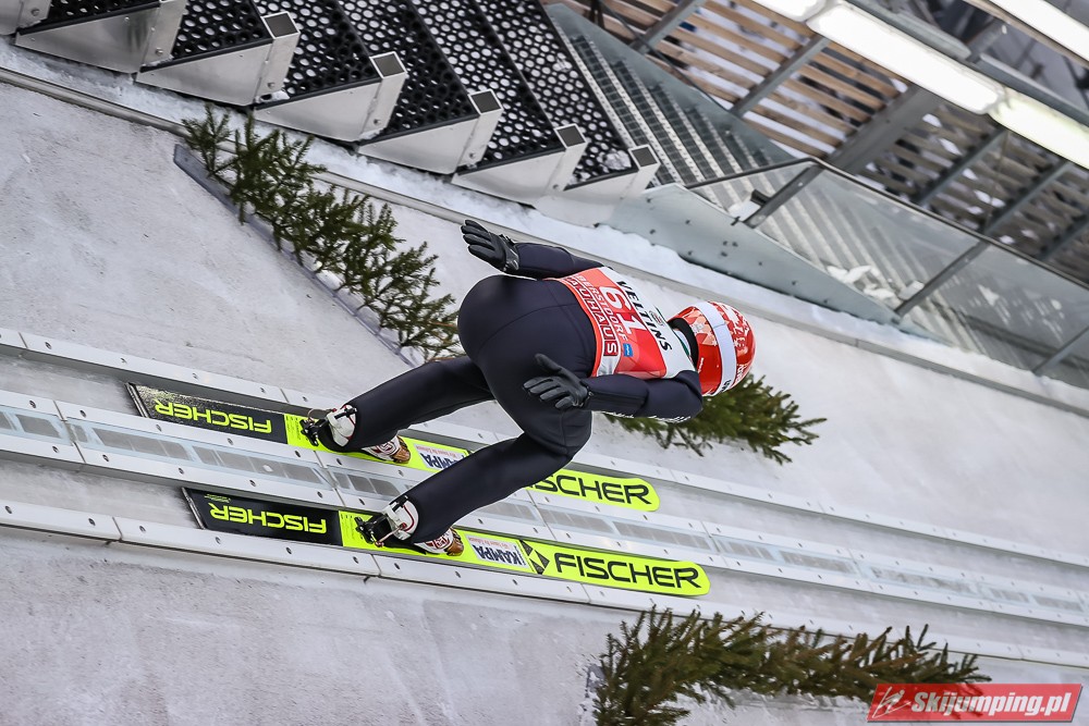 Czwartą pozycję na półmetku rywalizacji zajmował Kamil Stoch. Dwukrotny triumfator Turnieju Czterech Skoczni wylądował na 125 metrze i traci 3,8 pkt. do lidera. Piąty był Stefan Kraft (126,5 m), szósty Ziga Jelar (128 m), siódmy Jan Hoerl (129 m), ósmy Keiichi Sato (125 m), dziewiąty Halvor Egner Granerud (122 m), a dziesiąty - Domen Prevc (129 m).