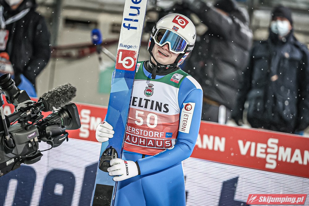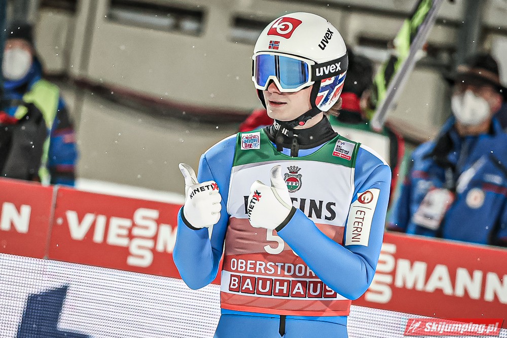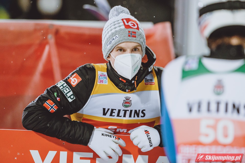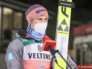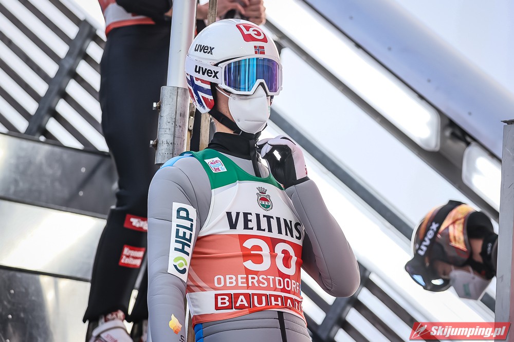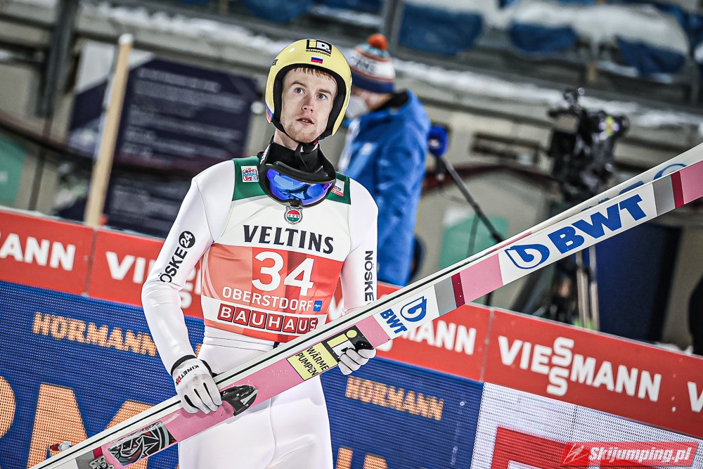 Czwartą pozycję na półmetku rywalizacji zajmował Kamil Stoch. Dwukrotny triumfator Turnieju Czterech Skoczni wylądował na 125 metrze i traci 3,8 pkt. do lidera. Piąty był Stefan Kraft (126,5 m), szósty Ziga Jelar (128 m), siódmy Jan Hoerl (129 m), ósmy Keiichi Sato (125 m), dziewiąty Halvor Egner Granerud (122 m), a dziesiąty - Domen Prevc (129 m).