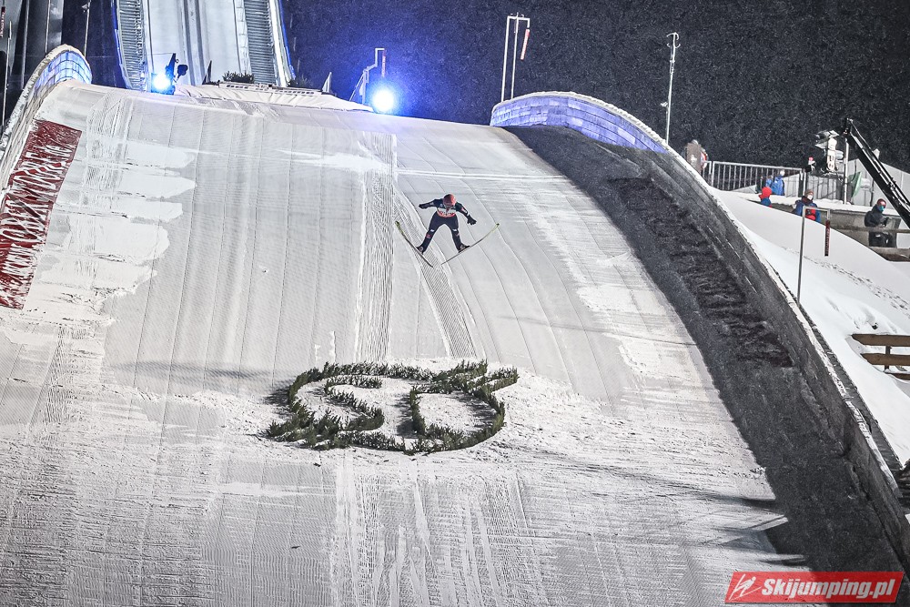 Na piętnastej pozycji konkurs zakończył Dawid Kubacki (126,5 m), który dziś świętuje narodziny córki. Dwudziesty pierwszy był Piotr Żyła (129 m), a trzydziesty Klemens Murańka (120,5 m).