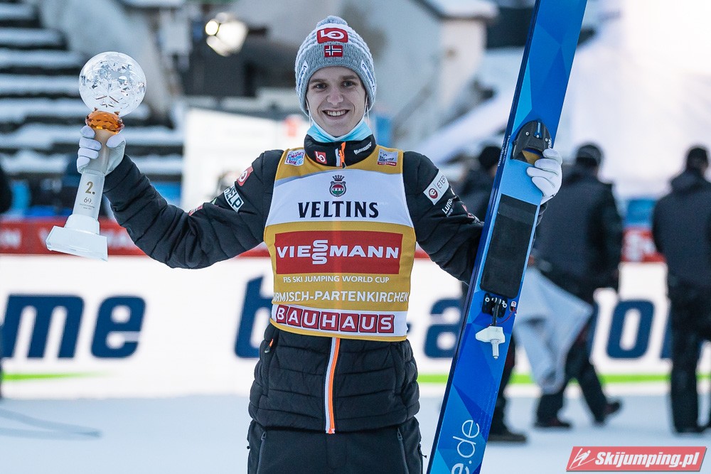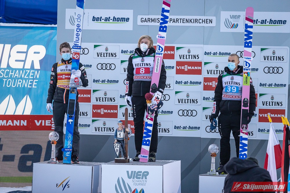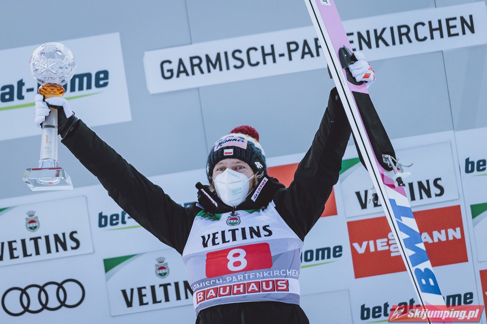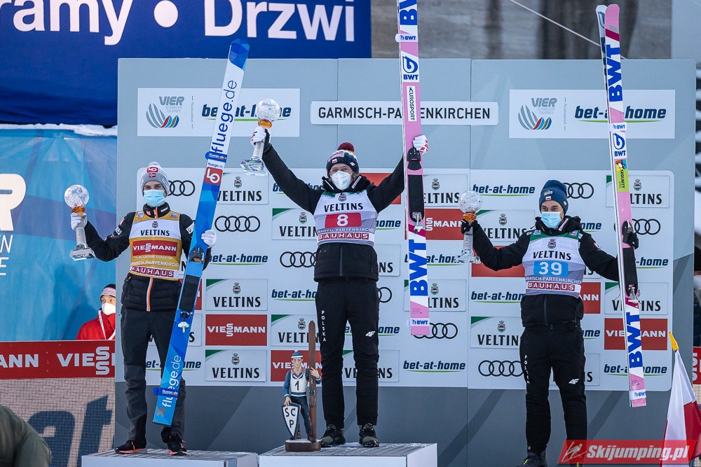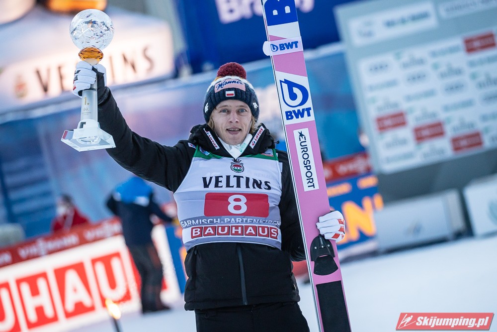 Fantastyczne rozpoczęcie Nowego Roku w wykonaniu Biało-Czerwonych! Dawid Kubacki zwyciężył w zawodach 69. Turnieju Czterech Skoczni w Garmisch-Partenkirchen (HS142), ustanawiając w finale nowy rekord Grosse Olympiaschanze - 144 metry! Drugi był Norweg Halvor Egner Granerud, który objął prowadzenie w TCS. Trzecie miejsce zajął Piotr Żyła, czwarty był Kamil Stoch, dziesiąty Andrzej Stękała, a dwudziesty drugi Klemens Murańka.