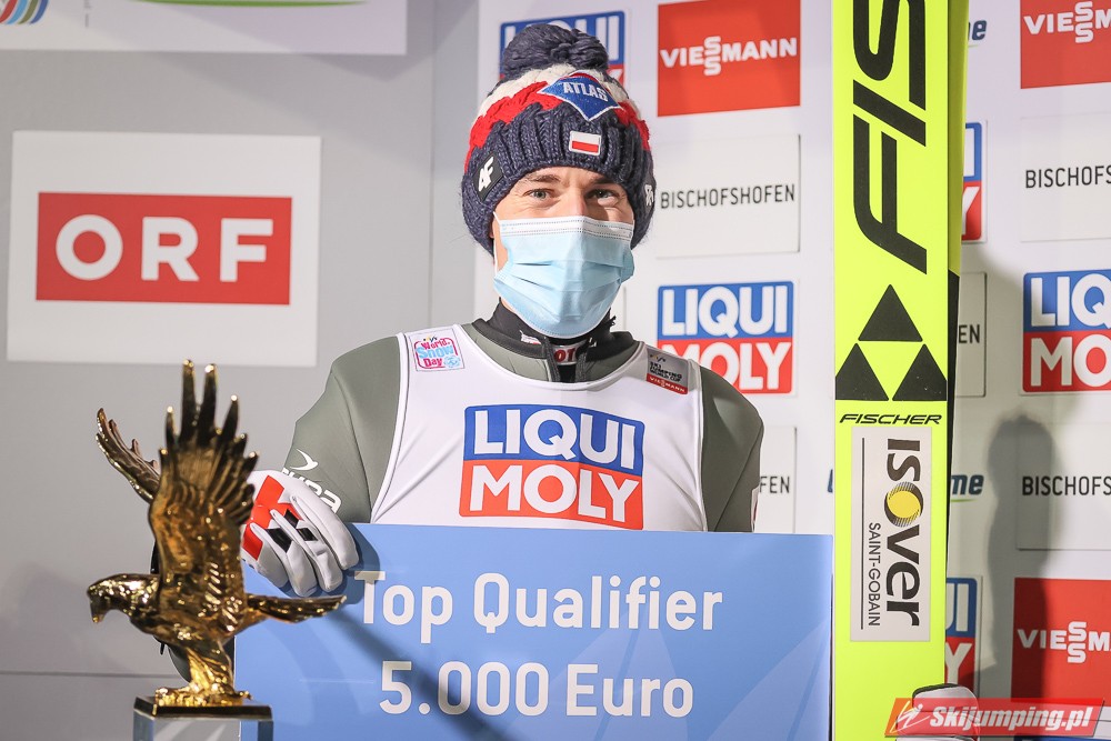 Wtorkowe kwalifikacje w Bischofshofen zakończyły się zwycięstwem Kamila Stocha. Lider 69. Turnieju Czterech Skoczni poszybował na 138 metr i wyprzedził Norwegów - Roebrta Johanssona (137 m) oraz Halvora Egnera Graneruda (140,5 m). Czwarty był Stefan Kraft (136 m), a piąty Daniel Huber (137,5 m).