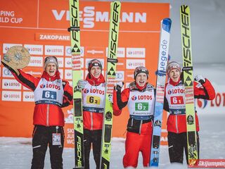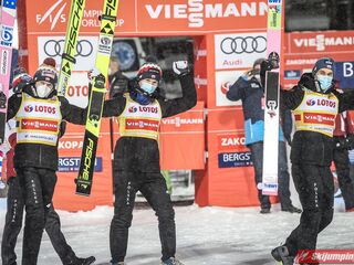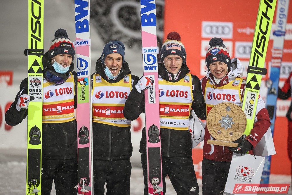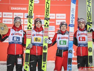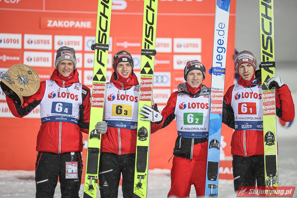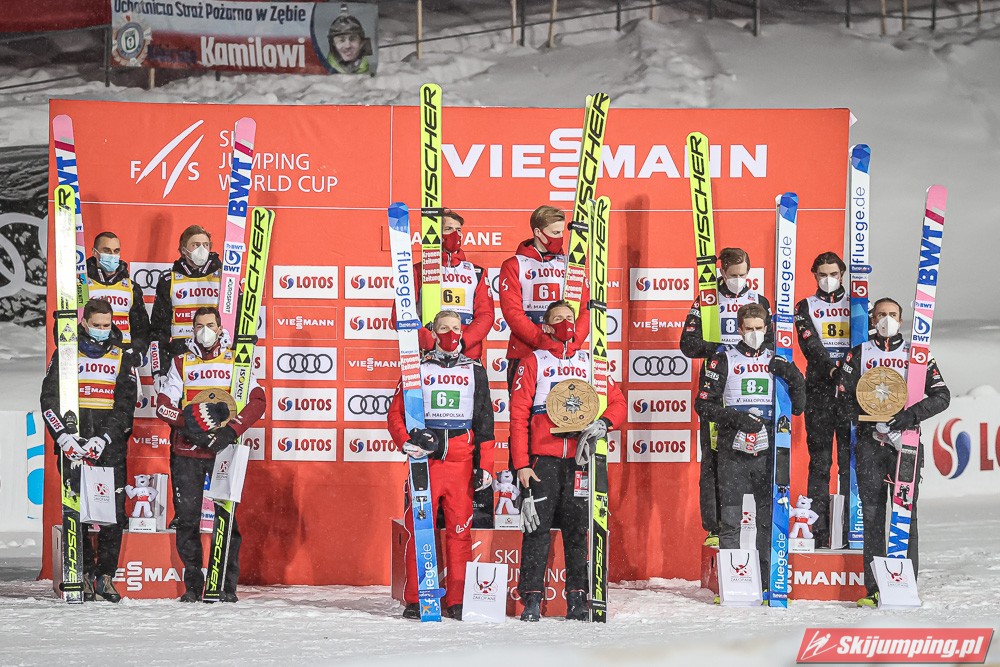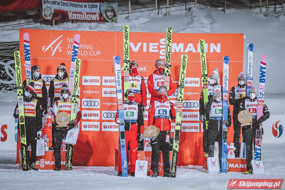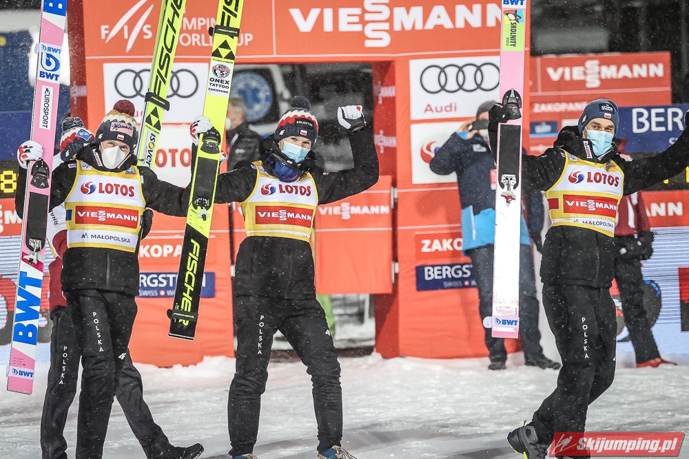 Dzisiejsza druga lokata w Zakopanem to 29. polskie podium w zawodach drużynowych Pucharu Świata, zaś szóste "pudło" wywalczone na Wielkiej Krokwi. Biało-Czerwoni mają obecnie w swoim dorobku 7 zwycięstw, 11 drugich oraz 11 trzecich miejsc.