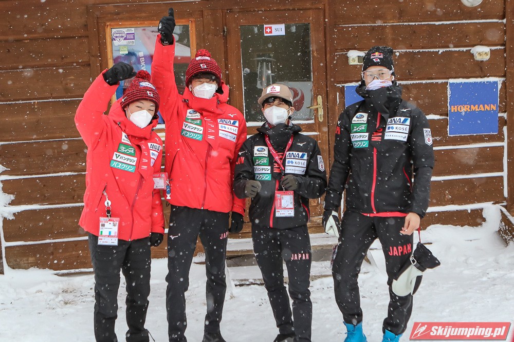 Na trzeciej pozycji po pierwszej serii plasowali się Norwegowie. Daniel Andre Tande (129,5 m), Halvor Egner Granerud (116,5 m), Marius Lindvik (137 m) i Robert Johansson (121,5 m) mieli 3,6 punktu przewagi nad czwartą Japonią.