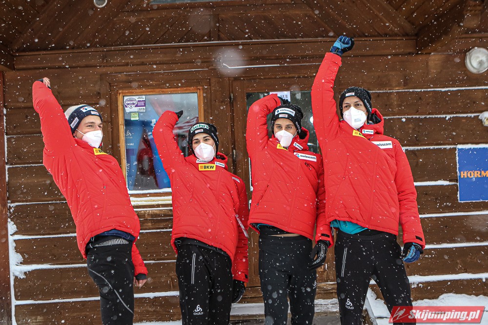Drużyna trenera Michala Dolezala wyprzedzała na półmetku o 21,8 punktu drugich Austriaków, skaczących w składzie: Michael Hayboeck (140,5 m), Jan Hoerl (121,5 m), Philipp Aschenwald (124 m) oraz Daniel Huber (135 m).