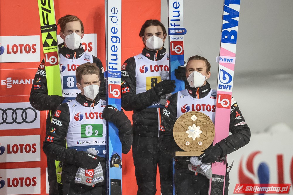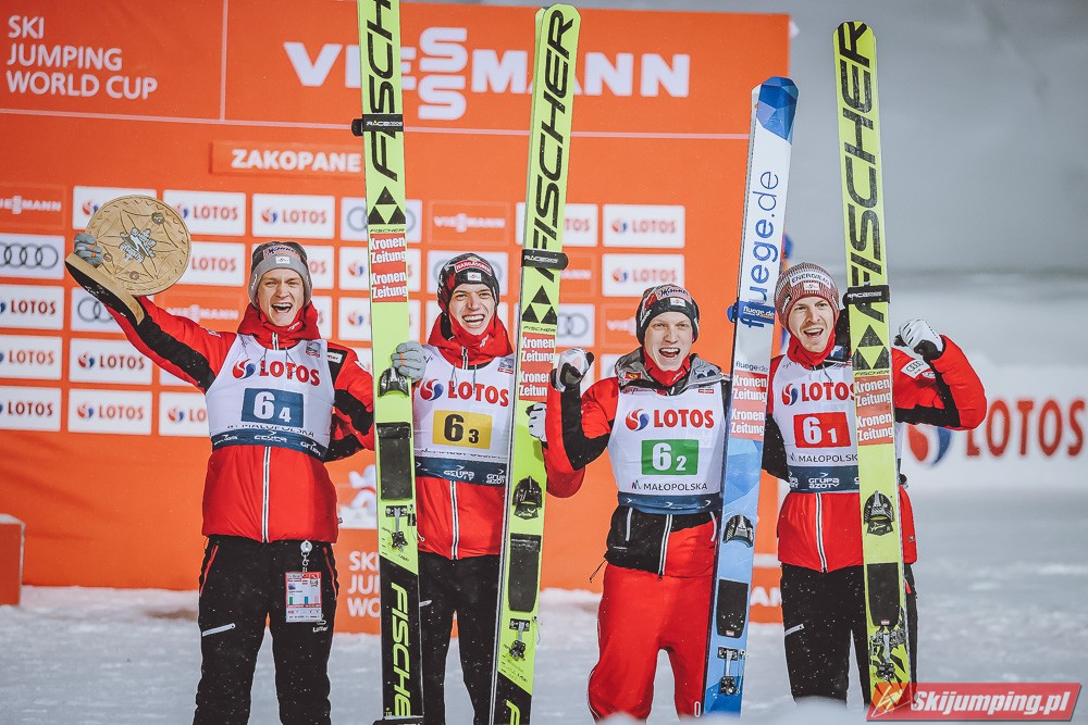 Reprezentacja Austrii triumfowała w sobotnim konkursie drużynowym Pucharu Świata na Wielkiej Krokwi (HS140) w Zakopanem. Zespół Andreasa Widhoelzla okazał się lepszy od zespołów Polski oraz Norwegii.
