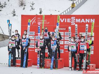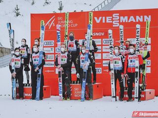 Ostatecznie Norwegowie triumfowali w mikście z przewagą 23,4 punktu nad drugą Słowenią. Podium uzupełniła Austria, która wyprzedziła o 3,8 punktu Japonię. Piąte były Niemcy, a szósta Rosja.