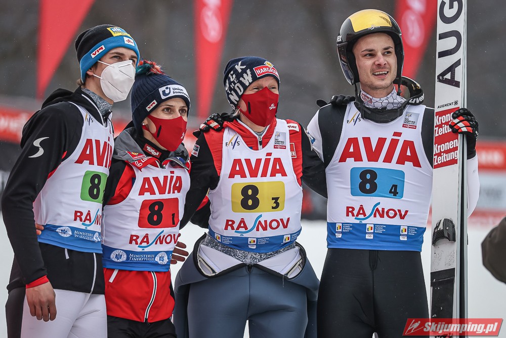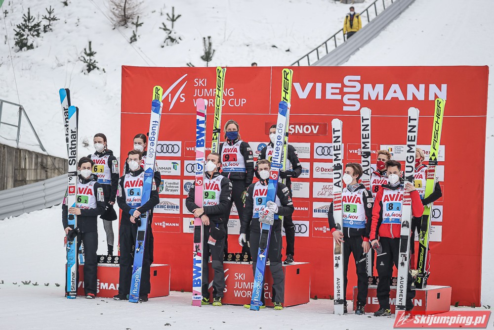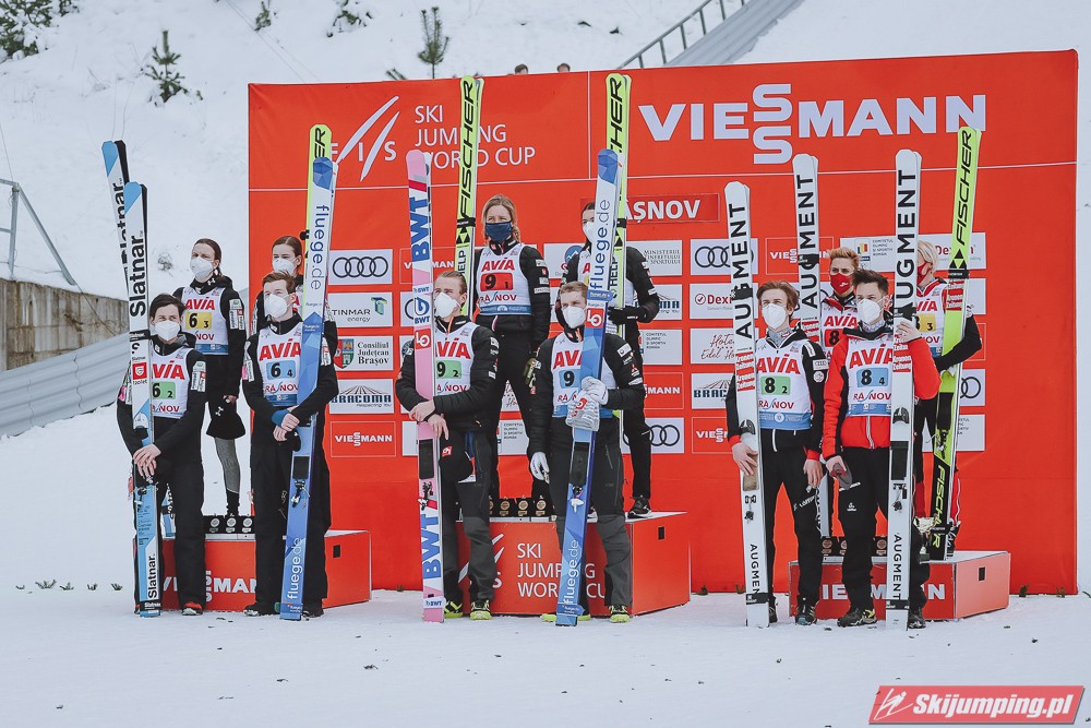 Reprezentacja Norwegii wygrała sobotni konkurs drużyn mieszanych Pucharu Świata na Trambulina Valea Carbunarii (HS97) w Rasnovie. Drugie miejsce wywalczyła Słowenia, a trzecie miejsce zajęła Austria. Polska sklasyfikowana została na siódmej pozycji.