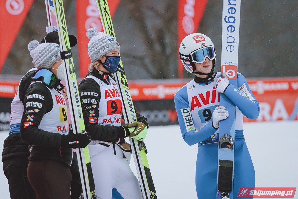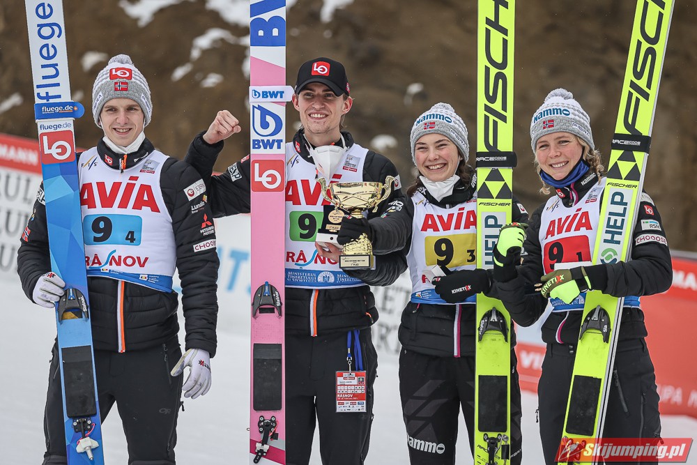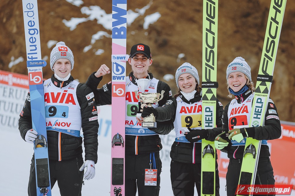 W finale Norwegowie stoczyli wyrównany bój z reprezentacją Słowenii. Po skokach Maren Lundby (91,5 m), Daniela Andre Tande (95,5 m) oraz Silje Opseth (90 m) byli sklasyfikowani nawet ex aequo ze swoimi rywalami. Sprawę zwycięstwa rozstrzygnął Halvor Egner Granerud, który uzyskał odległość 96,5 metra.