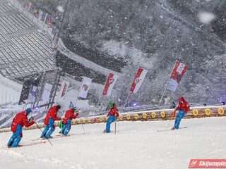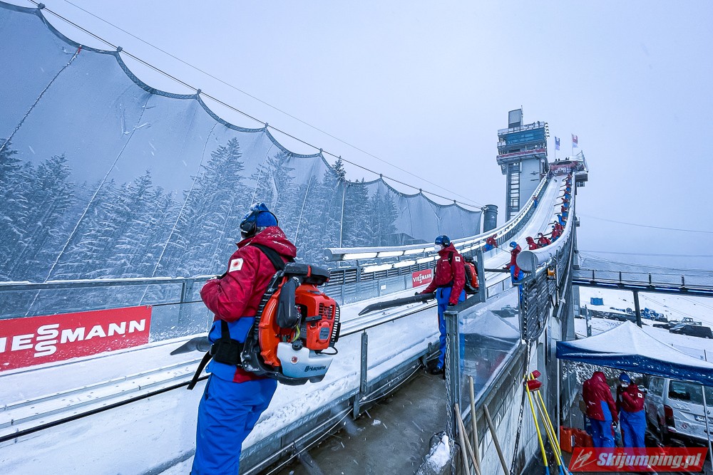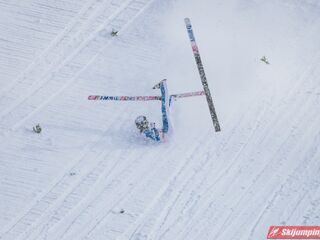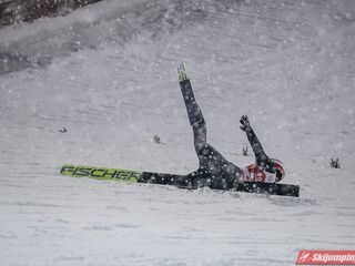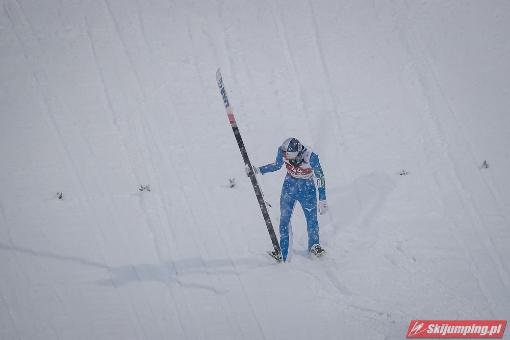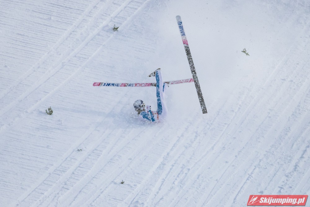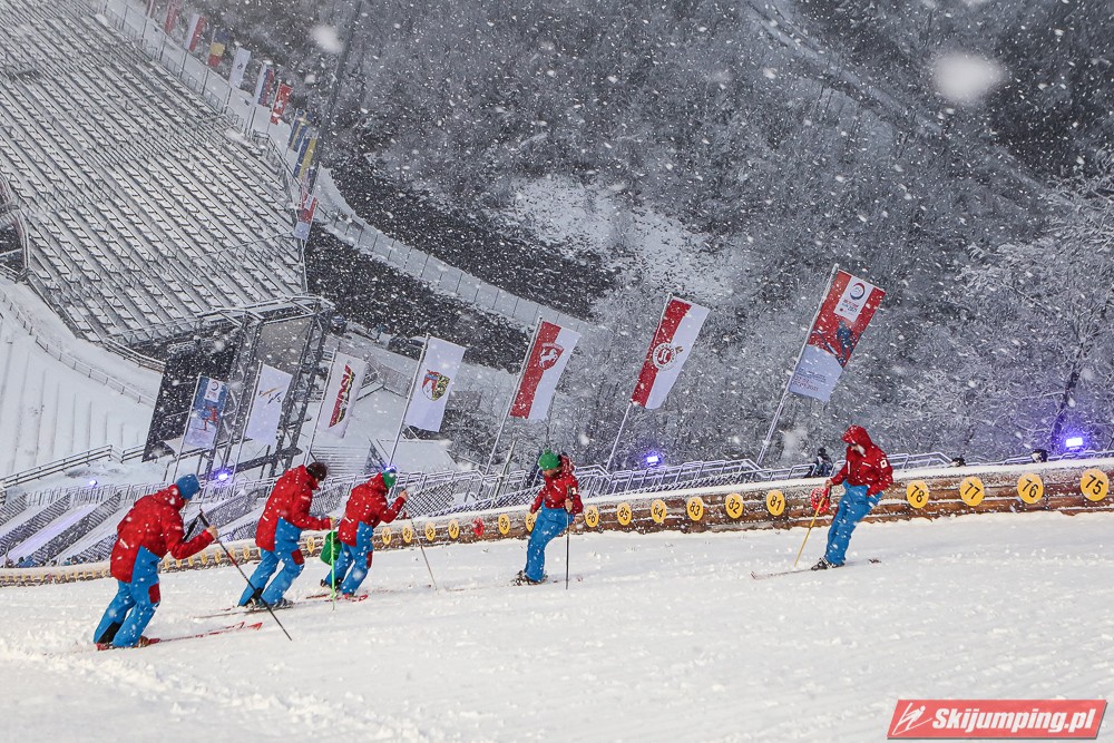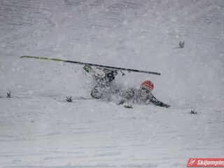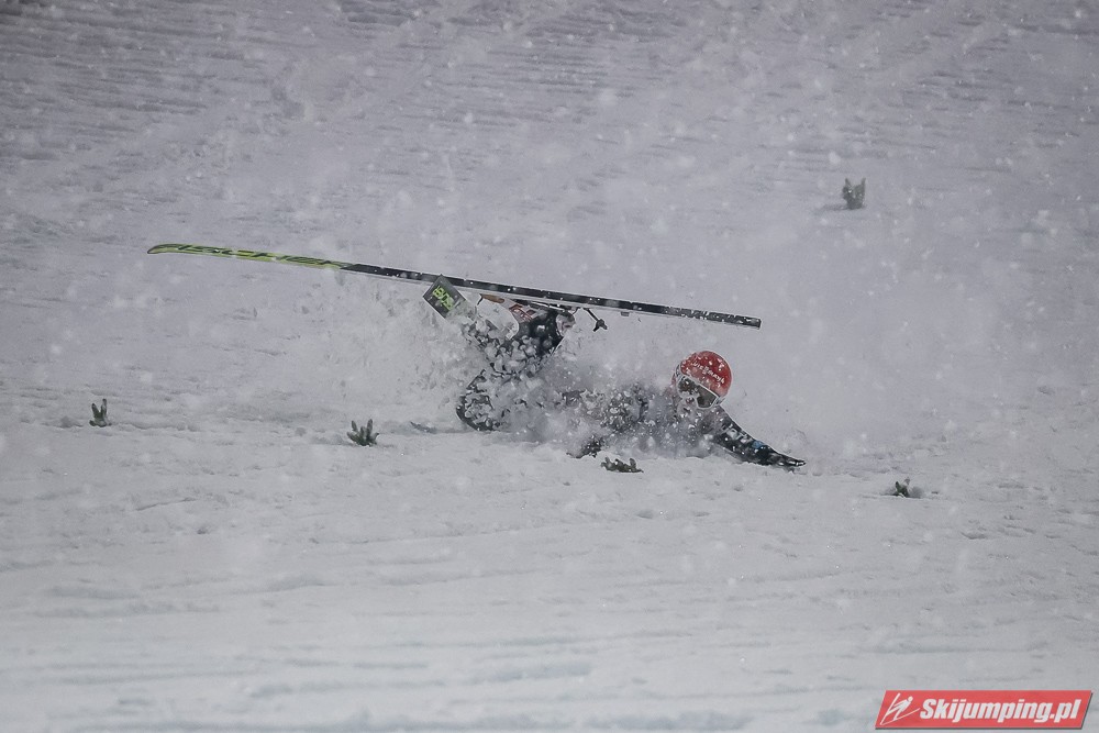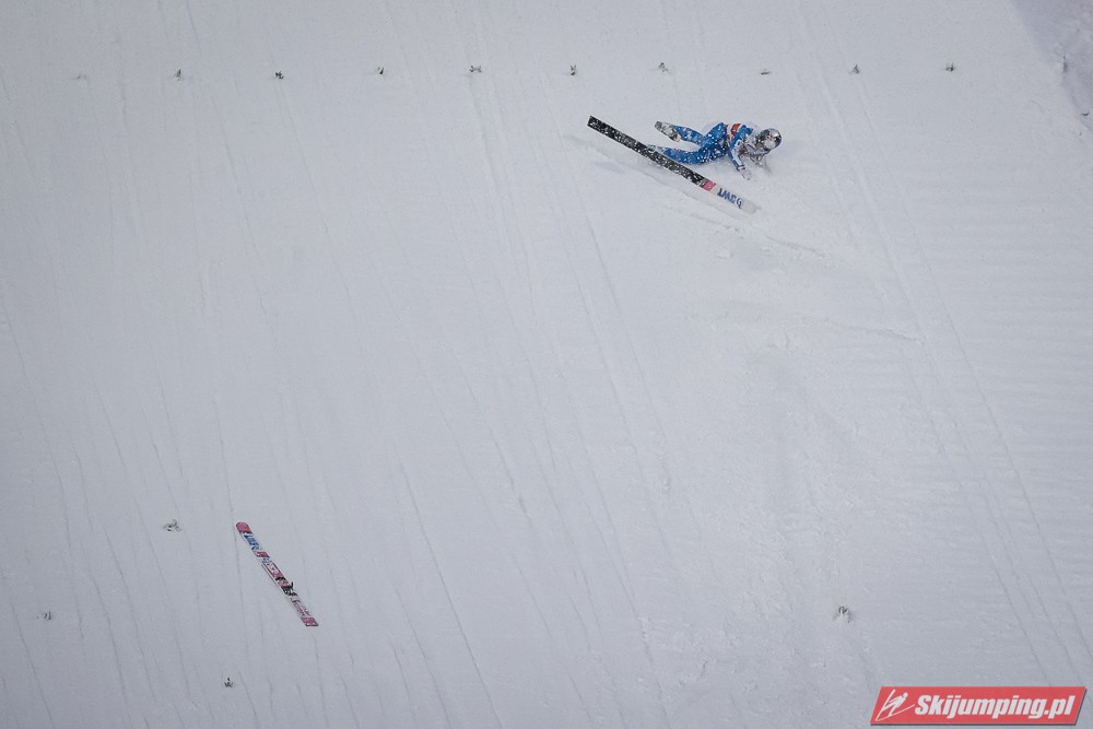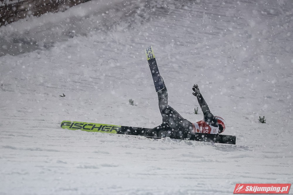 Piątkowe zawody rozgrywane były w zmiennych warunkach wietrznych oraz w nieustannej śnieżycy. Upadki na zeskoku pokrytym świeżym, miękkim "białym puchem" zaliczyli Japończyk Ryoyu Kobayashi (I seria) oraz Niemiec Markus Eisenbichler (II seria).