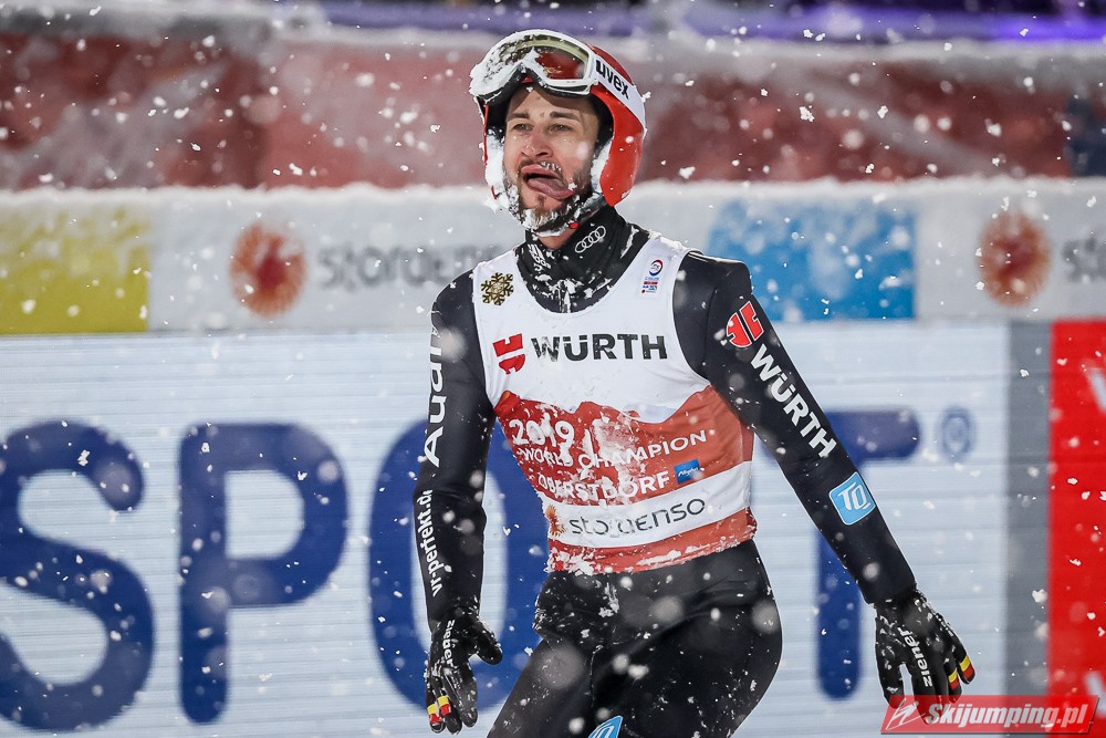 Stefan Kraft został indywidualnym mistrzem świata na dużej skoczni (HS137) w Oberstdorfie. Reprezentant Austrii zwyciężył w piątkowych zawodach na Schattenbergschanze dzięki skokom na odległość 132,5 m oraz 134 m. Srebrny medal zdobył Norweg Robert Johansson, a brązowy Niemiec Karl Geiger. Tuż za podium rywalizację zakończył Piotr Żyła. Polacy w komplecie zameldowali się w serii finałowej.