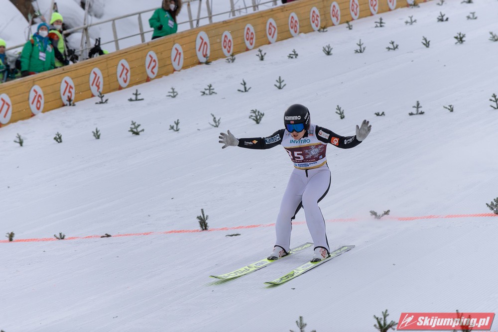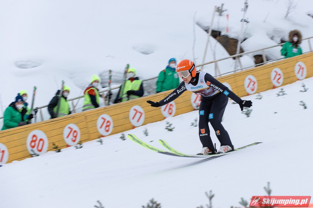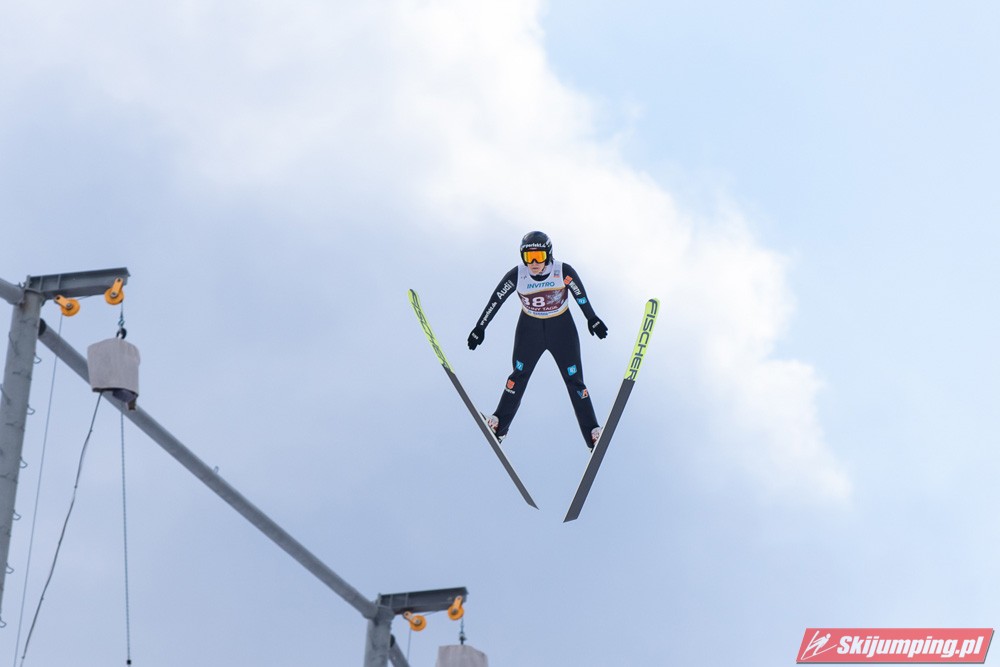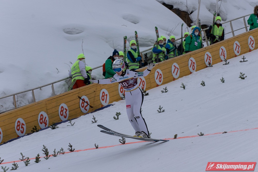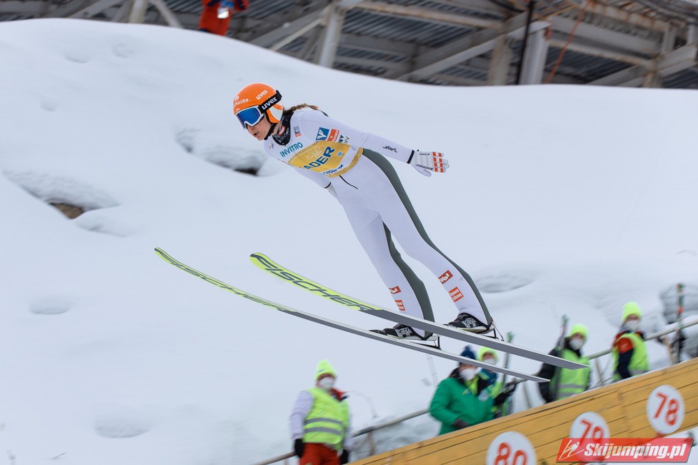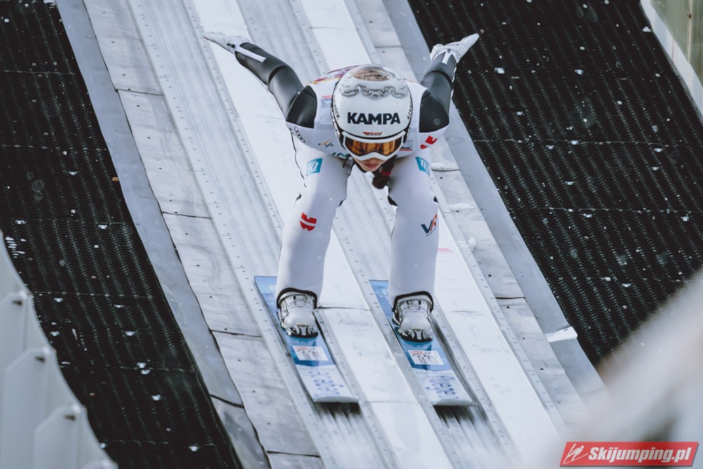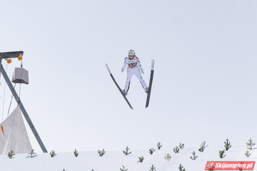 No i Kramer po raz kolejny potwierdza swoją klasę - zakładając nawet, że w Rasnovie byłaby dwukrotnie na 4. miejscu, i tak prowadziłaby o 9 punktów przed Kriznar. Nie dała dzisiaj konkurentkom absolutnie żadnych szans. No ale wciąż mało realne wydaje się wyprzedzenie i Słowenki, i Japonki, bo nadal obie z nich pozostają w wysokiej dyspozycji (dziś akurat wiatr sprawił, że to ta pierwsza pokonała tą drugą, następnym razem może być odwrotnie). Jednak, jak pisałem niżej, nawet gdyby Nika i Sara zajęły jeszcze po jednym miejscu na podium, szanse na Kulę cały czas by były. Iraschko-Stolz odbiła sobie wczorajsze niepowodzenie 4. miejscem, które zajęła już po raz czwarty w tym sezonie. Szkoda, bo wygląda na to, że Daniela, mimo bardzo solidnej formy i 6. miejsca w klasyfikacji generalnej, nie doczeka się ani jednego podium. Zaskoczyła Maruyama, która nie próżnowała po wczorajszym wyrównaniu życiówki i dzisiaj jeszcze ją przebiła, po raz pierwszy w karierze zajmując pozycję w czołowej piątce (z drugiej strony już w zeszłym sezonie pokazywała równą formę - od stycznia nie wypadała z czołowej piętnastki). Reszta dziesiątki raczej nie dziwi, jedynie Rupprecht zaskoczyła - drugi raz w sezonie do niej doskoczyła, a ten pierwszy to były jeszcze zawody w Ramsau sprzed trzech miesięcy. Hoelzl i Awwakumowa zawiodły w pierwszych próbach, ale drugie skoki miały już na dobrym poziomie. Najlepszy wynik w sezonie osiągnęła Goerlich, która po I serii niespodziewanie była nawet na 9. miejscu. Seyfarth wciąż tkwi w przeciętności, dobry wynik na dużej skoczni na MŚ nie okazał się dla niej przełamaniem (jak na kobiece skoki, to można powiedzieć, że swoje lata już ma, w końcu w czołówce była jeszcze w czasach przed powstaniem PŚ, ten sezon 18/19 to był dla niej taki renesans, ale jak się okazało, na kolejne lata pary już nie starczyło). Z sił po imprezie mistrzowskiej opadła też Klinec.