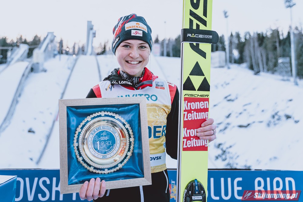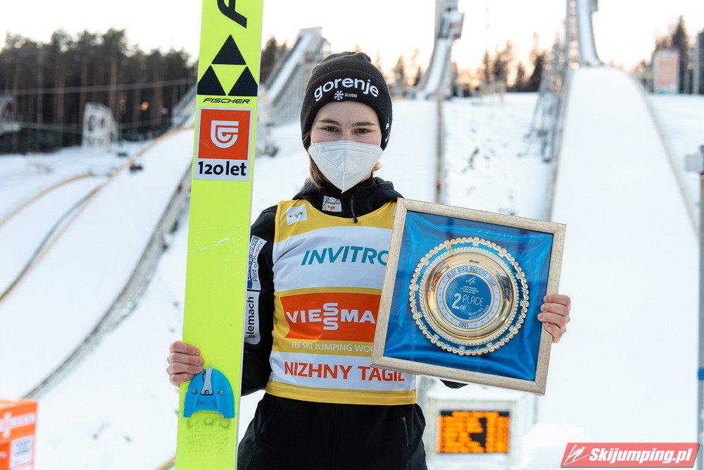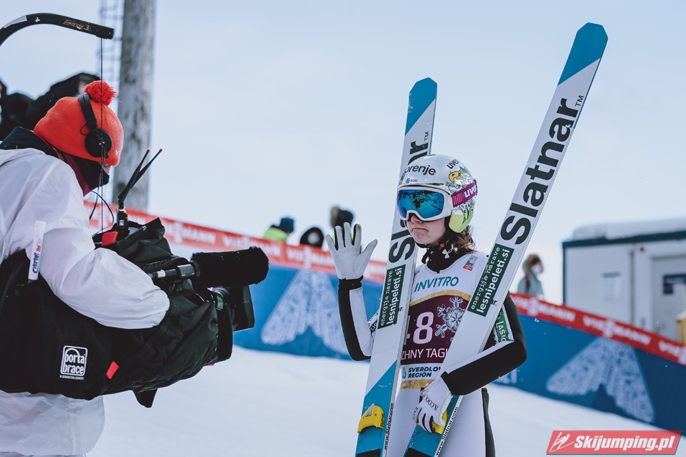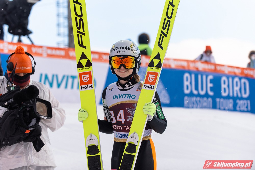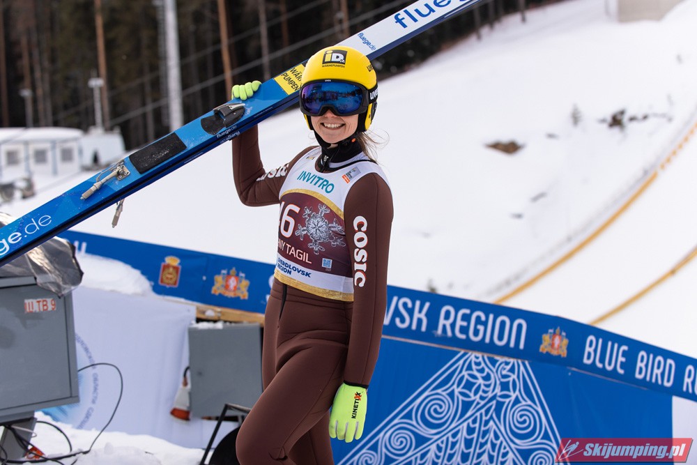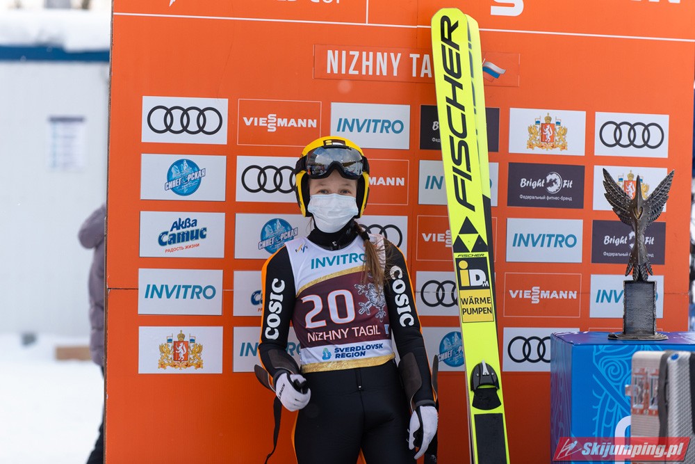 Marita Kramer wygrała niedzielny konkurs turnieju Blue Bird na skoczni Aist (HS97) w Niżnym Tagile. Reprezentantka Austrii zwyciężyła dzięki skokom na odległość 97,5 m oraz 94,5 m. Drugie miejsce zajęła Nika Kriznar, która odzyskała prowadzenie w Pucharze Świata. Trzecia była dotychczasowa liderka cyklu, Sara Takanashi.