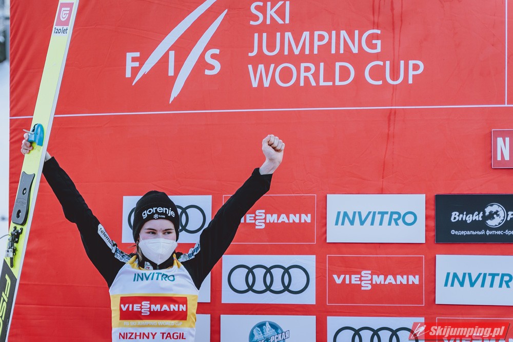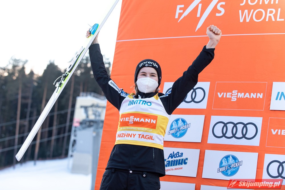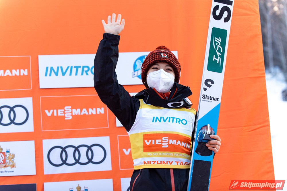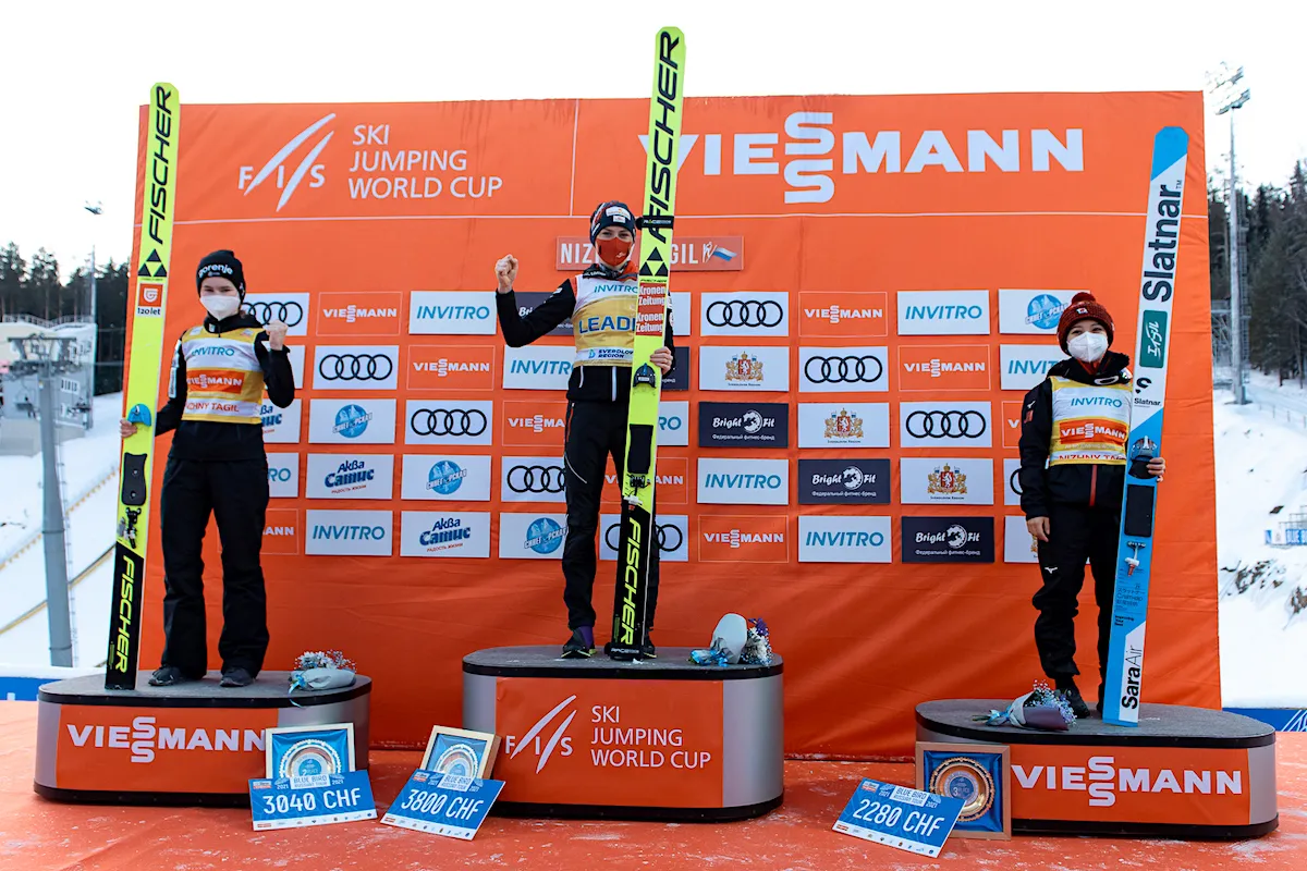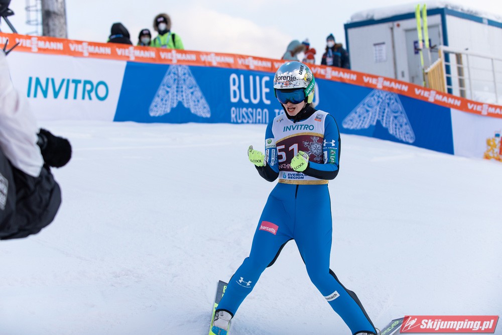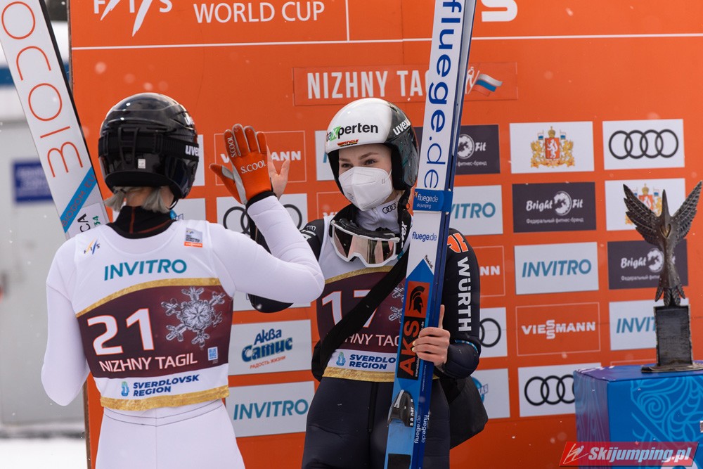 Marita Kramer wygrała niedzielny konkurs turnieju Blue Bird na skoczni Aist (HS97) w Niżnym Tagile. Reprezentantka Austrii zwyciężyła dzięki skokom na odległość 97,5 m oraz 94,5 m. Drugie miejsce zajęła Nika Kriznar, która odzyskała prowadzenie w Pucharze Świata. Trzecia była dotychczasowa liderka cyklu, Sara Takanashi.