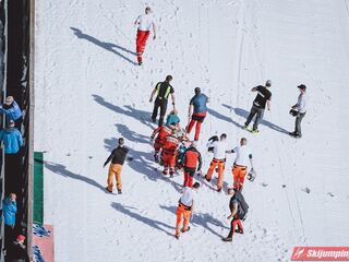 Już na pierwszej serii konkursowej udział w zawodach zakończyli trzydziesty pierwszy Dawid Kubacki (200,5 m) oraz trzydziesty drugi Kamil Stoch (200,5 m). Los polskich liderów podzielił Halvor Egner Granerud. Zdobywca Kryształowej Kuli uzyskał wynik 199,5 metra i zakończył konkurs na przedostatniej, 37. pozycji.
