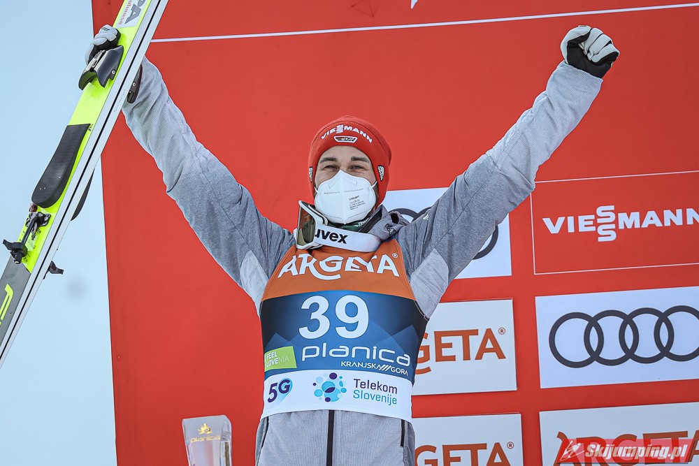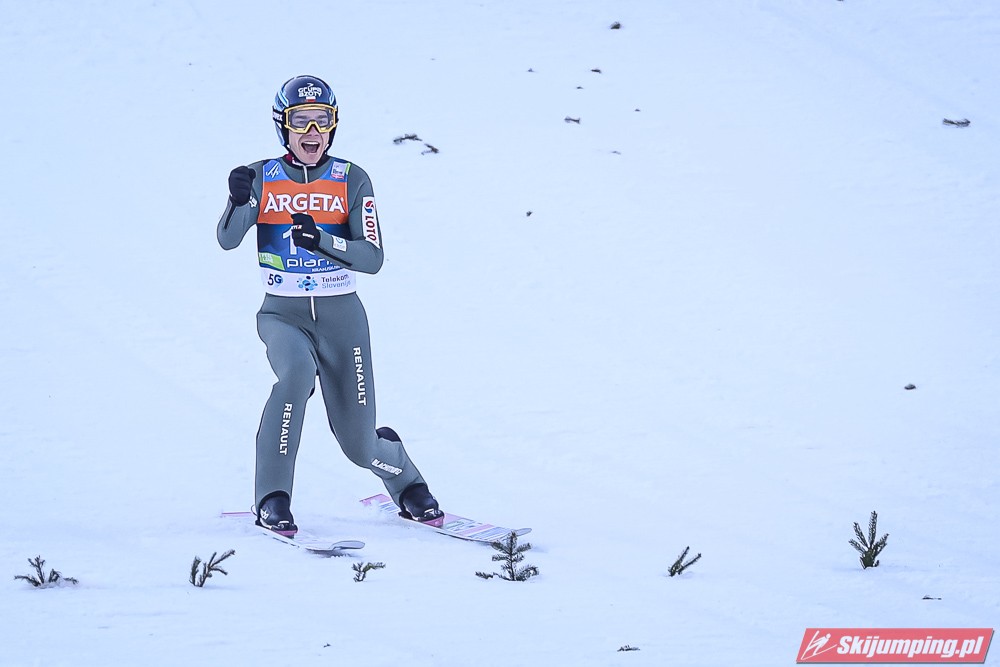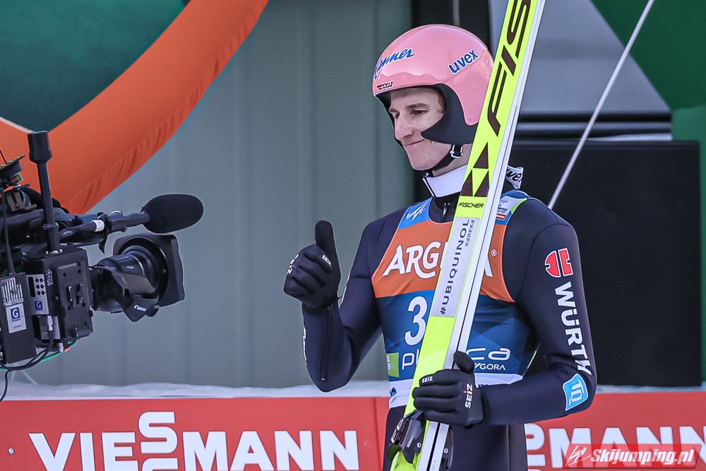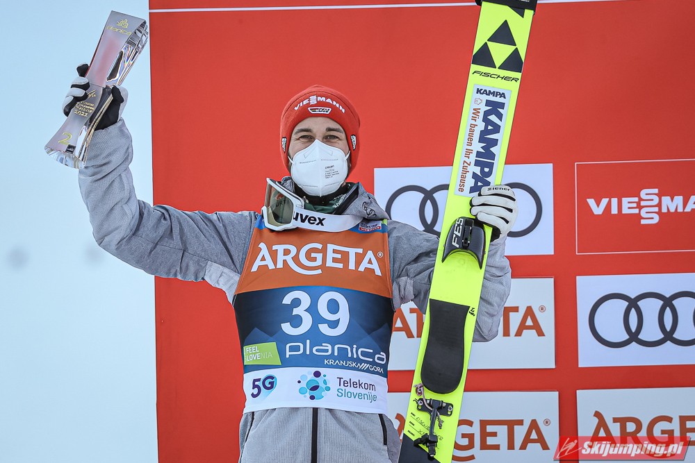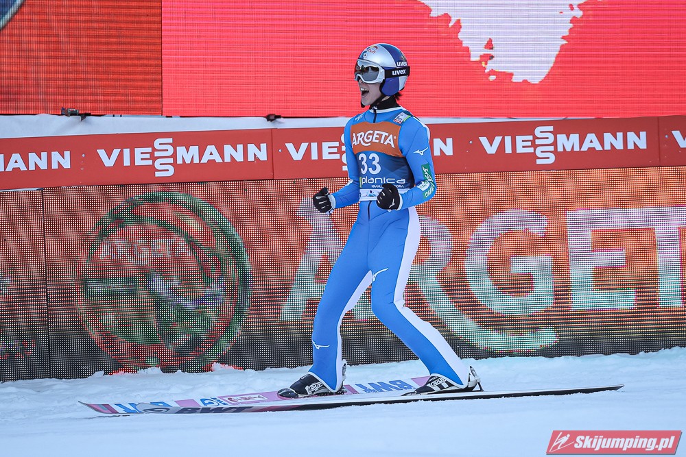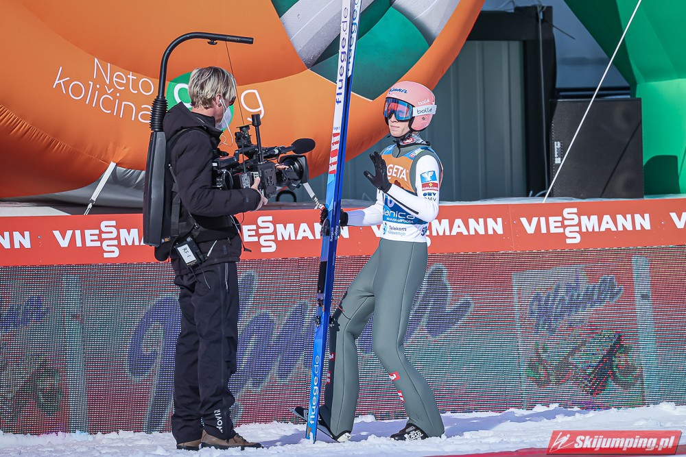 Ryoyu skakał dziś świetnie, bardzo mnie ucieszyło jego zwycięstwo, to były takie skoki jak te z sezonu 2018/19, według mnie Japończyk jest głównym kandydatem do zdobycia małej KK, myślę, że może on wygrać również jutro i w niedzielę na koniec sezonu. Eisenbichler latał daleko tylko, że jego lądowania były słabe. Bardzo dobry ruch wykonał Horngacher obniżając mu belkę startową. Geiger lubi Planice i udowodnił to po raz kolejny, drugi skok był bardzo fajny, choć lądowanie mogło być w nim lepsze. Hayboeck tak jak na MŚwL skończył tuż za podium, ale i tak jest to jego najlepszy wynik w sezonie, widać, że on tu skacze najlepiej z Austriaków, myślę, że jeszcze może stanąć na podium. Pavlovcic nie zawiódł Słoweńców, do podium co prawda nie starczyło, ale było dobrze, on podczas tego weekendu w Planicy ma duże szanse na nowy rekord życiowy. Huber spisał się naprawdę pozytywnie, on nie lata wysoko nad zeskokiem, ale co ważne nie wytraca prędkości. Katastrofalne spisał się Granerud, jego skok wyglądał podobnie do tego z kwalifikacji.