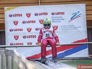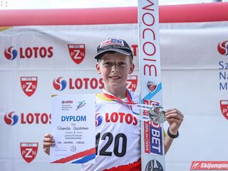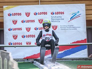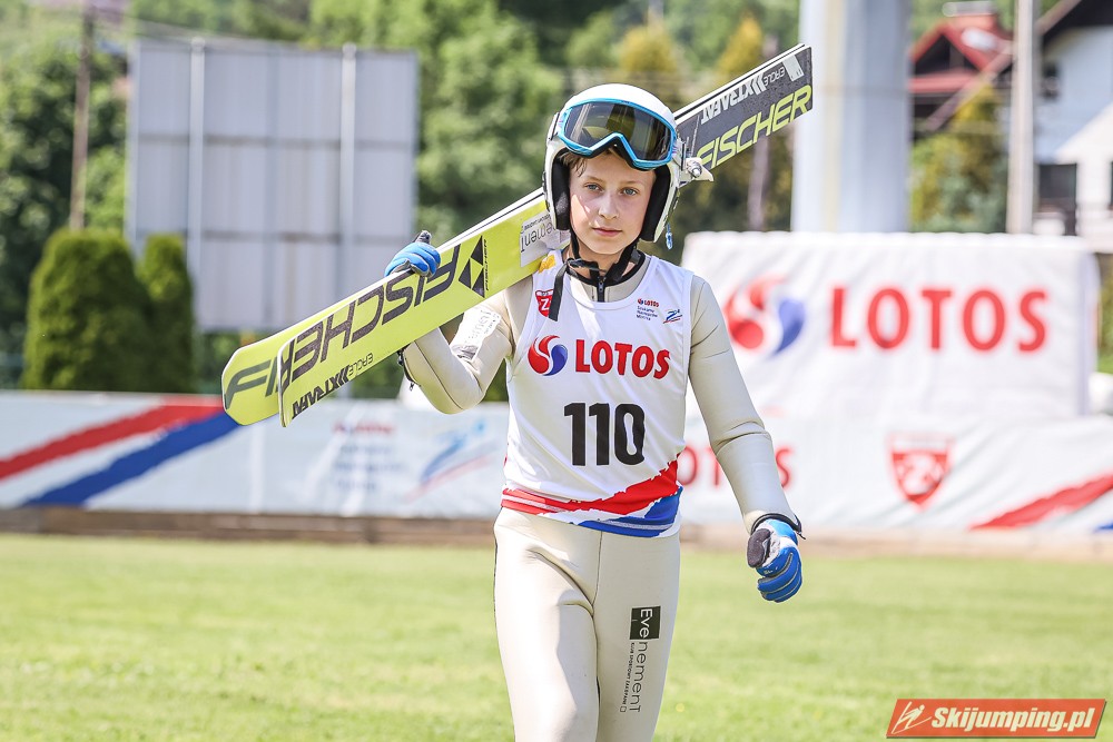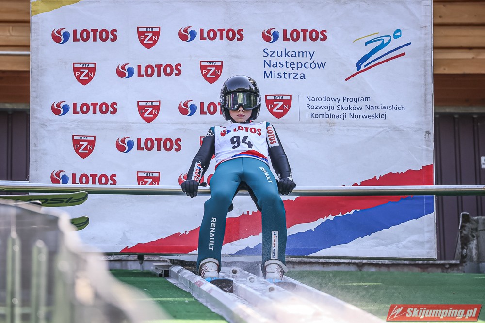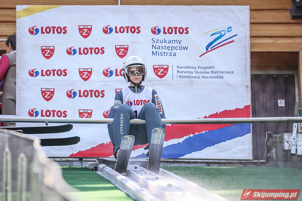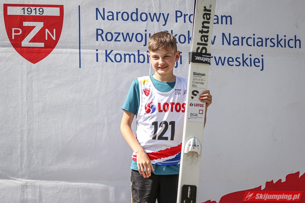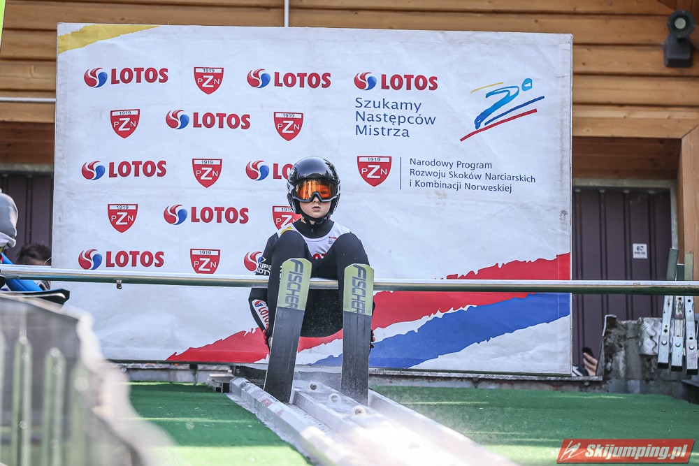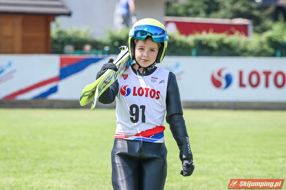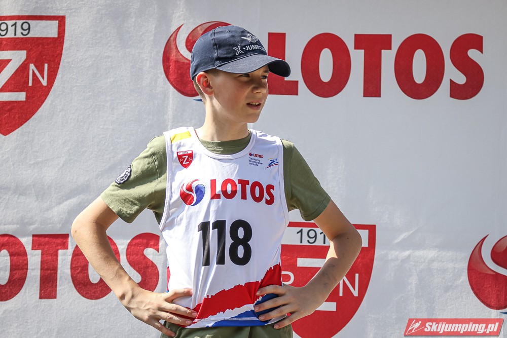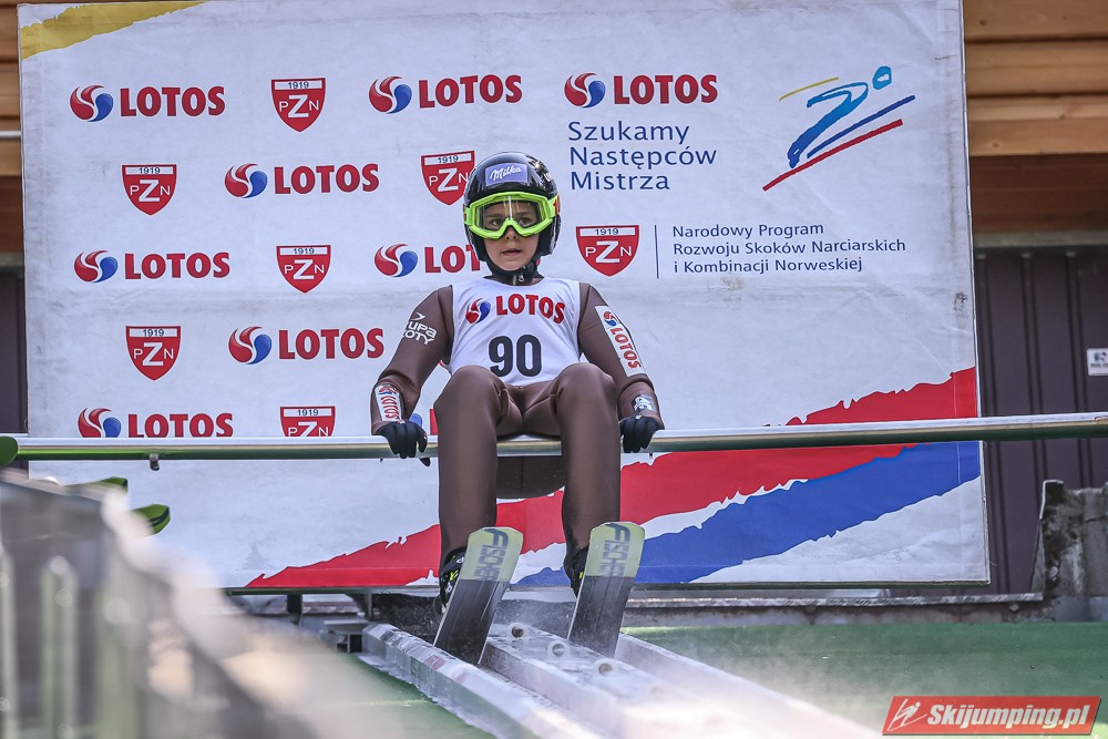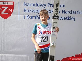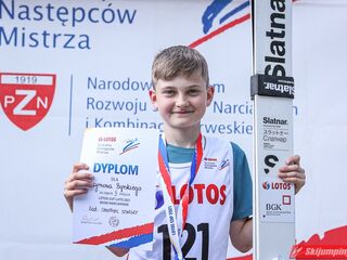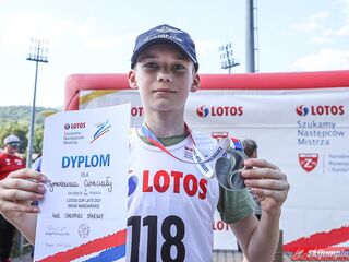 Wspaniały weekend za sobą ma Dawid Dzioboń z KS Rutkow-Ski, który zdominował zawody w kategorii Chłopiec Starszy i wygrał obydwa konkursy. Dla podopiecznego Łukasza Rutkowskiego były to pierwsze w karierze złote medale LOTOS Cup. - Czuję wielką radość po tych zawodach - mówił z uśmiechem na twarzy 11-latek. - W serii próbnej trochę nie dopchałem nogą, ale w konkursie tego przypilnowałem i od razu poleciało, dlatego już po skoku wiedziałem, że zdobędę medal, ale nie wiedziałem, że wygram te zawody. Kiedy zobaczyłem, że jestem pierwszy, to bardzo się ucieszyłem, bo LOTOS Cup są dla nas najważniejszymi zawodami w Polsce - przyznał Dawid Dzioboń. - To były moje pierwsze wygrane w zawodach LOTOS Cup, dlatego jestem bardzo szczęśliwy po tym weekendzie i jeszcze bardziej zmotywowany do dalszej pracy - zaznaczył zawodnik KS Rutkow-Ski. - Dostałem od trenera wkładki do butów, które bardzo pomogły mi poprawić moje skoki. Dzięki nim idę od razu do przodu na progu i przejście do lotu jest bardzo płynne. Chociaż na pewno brakuje w moich skokach jeszcze takiego dynamitu w nodze, ale jak on już się pojawi, wtedy będzie trzeba obniżyć belkę - uśmiechał się Dzioboń. - Moją mocną stroną jest na pewno technika, bo noty za styl ma bardzo dobre. Osobiście najlepiej czuję się w locie, bo stylowo bardzo dobrze skacze oraz ląduje i za to otrzymuję wysokie noty - podsumował 11-latek.