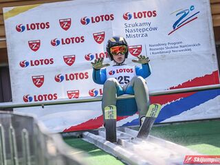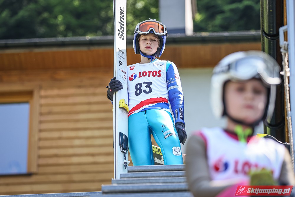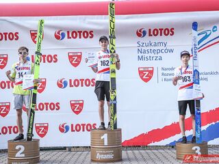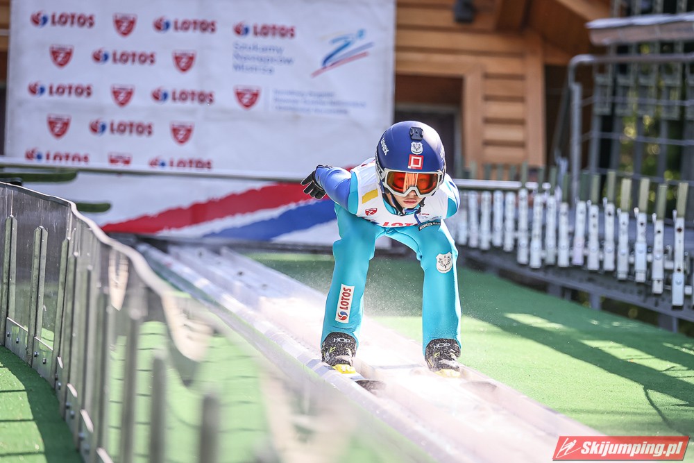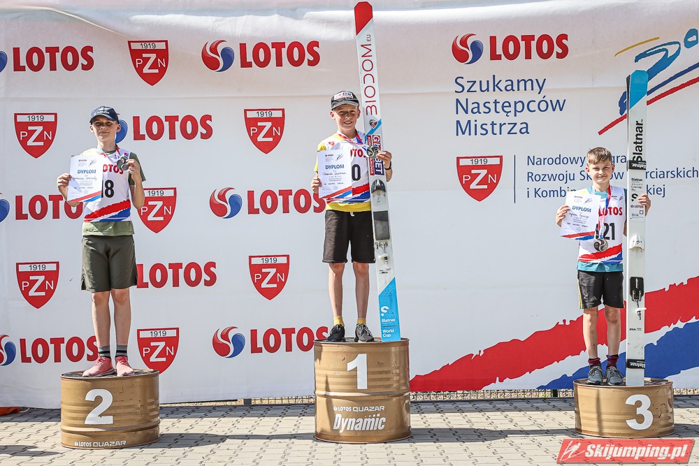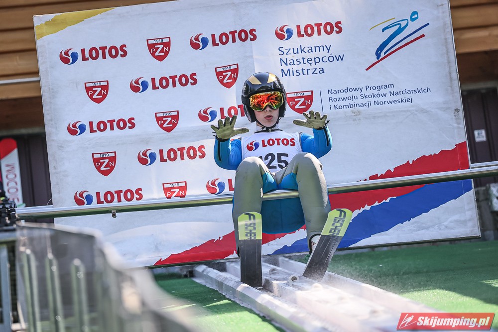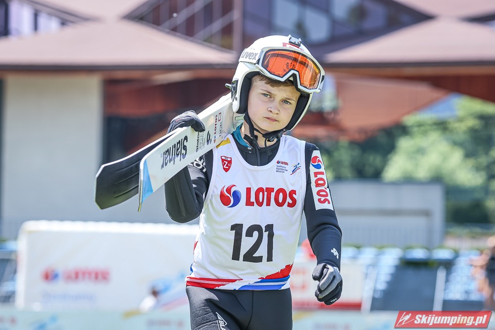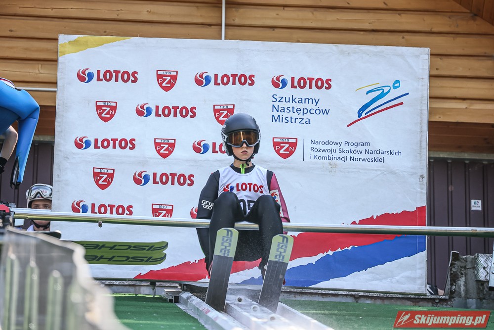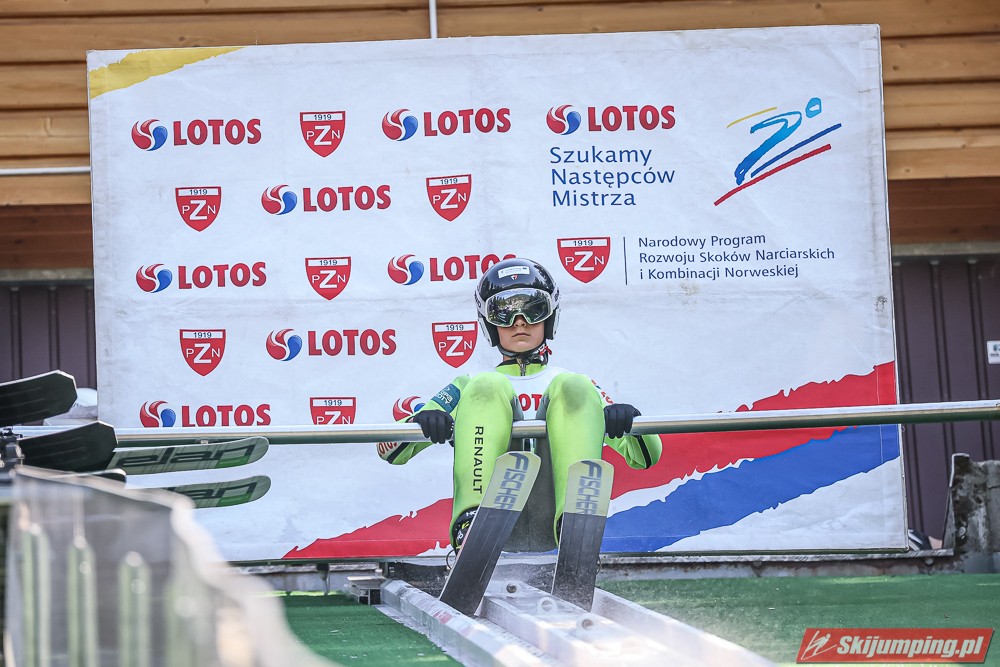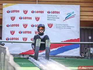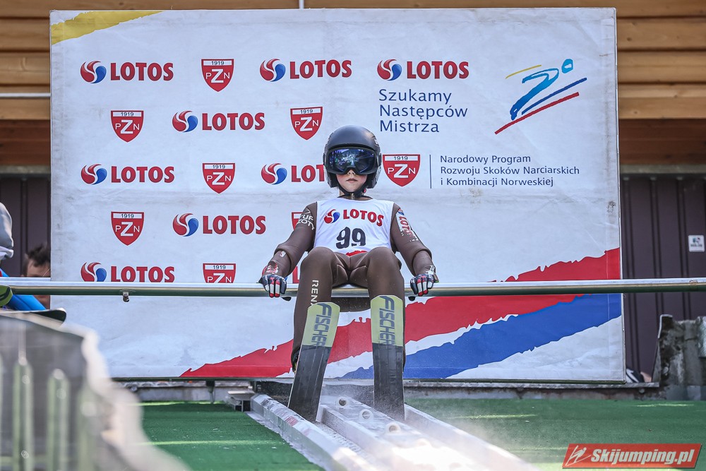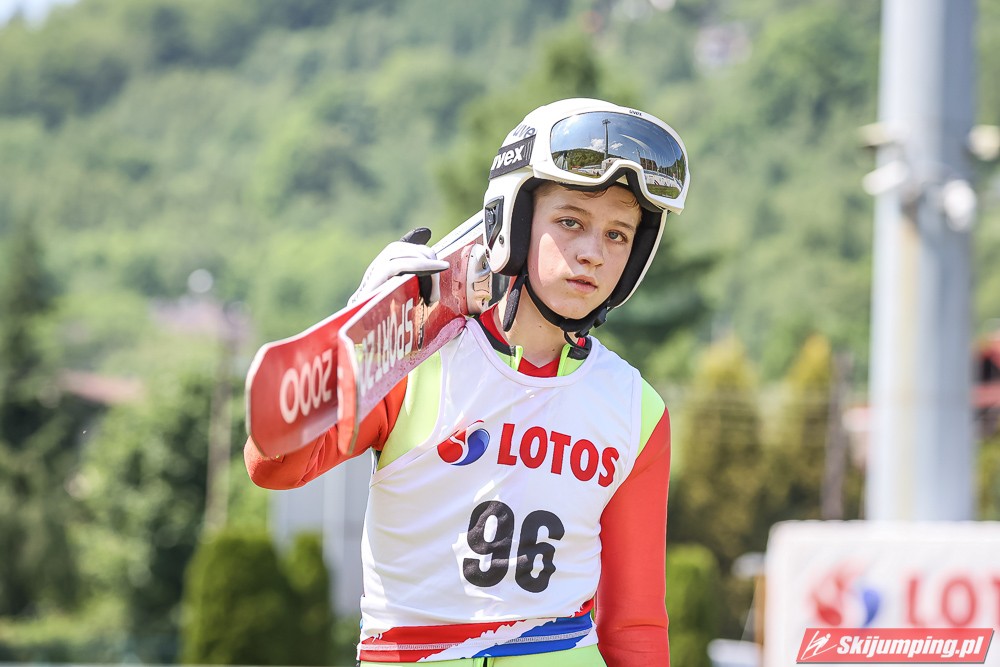 Wspaniały weekend za sobą ma Dawid Dzioboń z KS Rutkow-Ski, który zdominował zawody w kategorii Chłopiec Starszy i wygrał obydwa konkursy. Dla podopiecznego Łukasza Rutkowskiego były to pierwsze w karierze złote medale LOTOS Cup. - Czuję wielką radość po tych zawodach - mówił z uśmiechem na twarzy 11-latek. - W serii próbnej trochę nie dopchałem nogą, ale w konkursie tego przypilnowałem i od razu poleciało, dlatego już po skoku wiedziałem, że zdobędę medal, ale nie wiedziałem, że wygram te zawody. Kiedy zobaczyłem, że jestem pierwszy, to bardzo się ucieszyłem, bo LOTOS Cup są dla nas najważniejszymi zawodami w Polsce - przyznał Dawid Dzioboń. - To były moje pierwsze wygrane w zawodach LOTOS Cup, dlatego jestem bardzo szczęśliwy po tym weekendzie i jeszcze bardziej zmotywowany do dalszej pracy - zaznaczył zawodnik KS Rutkow-Ski. - Dostałem od trenera wkładki do butów, które bardzo pomogły mi poprawić moje skoki. Dzięki nim idę od razu do przodu na progu i przejście do lotu jest bardzo płynne. Chociaż na pewno brakuje w moich skokach jeszcze takiego dynamitu w nodze, ale jak on już się pojawi, wtedy będzie trzeba obniżyć belkę - uśmiechał się Dzioboń. - Moją mocną stroną jest na pewno technika, bo noty za styl ma bardzo dobre. Osobiście najlepiej czuję się w locie, bo stylowo bardzo dobrze skacze oraz ląduje i za to otrzymuję wysokie noty - podsumował 11-latek.