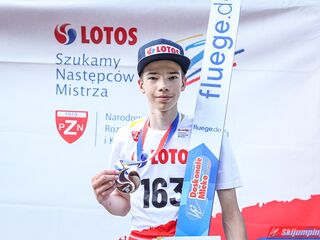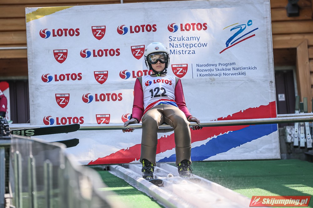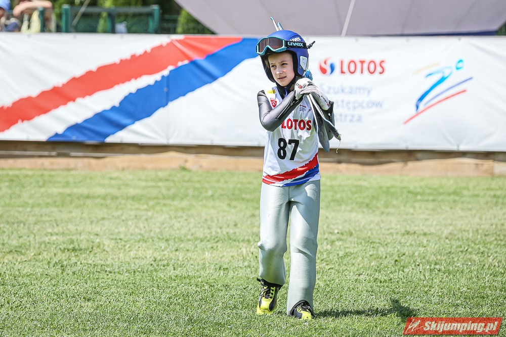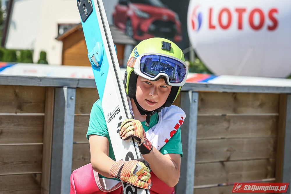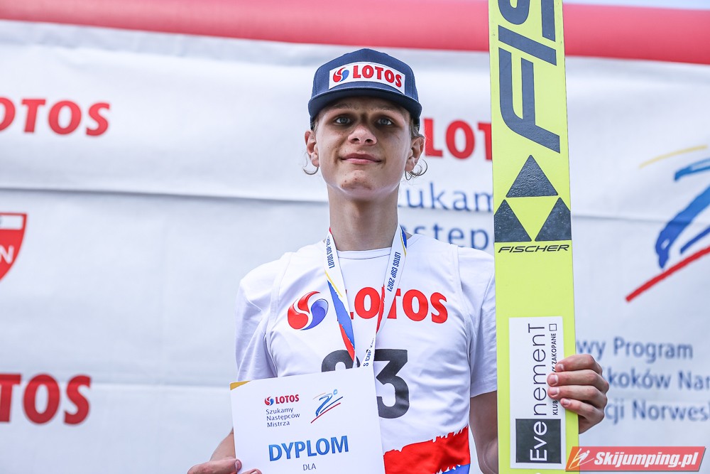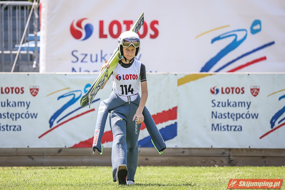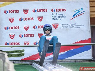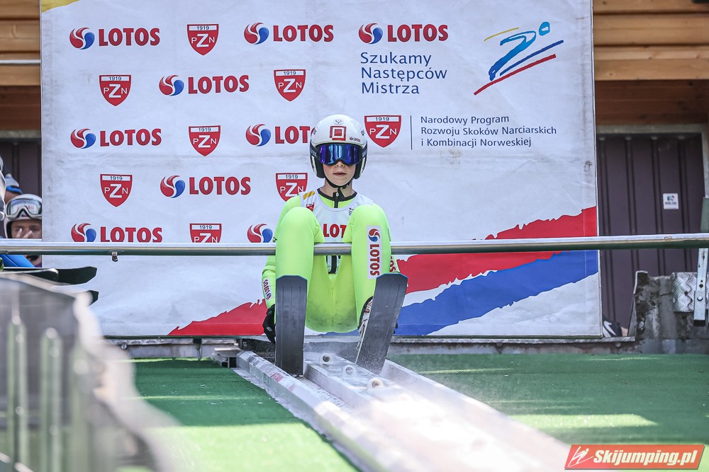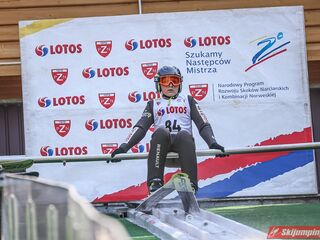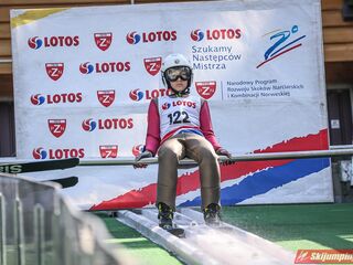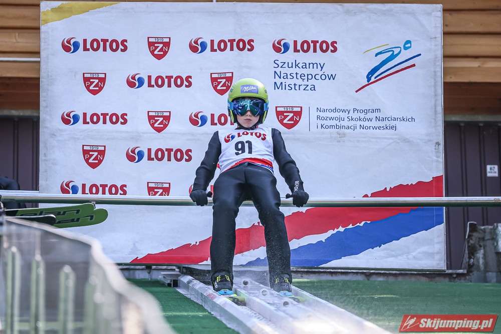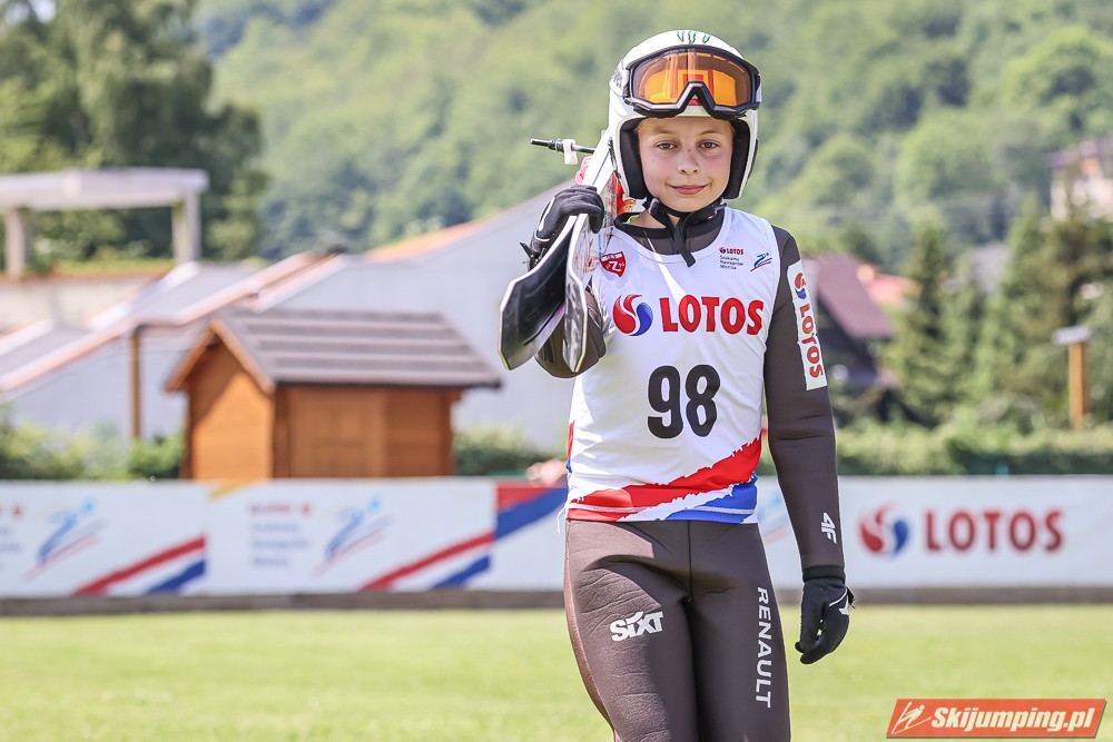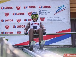 Wspaniały weekend za sobą ma Dawid Dzioboń z KS Rutkow-Ski, który zdominował zawody w kategorii Chłopiec Starszy i wygrał obydwa konkursy. Dla podopiecznego Łukasza Rutkowskiego były to pierwsze w karierze złote medale LOTOS Cup. - Czuję wielką radość po tych zawodach - mówił z uśmiechem na twarzy 11-latek. - W serii próbnej trochę nie dopchałem nogą, ale w konkursie tego przypilnowałem i od razu poleciało, dlatego już po skoku wiedziałem, że zdobędę medal, ale nie wiedziałem, że wygram te zawody. Kiedy zobaczyłem, że jestem pierwszy, to bardzo się ucieszyłem, bo LOTOS Cup są dla nas najważniejszymi zawodami w Polsce - przyznał Dawid Dzioboń. - To były moje pierwsze wygrane w zawodach LOTOS Cup, dlatego jestem bardzo szczęśliwy po tym weekendzie i jeszcze bardziej zmotywowany do dalszej pracy - zaznaczył zawodnik KS Rutkow-Ski. - Dostałem od trenera wkładki do butów, które bardzo pomogły mi poprawić moje skoki. Dzięki nim idę od razu do przodu na progu i przejście do lotu jest bardzo płynne. Chociaż na pewno brakuje w moich skokach jeszcze takiego dynamitu w nodze, ale jak on już się pojawi, wtedy będzie trzeba obniżyć belkę - uśmiechał się Dzioboń. - Moją mocną stroną jest na pewno technika, bo noty za styl ma bardzo dobre. Osobiście najlepiej czuję się w locie, bo stylowo bardzo dobrze skacze oraz ląduje i za to otrzymuję wysokie noty - podsumował 11-latek.