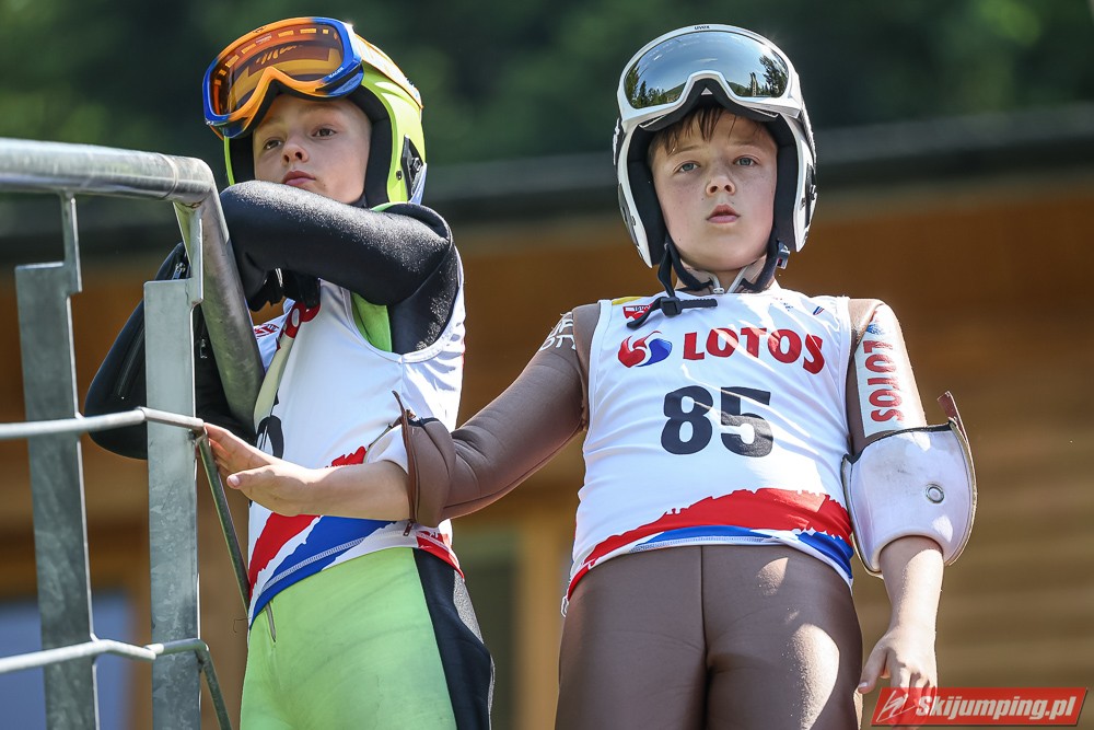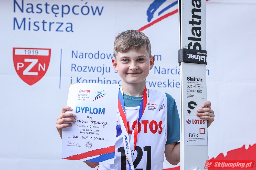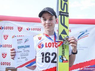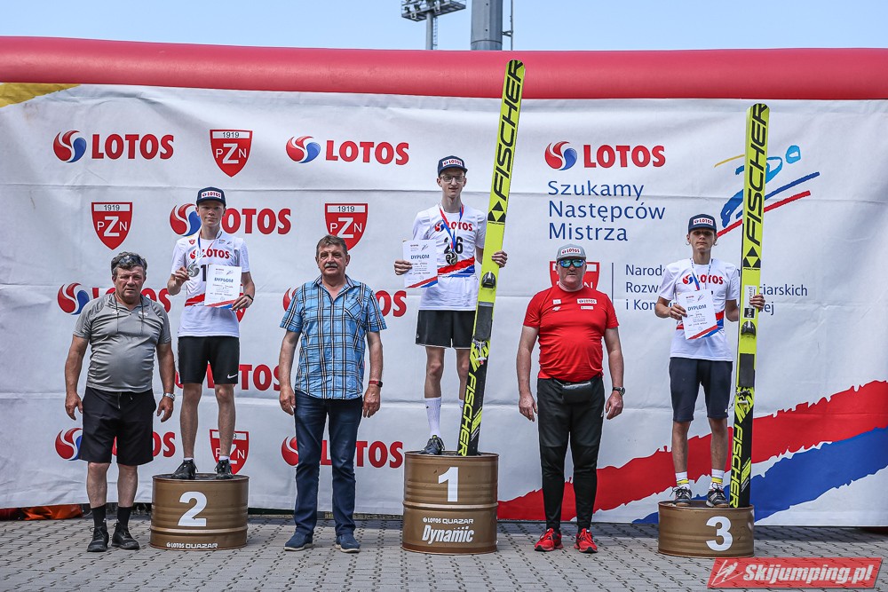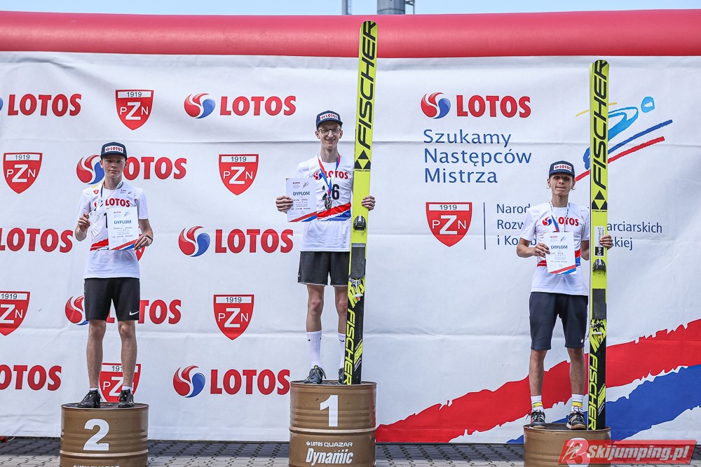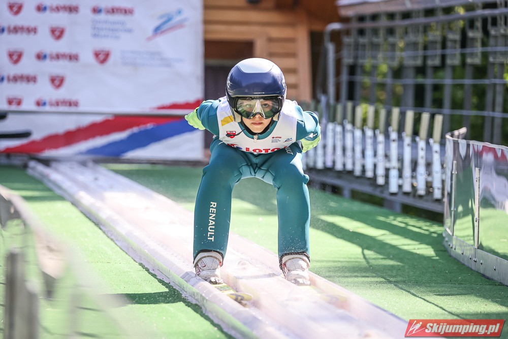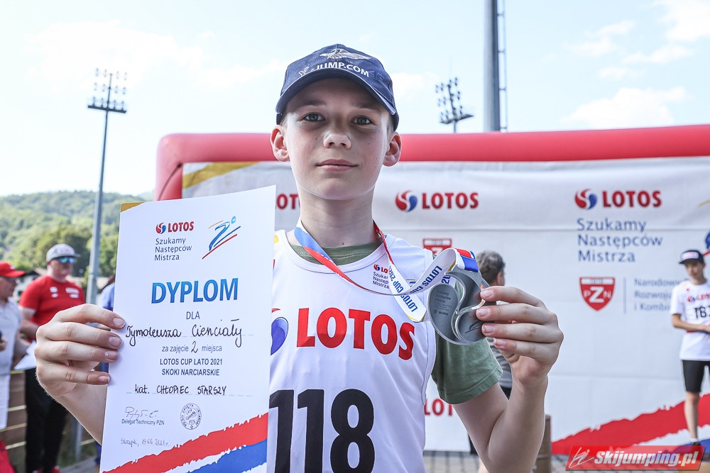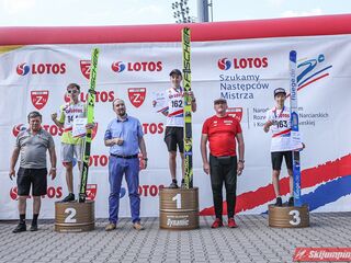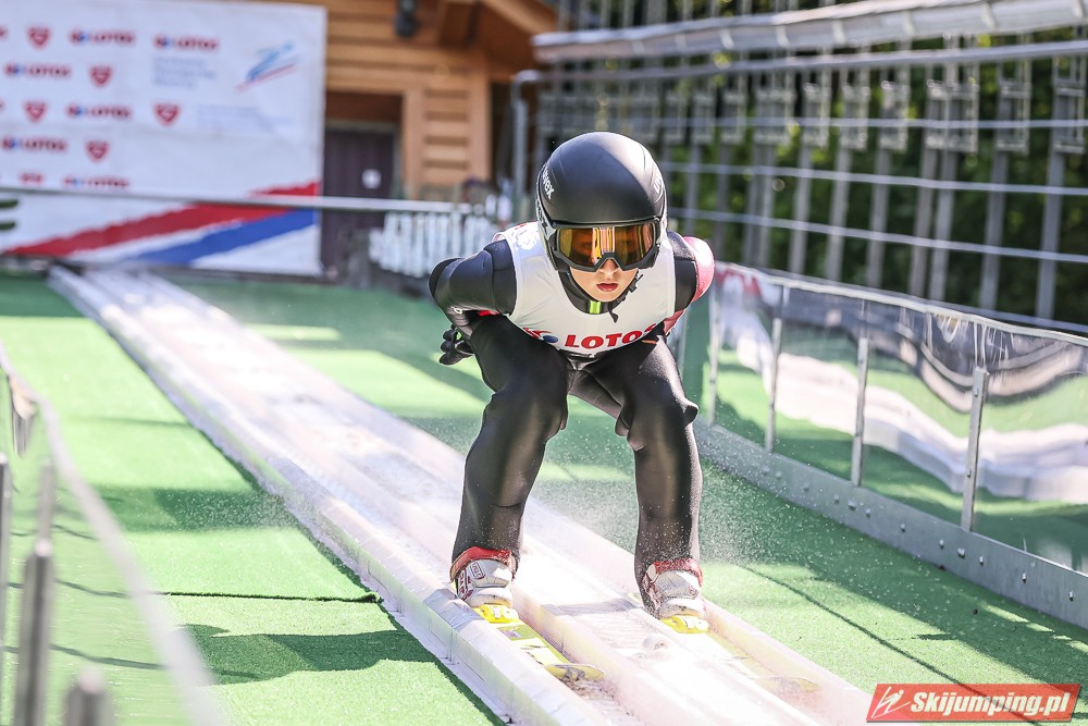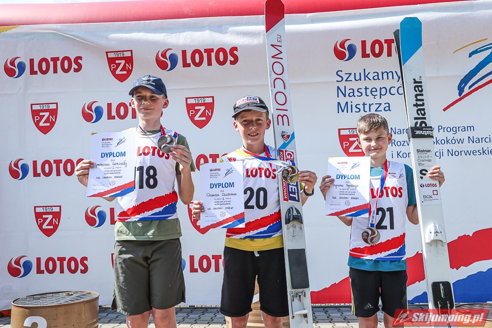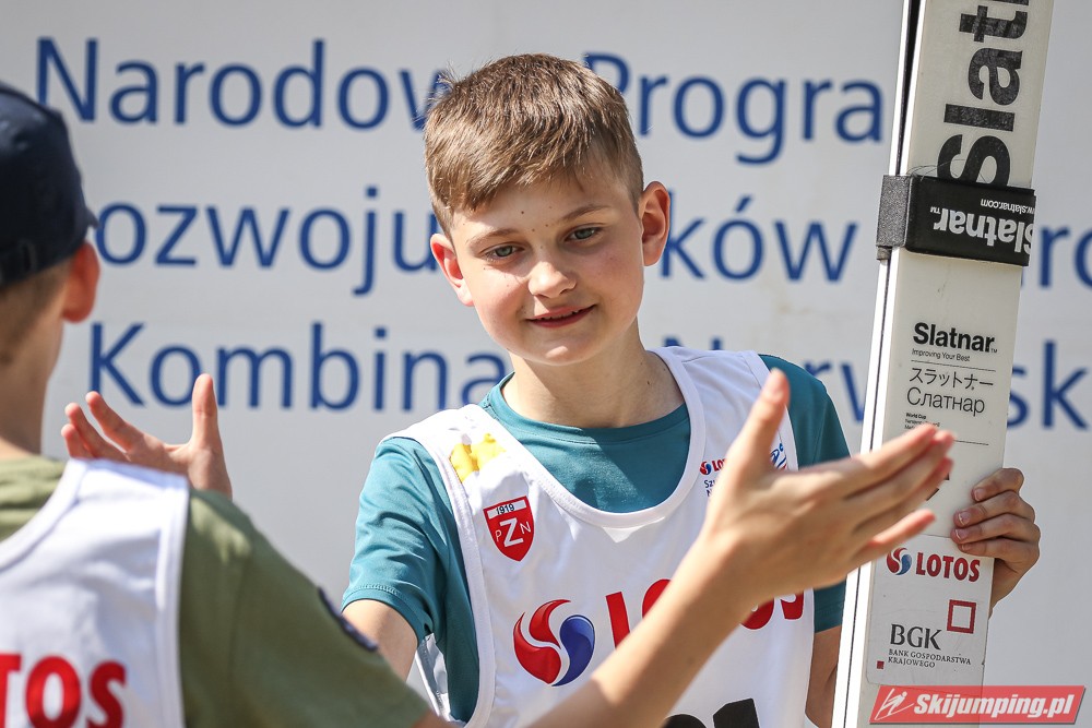 Wspaniały weekend za sobą ma Dawid Dzioboń z KS Rutkow-Ski, który zdominował zawody w kategorii Chłopiec Starszy i wygrał obydwa konkursy. Dla podopiecznego Łukasza Rutkowskiego były to pierwsze w karierze złote medale LOTOS Cup. - Czuję wielką radość po tych zawodach - mówił z uśmiechem na twarzy 11-latek. - W serii próbnej trochę nie dopchałem nogą, ale w konkursie tego przypilnowałem i od razu poleciało, dlatego już po skoku wiedziałem, że zdobędę medal, ale nie wiedziałem, że wygram te zawody. Kiedy zobaczyłem, że jestem pierwszy, to bardzo się ucieszyłem, bo LOTOS Cup są dla nas najważniejszymi zawodami w Polsce - przyznał Dawid Dzioboń. - To były moje pierwsze wygrane w zawodach LOTOS Cup, dlatego jestem bardzo szczęśliwy po tym weekendzie i jeszcze bardziej zmotywowany do dalszej pracy - zaznaczył zawodnik KS Rutkow-Ski. - Dostałem od trenera wkładki do butów, które bardzo pomogły mi poprawić moje skoki. Dzięki nim idę od razu do przodu na progu i przejście do lotu jest bardzo płynne. Chociaż na pewno brakuje w moich skokach jeszcze takiego dynamitu w nodze, ale jak on już się pojawi, wtedy będzie trzeba obniżyć belkę - uśmiechał się Dzioboń. - Moją mocną stroną jest na pewno technika, bo noty za styl ma bardzo dobre. Osobiście najlepiej czuję się w locie, bo stylowo bardzo dobrze skacze oraz ląduje i za to otrzymuję wysokie noty - podsumował 11-latek.