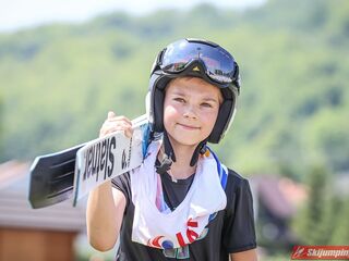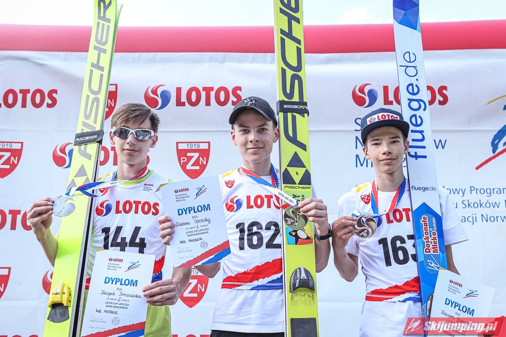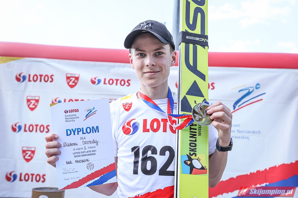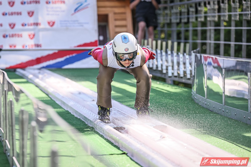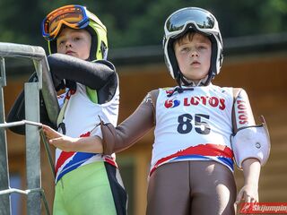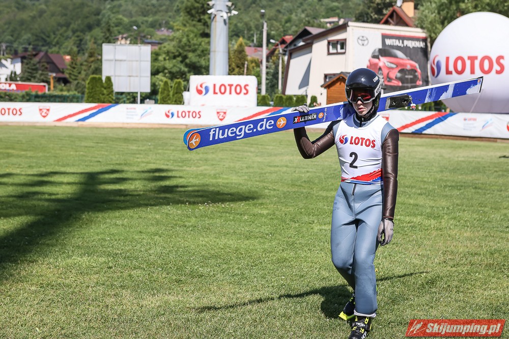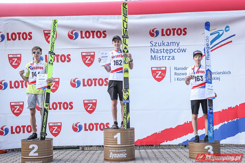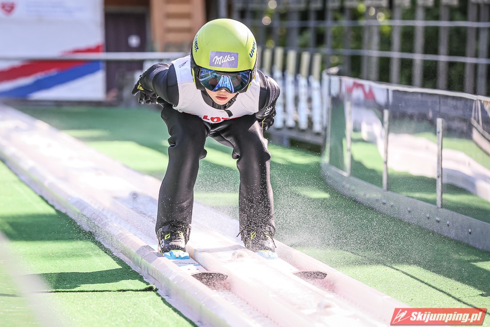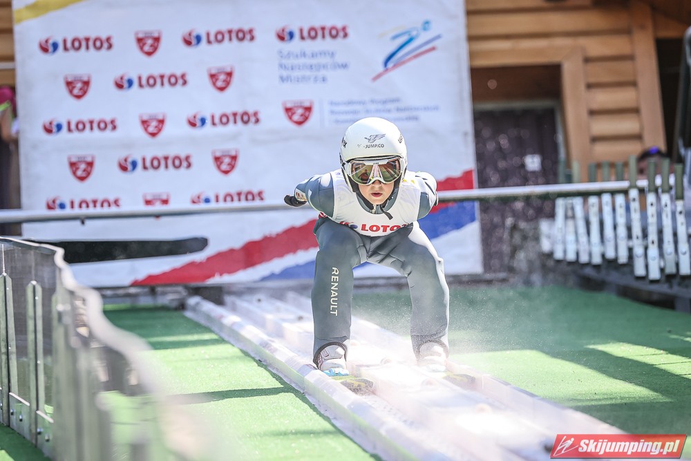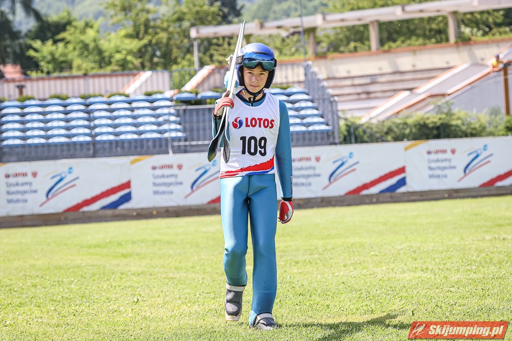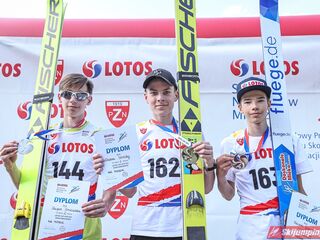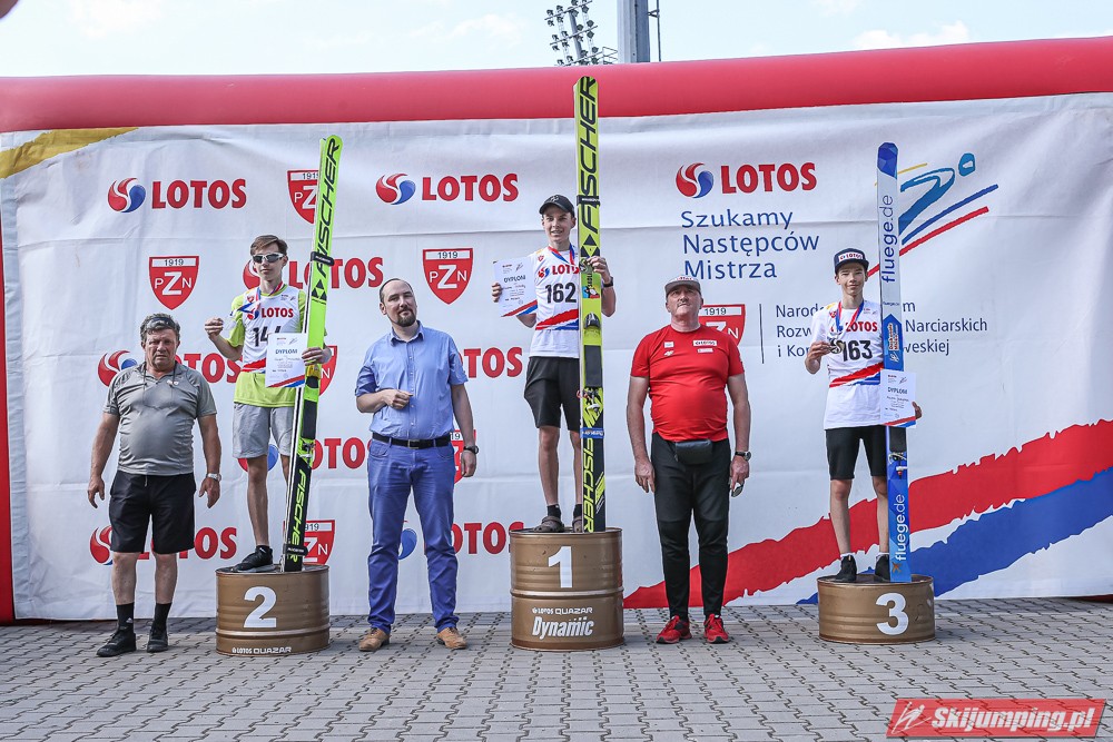 Wspaniały weekend za sobą ma Dawid Dzioboń z KS Rutkow-Ski, który zdominował zawody w kategorii Chłopiec Starszy i wygrał obydwa konkursy. Dla podopiecznego Łukasza Rutkowskiego były to pierwsze w karierze złote medale LOTOS Cup. - Czuję wielką radość po tych zawodach - mówił z uśmiechem na twarzy 11-latek. - W serii próbnej trochę nie dopchałem nogą, ale w konkursie tego przypilnowałem i od razu poleciało, dlatego już po skoku wiedziałem, że zdobędę medal, ale nie wiedziałem, że wygram te zawody. Kiedy zobaczyłem, że jestem pierwszy, to bardzo się ucieszyłem, bo LOTOS Cup są dla nas najważniejszymi zawodami w Polsce - przyznał Dawid Dzioboń. - To były moje pierwsze wygrane w zawodach LOTOS Cup, dlatego jestem bardzo szczęśliwy po tym weekendzie i jeszcze bardziej zmotywowany do dalszej pracy - zaznaczył zawodnik KS Rutkow-Ski. - Dostałem od trenera wkładki do butów, które bardzo pomogły mi poprawić moje skoki. Dzięki nim idę od razu do przodu na progu i przejście do lotu jest bardzo płynne. Chociaż na pewno brakuje w moich skokach jeszcze takiego dynamitu w nodze, ale jak on już się pojawi, wtedy będzie trzeba obniżyć belkę - uśmiechał się Dzioboń. - Moją mocną stroną jest na pewno technika, bo noty za styl ma bardzo dobre. Osobiście najlepiej czuję się w locie, bo stylowo bardzo dobrze skacze oraz ląduje i za to otrzymuję wysokie noty - podsumował 11-latek.