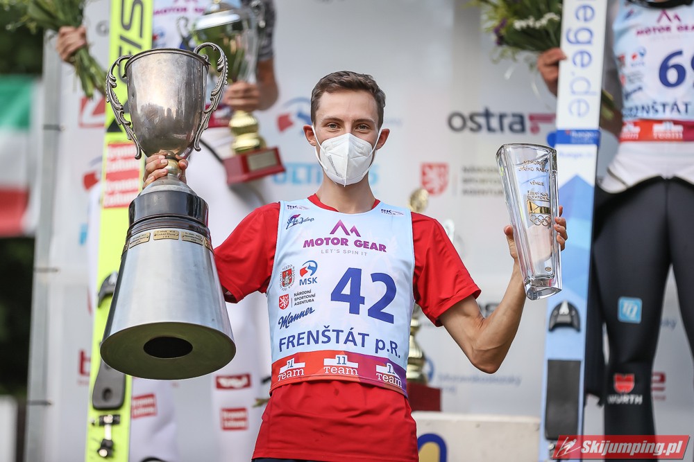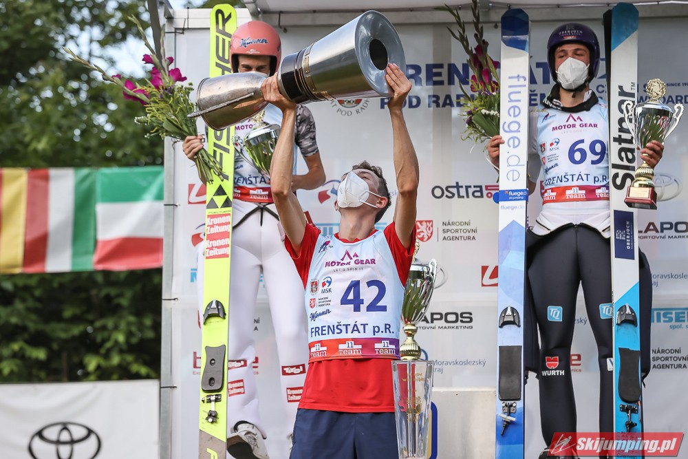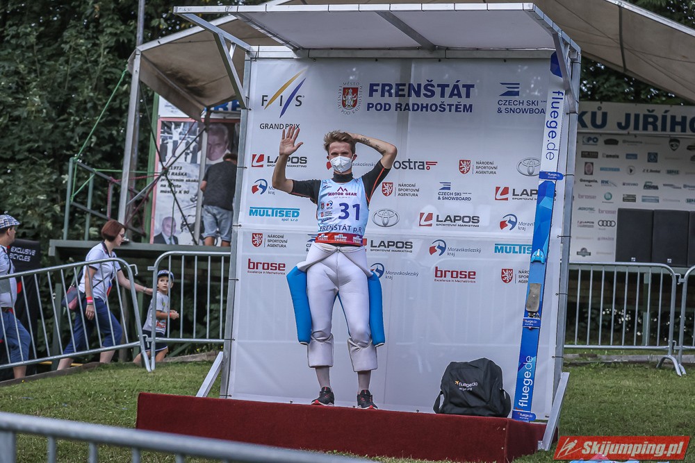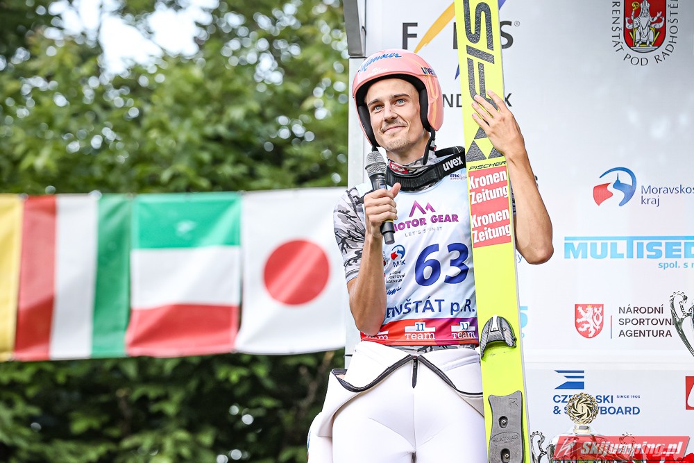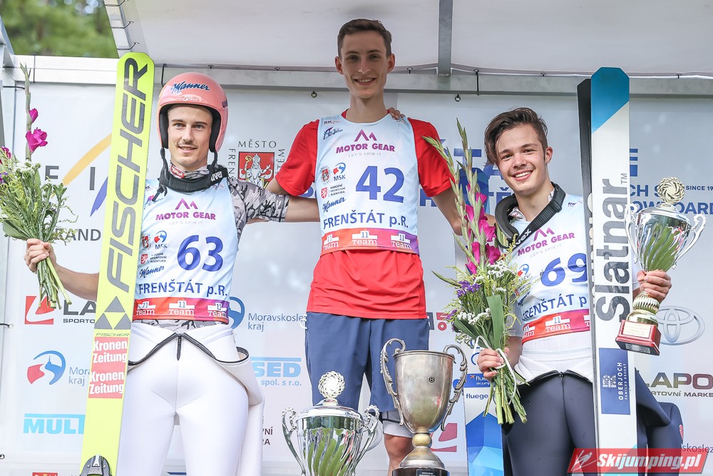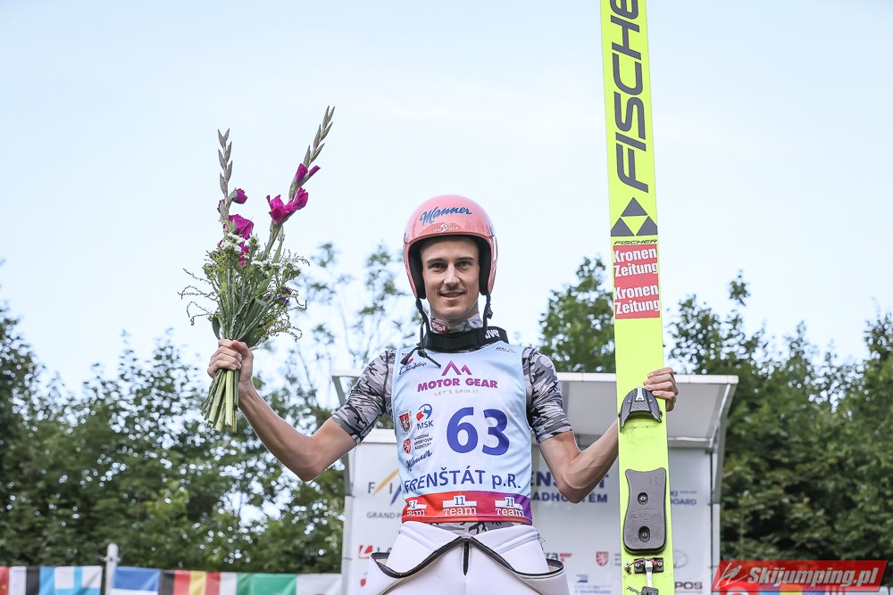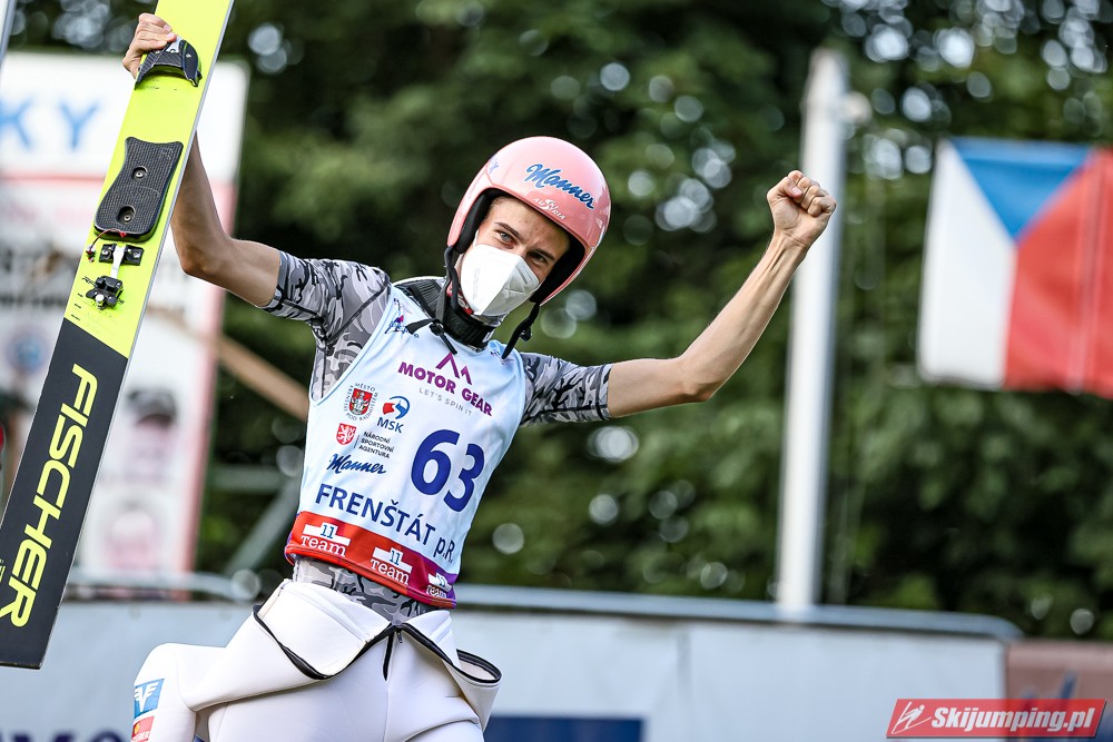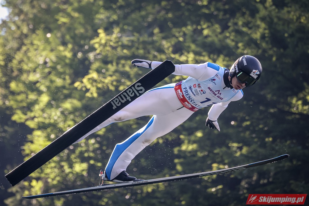 Viktor Polasek wygrał piątkowy konkurs Letniego Pucharu Kontynentalnego na skoczni Areal Horecky we Frenštácie (HS106). Reprezentant gospodarzy zwyciężył dzięki skokom na odległość 104 m oraz 101 m. Drugi był Mika Schwann, a trzeci Philipp Raimund. Na piątej pozycji rywalizację zakończył Maciej Kot. Do finału awansowało pięciu Polaków.