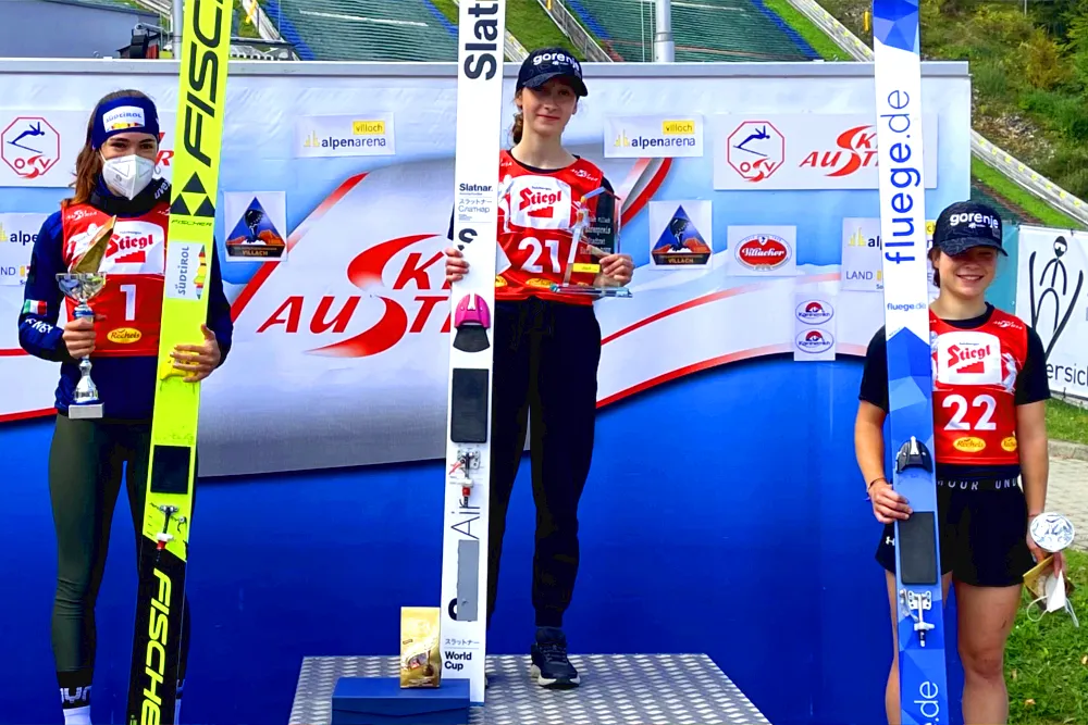 Nika Prevc odniosła pierwsze w karierze zwycięstwo w zawodach z cyklu FIS Cup. Skład podium sobotniego konkursu na 98-metrowym obiekcie w Villach uzupełniły Lara Malsiner i Jerneja Repinc Zupancic.