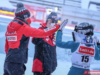 1. Bardzo optymistyczna - Żyła w top 10 w sobotę i niedzielę, Stoch wreszcie na podium w jednych zawodach i w top 5 obu oraz wszyscy w finale w obu konkursach. To ostatnie to będzie zasługa tego, że sztab wolał nie ryzykować ze zbyt dużą ilością zawodników, więc skupił się tylko na czterech. Wyjątkowo szybko potrafimy nadrabiać zaległości z okresu pomiędzy LGP a PŚ, w którym doszło do zaniechań. Jak tak dalej pójdzie, a podopieczni w Ramsau się odblokują, znów będziemy groźni w Engelbergu.