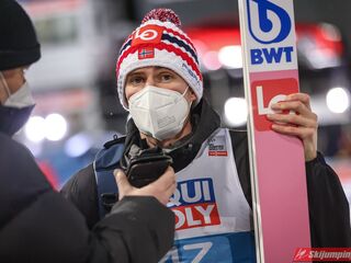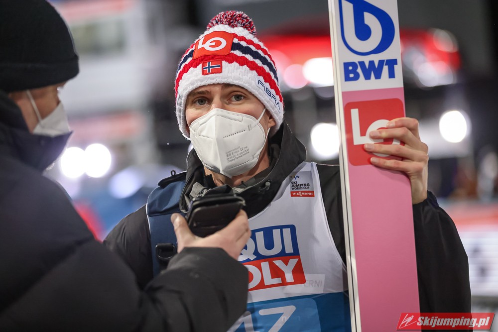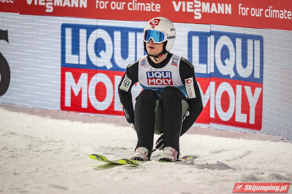 Wicelider Turnieju Czterech Skoczni, Marius Lindvik wylądował na 126 metrze i na półmetku rywalizacji w Bischofshofen zajmował dwudziestą trzecią lokatę.
