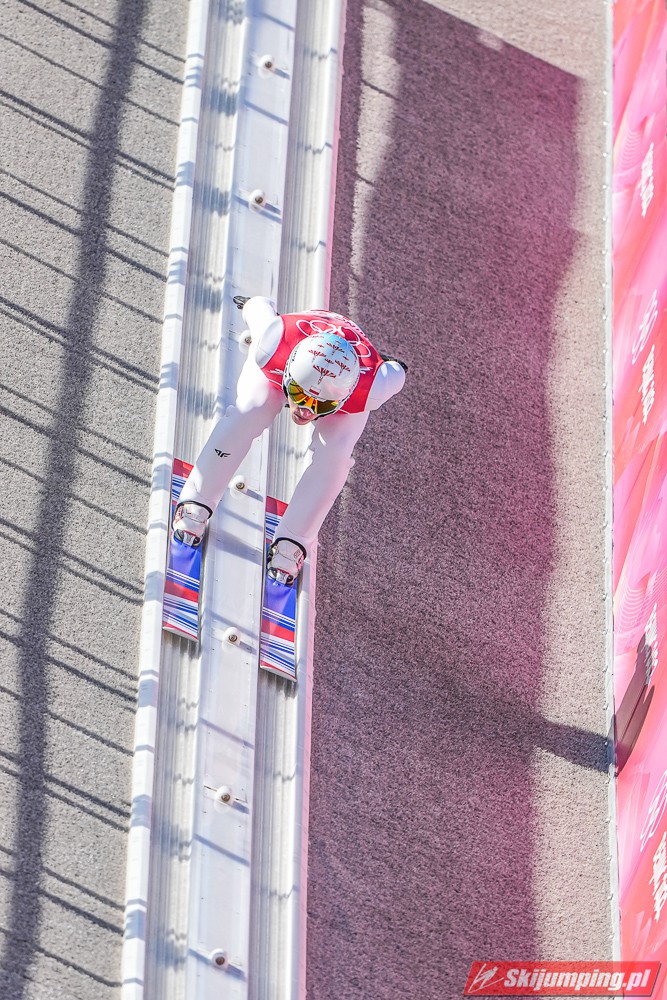 Sobotnie kwalifikacje na skoczni w Zhangjiakou zakończyły się norweskim dubletem. Marius Lindvik triumfował po skoku na odległość 100,5 metra. Drugie miejsce, ze stratą 0,1 punktu do zwycięzcy, zajął Robert Johansson, który lotem na 103 metr ustanowił nowy rekord obiektu. Czołową trójkę skompletował Piotr Żyła z wynikiem 102,5 metra.