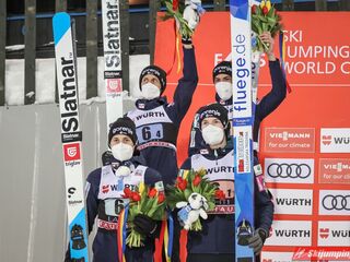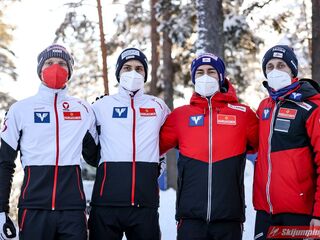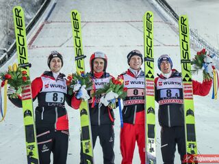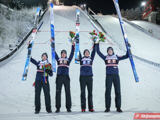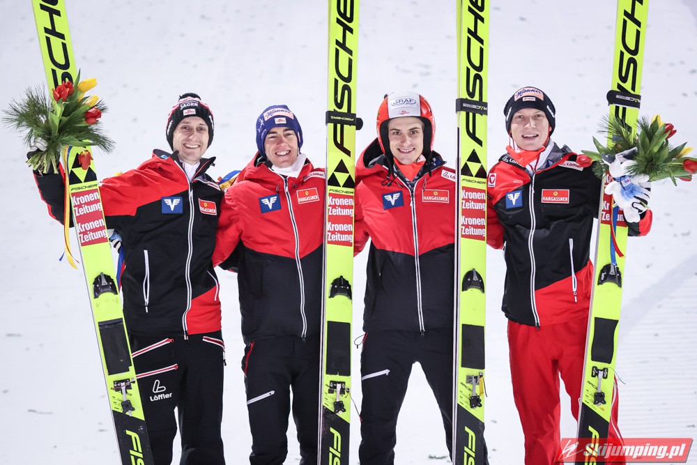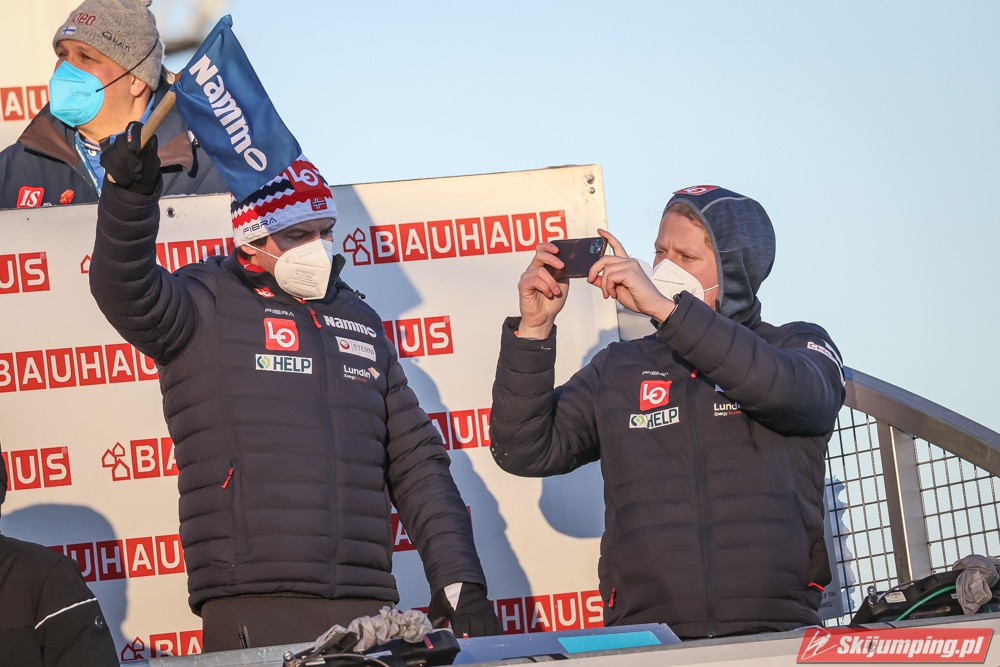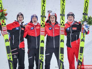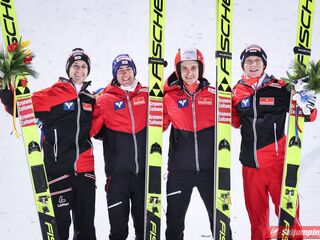 Trzecie miejsce, z ponad 20-punktową stratą do drugich Austriaków, zajmowali Norwegowie. Marius Lindvik (127,5 m), Robert Johansson (120 m), Daniel Andre Tande (116 m) oraz Halvor Egner Granerud (120,5 m) mieli 1,4 punktu przewagi nad czwartymi Niemcami.