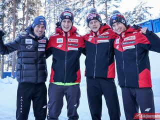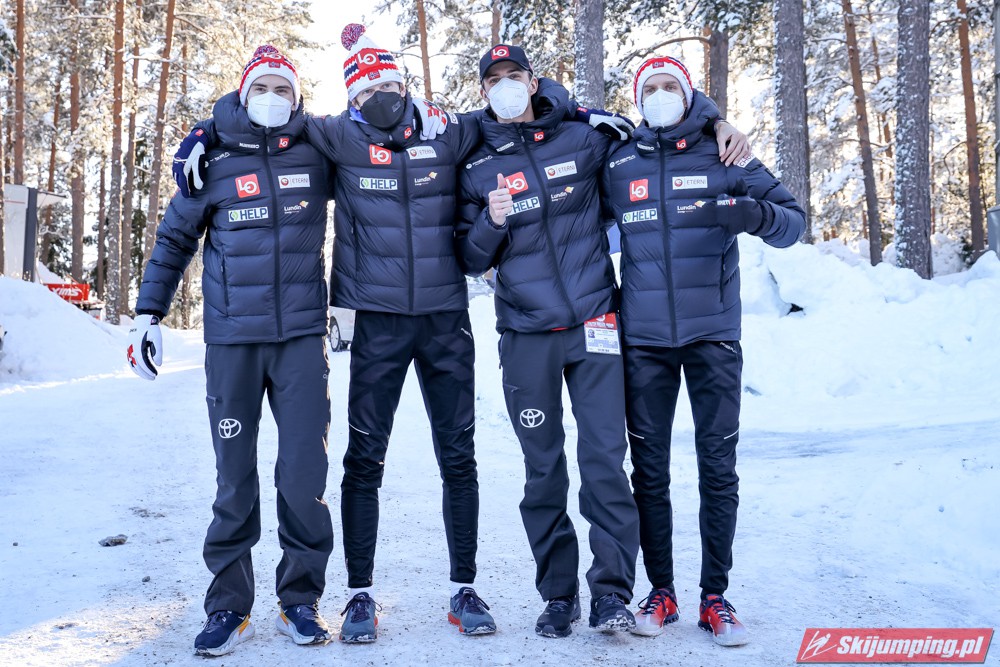 Wielkie brawa dla Austriaków, pokazali dzisiaj moc. Kraft tu w Lahti jest zdecydowanie najlepszy, w tym sezonie jeszcze nie był w tak dobrej formie, nie ukrywam, że cieszy mnie jego forma, jutro jest zdecydowanym faworytem i jak nie wygra jutrzejszego konkursu to będzie to można uznać za niespodziankę, chyba nie ma takiego zawodnika, który przy równych warunkach jest mu w stanie zagrozić. Kapitalnie w drugiej serii skoczył Aigner, Wohlgennant również w końcu zaczyna przykładać dobre skoki z PK na PŚ, dobre skoki pokazał też dziś Hoerl. Słoweńcy również pokazali się z dobrej strony, mieli duże szanse na zwycięstwo, ale się nie udało, tak naprawdę zabrakło lepszego skoku Zajca w pierwszej serii. Jelar skakał dziś bardzo dobrze, Cene jeszcze lepiej, w drugiej serii gość skacze za HS, a twarz pokerowa, podobało mi się to, Pero również fajnie, mimo, że po jego drugim skoku Słoweńcy spadli za Austriaków. Niemcy na pewnym 3 miejscu, Geiger na wysokim poziomie, tak samo jak Eisenbichler, bardzo fajnie w drugiej serii skoczył Schmid, Freund dużo traci na lądowaniach, drugi skok przypominał już jego najlepsze czasy. Nasi skakali nieźle, gdyby nie ta dyskwalifikacja Wąska to byłoby 5 miejsce, więc i tak dużo nie stracili, dobrze, że pomimo tej dyskwalifikacji pokonali Ruskich. Apropos Ruskich, to chciałbym coś napisać o Klimowie, lubiłem go, naprawdę go lubiłem, ale po tym co dzisiaj zrobił to jest on dla mnie p*erdolonym ch*jem, życzę mu, żeby osiągał jak najgorsze wyniki.