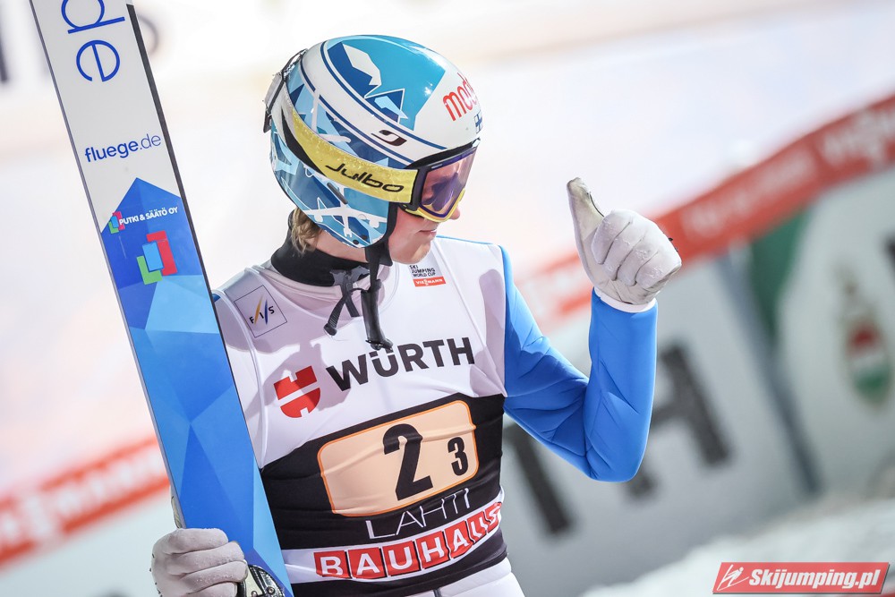 Jego dyskwalifikację uważam za kompromitację sztabu, bo to oni są odpowiedzialni żeby zawodnik startował w przepisowym sprzęcie. Ogólnie dsq w zawodach drużynowych jest totalnie niesprawiedliwe, może wystarczyłoby odejmować kilka punktów przy minimalnym przekroczeniu przepisów tak by nie karać reszty drużyny. Zaskakująco dobrze skakali dzisiaj Finowie. Może dobiją chociaż do poziomu Szwajcarów w kolejnych sezonach.