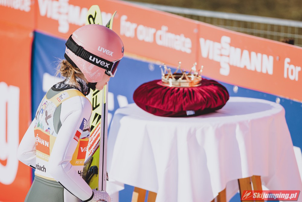 W klasyfikacji generalnej Pucharu Świata prowadząca Marita Kramer (995 pkt.) ma już 254 punkty przewagi nad drugą Niką Kriznar (741 pkt.) oraz 294 "oczek" nad trzecią Ursą Bogataj (701 pkt.). Czterdzieste trzecie miejsce zajmują ex aequo Kinga Rajda i Nicole Konderla (po 19 pkt.).