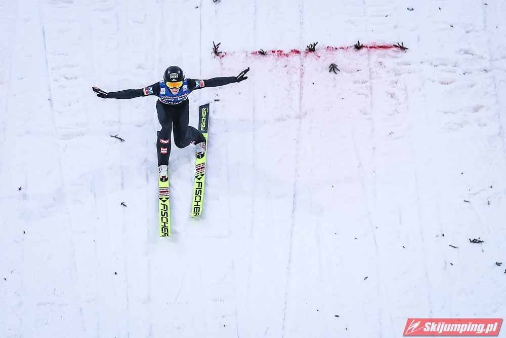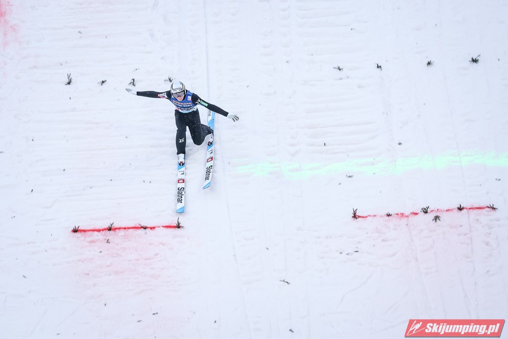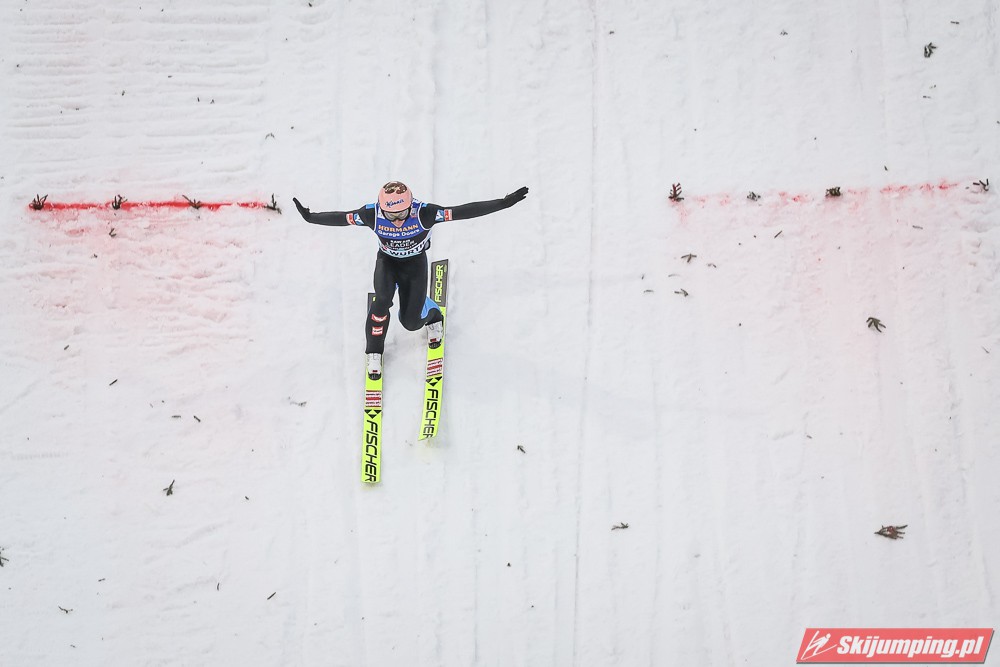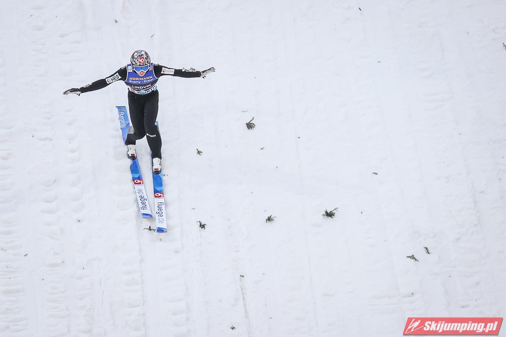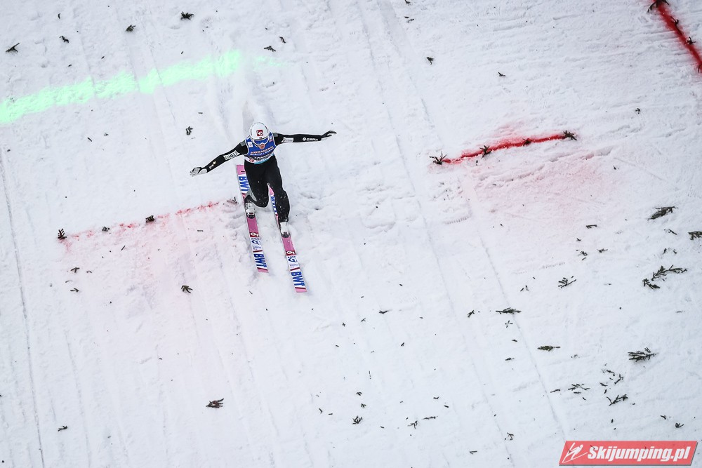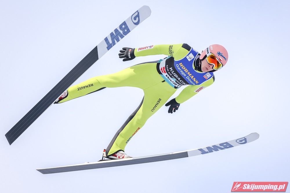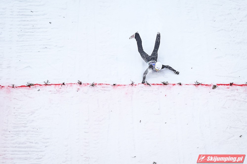 Dawid Kubacki wylądował na 117 metrze i zakończył niedzielne zawody na trzydziestym trzecim miejscu. Trzydziesty piąty był Kacper Juroszek (118 m).