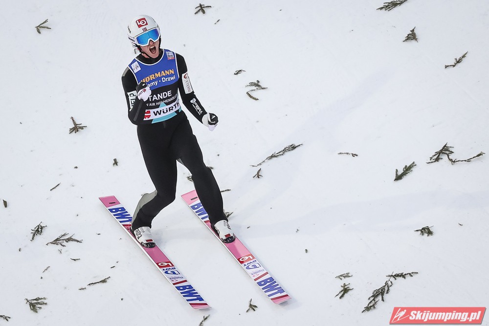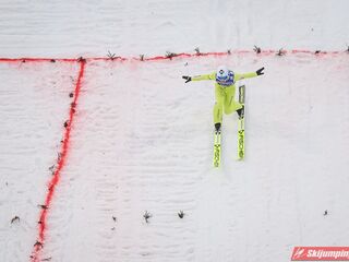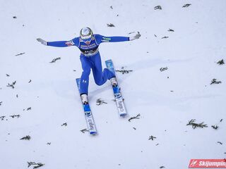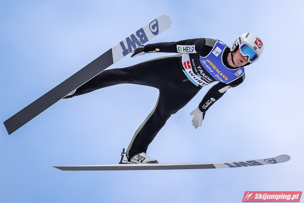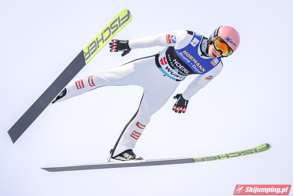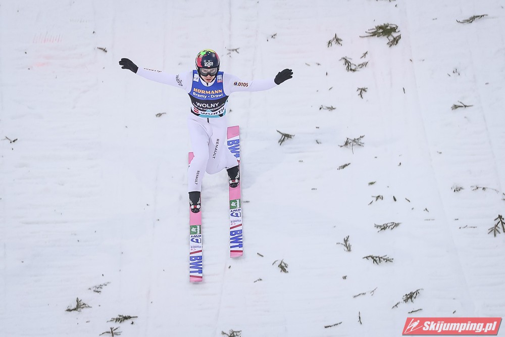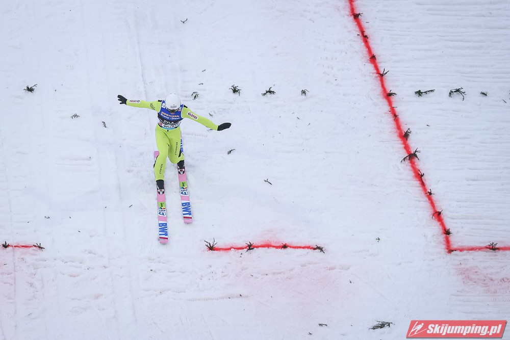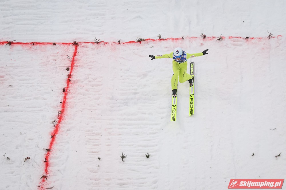 Dawid Kubacki wylądował na 117 metrze i zakończył niedzielne zawody na trzydziestym trzecim miejscu. Trzydziesty piąty był Kacper Juroszek (118 m).