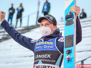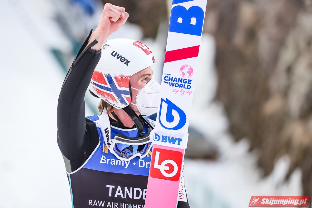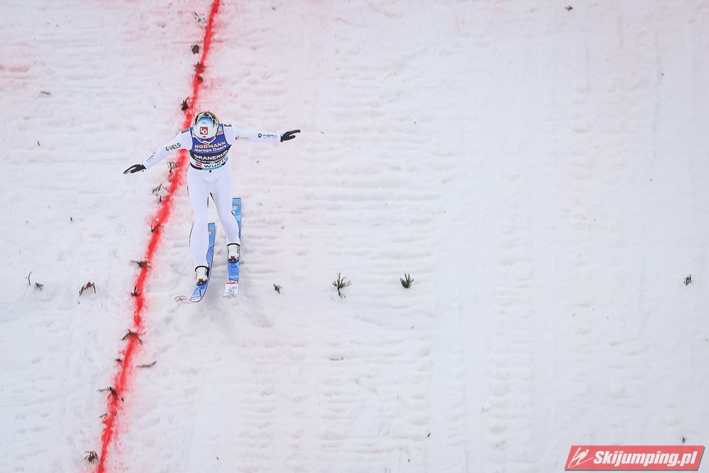 Po zwycięstwo sięgnął z kolei Daniel Andre Tande, który 346 dni temu walczył o życie po upadku w Planicy. Norweg poszybował na odległość 133,5 metra i pokonał o 4,1 punktu Anze Laniska (131,5 m). Na najniższym stopniu podium stanął Stefan Kraft (128,5 m), który wyprzedził Markusa Eisenbichlera (135,5 m), Karla Geigera (128 m) oraz Cene Prevca (133 m).