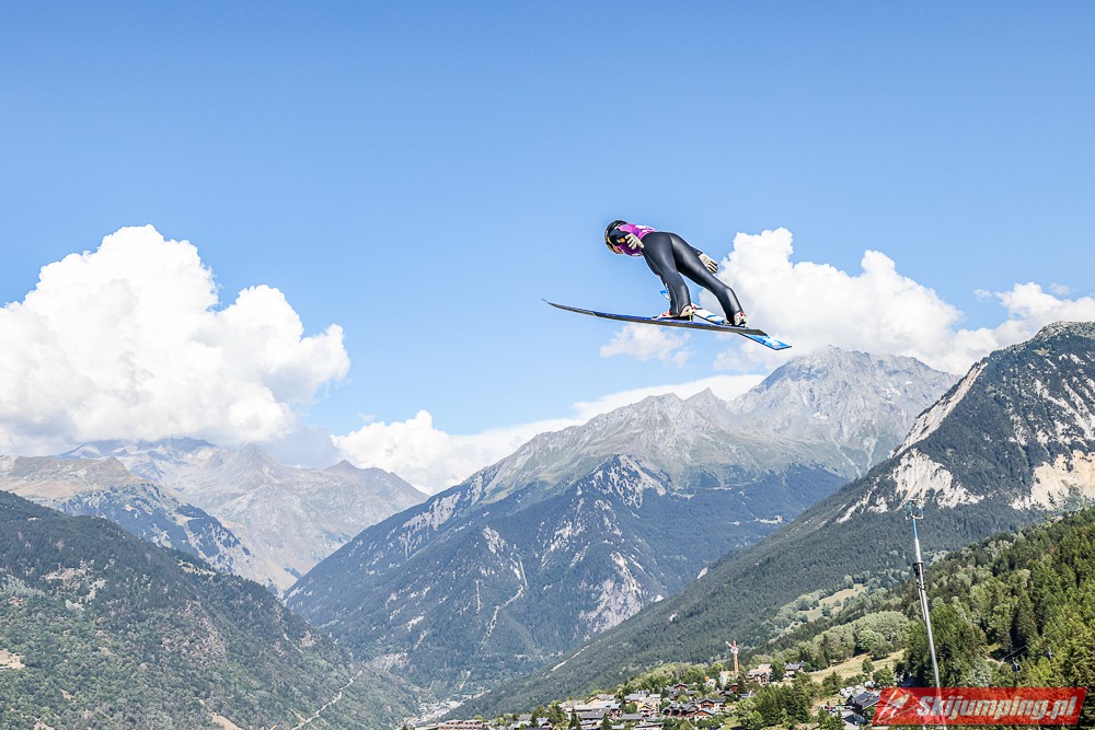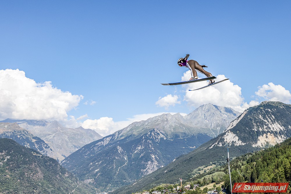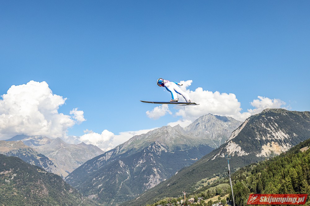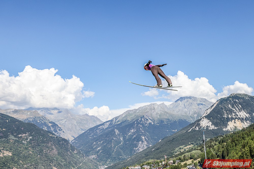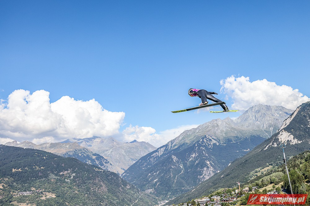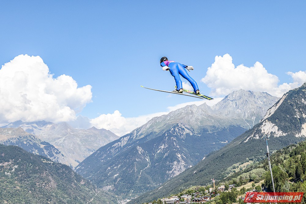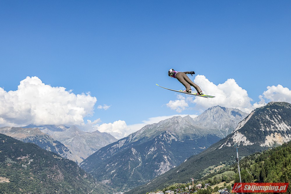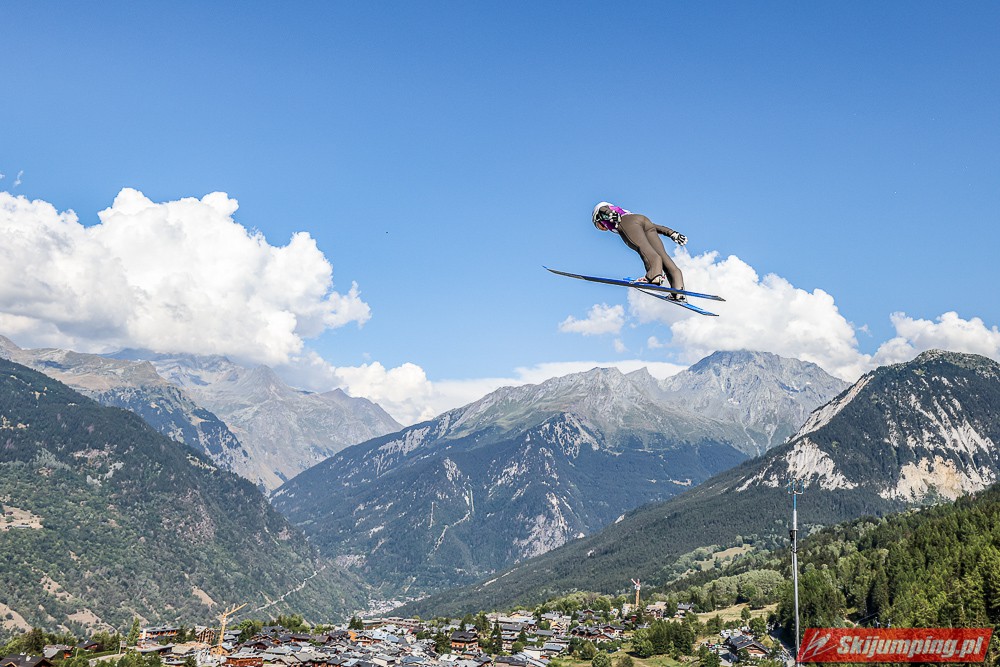 W pierwszej serii rywalkom odleciała Ursa Bogataj. Liderka Letniego Grand Prix poszybowała na odległość 125,5 metra i na półmetku zmagań w Courchevel prowadziła z przewagą 13,9 punktu nad Niką Kriznar (115,5 m). Trzecie miejsce, ze stratą 17,2 pkt. do liderki, zajmowała zawodniczka gospodarzy, Julia Clair (121 m). Czwarta była Luisa Goerlich (126,5 m), piąta Josephine Pagnier (105,5 m), a szósta Nika Prevc (118 m).