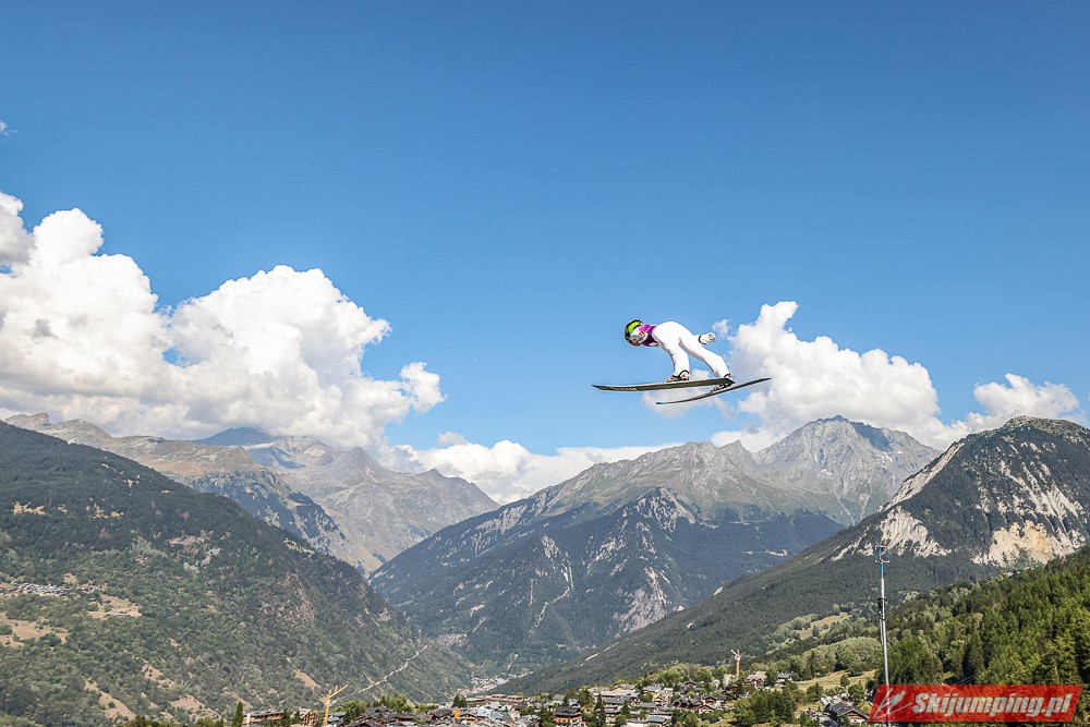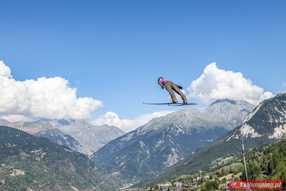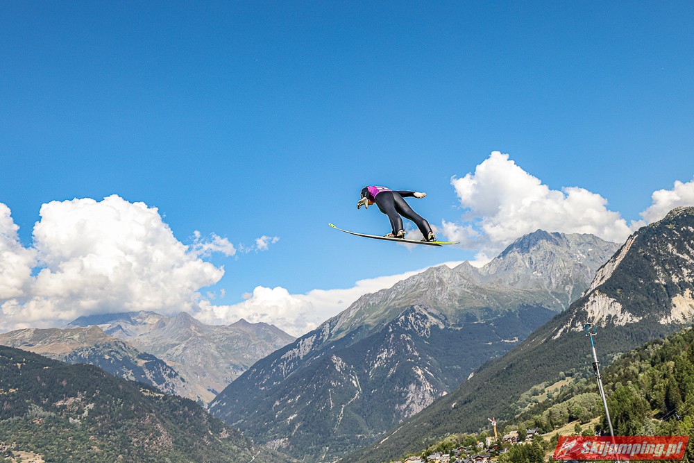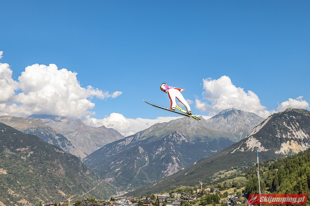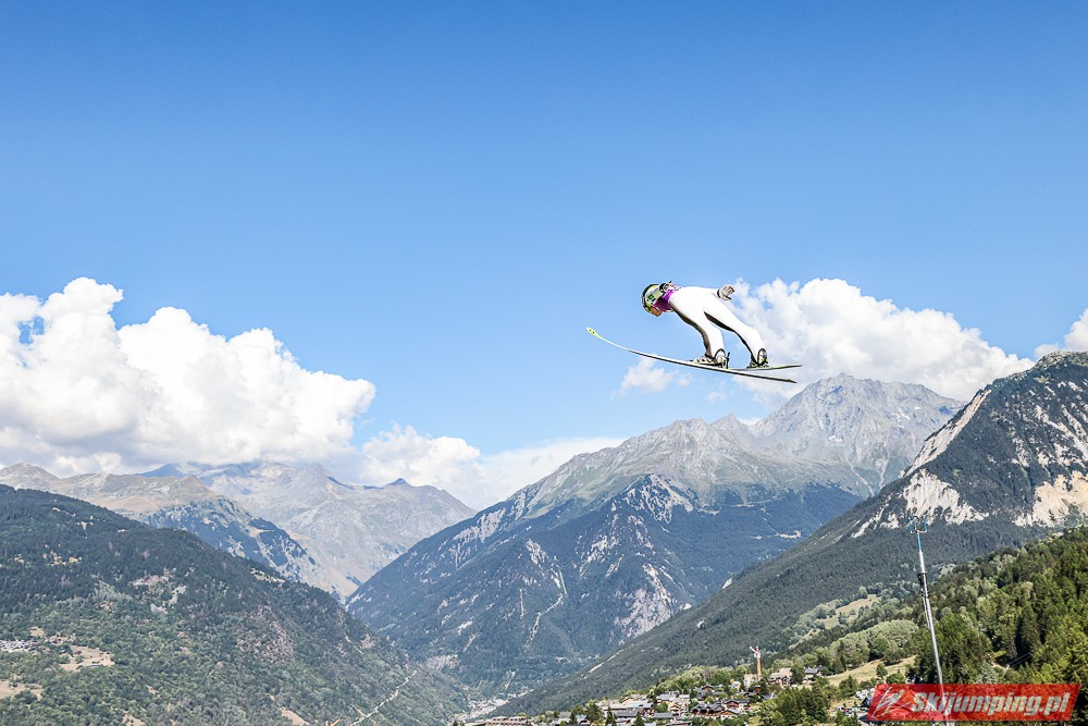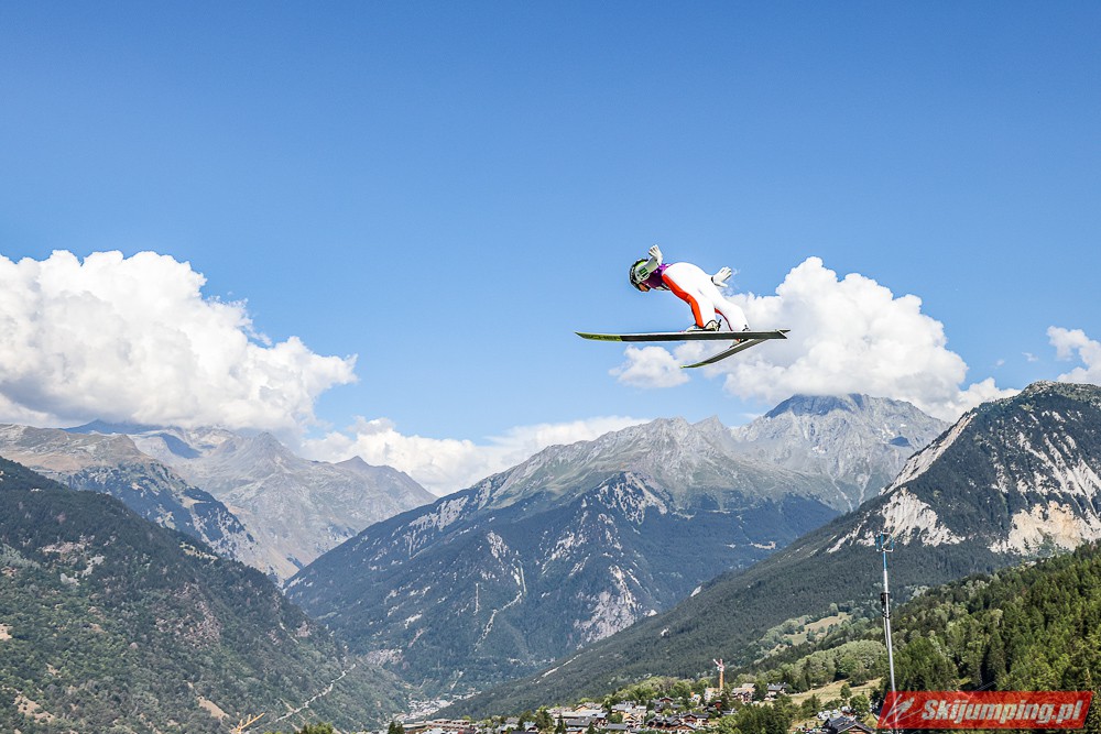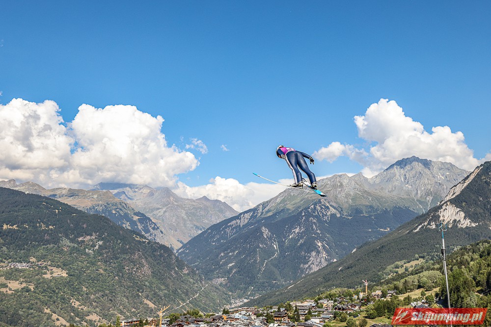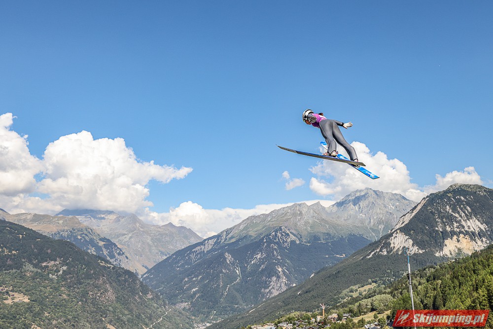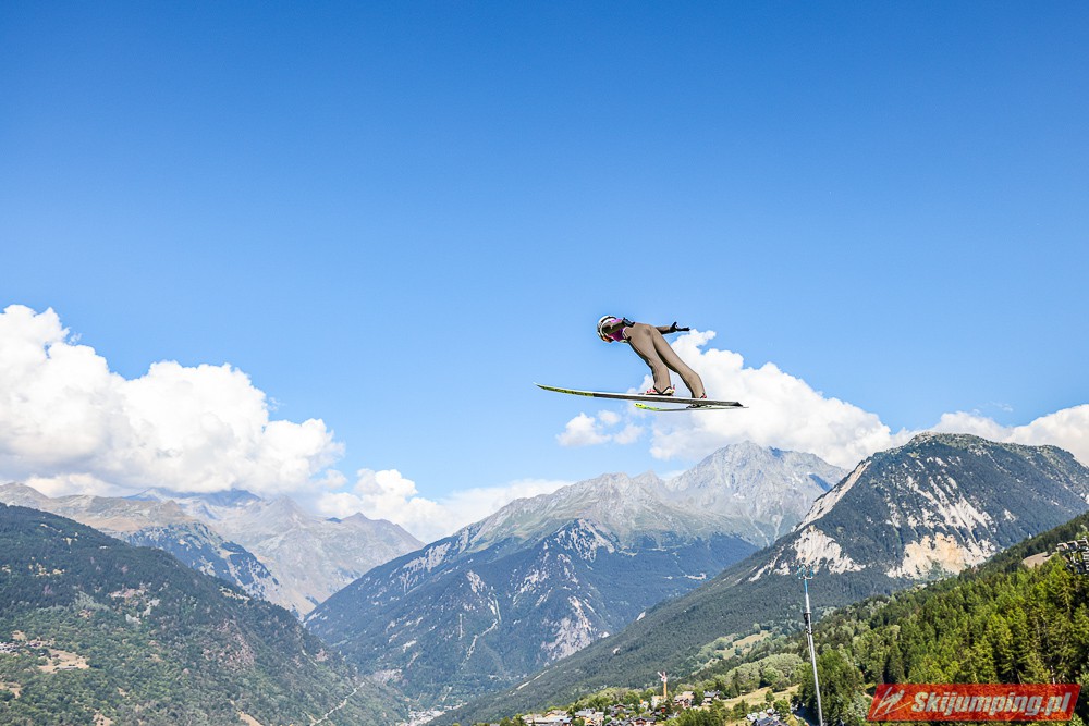 W pierwszej serii rywalkom odleciała Ursa Bogataj. Liderka Letniego Grand Prix poszybowała na odległość 125,5 metra i na półmetku zmagań w Courchevel prowadziła z przewagą 13,9 punktu nad Niką Kriznar (115,5 m). Trzecie miejsce, ze stratą 17,2 pkt. do liderki, zajmowała zawodniczka gospodarzy, Julia Clair (121 m). Czwarta była Luisa Goerlich (126,5 m), piąta Josephine Pagnier (105,5 m), a szósta Nika Prevc (118 m).