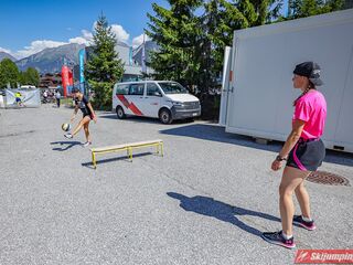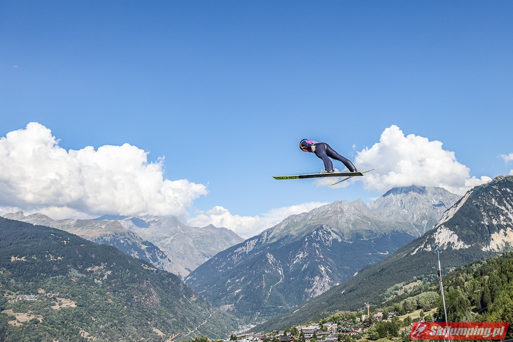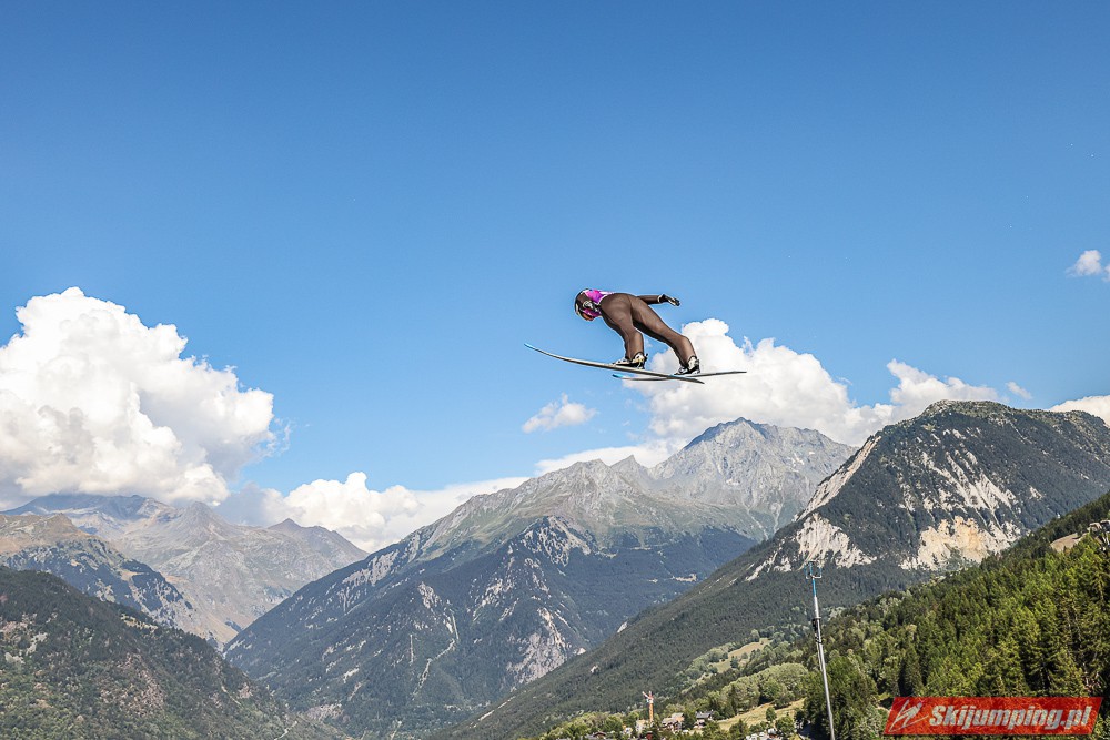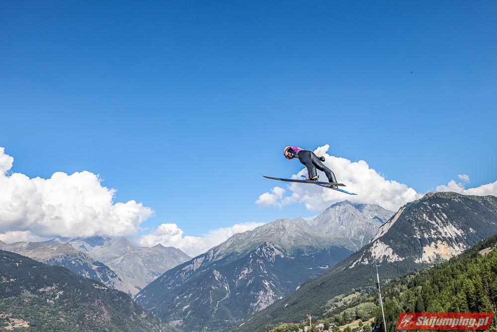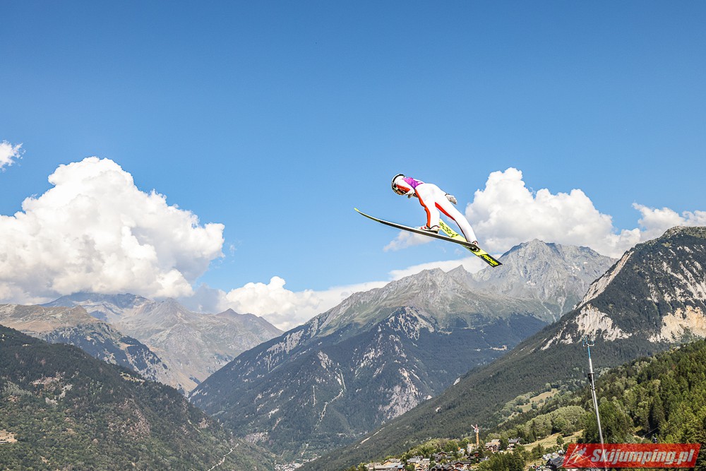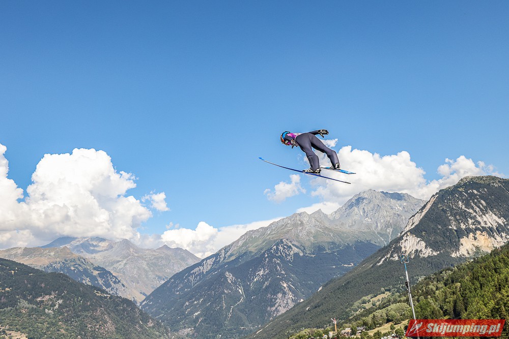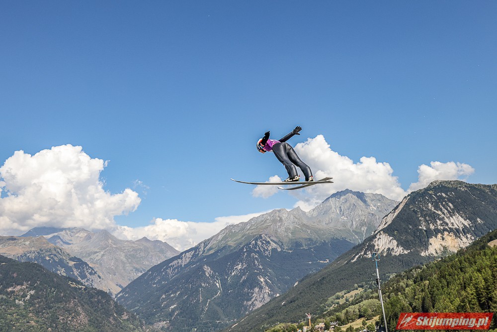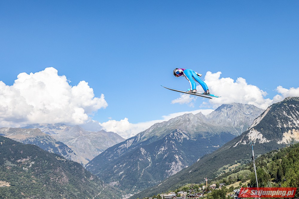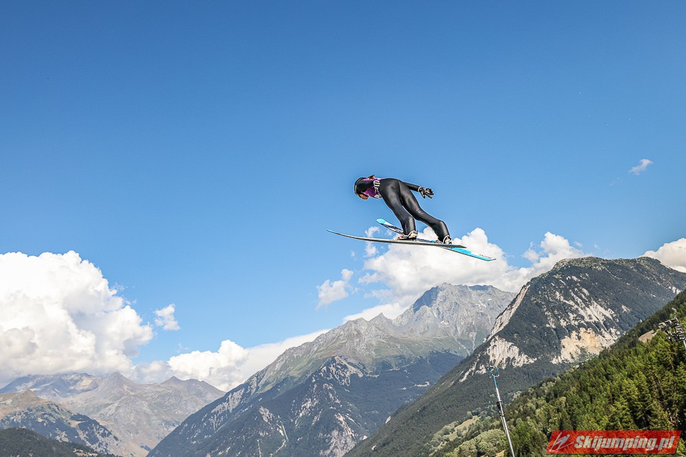 W pierwszej serii rywalkom odleciała Ursa Bogataj. Liderka Letniego Grand Prix poszybowała na odległość 125,5 metra i na półmetku zmagań w Courchevel prowadziła z przewagą 13,9 punktu nad Niką Kriznar (115,5 m). Trzecie miejsce, ze stratą 17,2 pkt. do liderki, zajmowała zawodniczka gospodarzy, Julia Clair (121 m). Czwarta była Luisa Goerlich (126,5 m), piąta Josephine Pagnier (105,5 m), a szósta Nika Prevc (118 m).