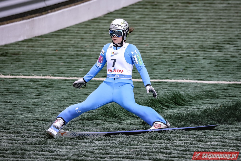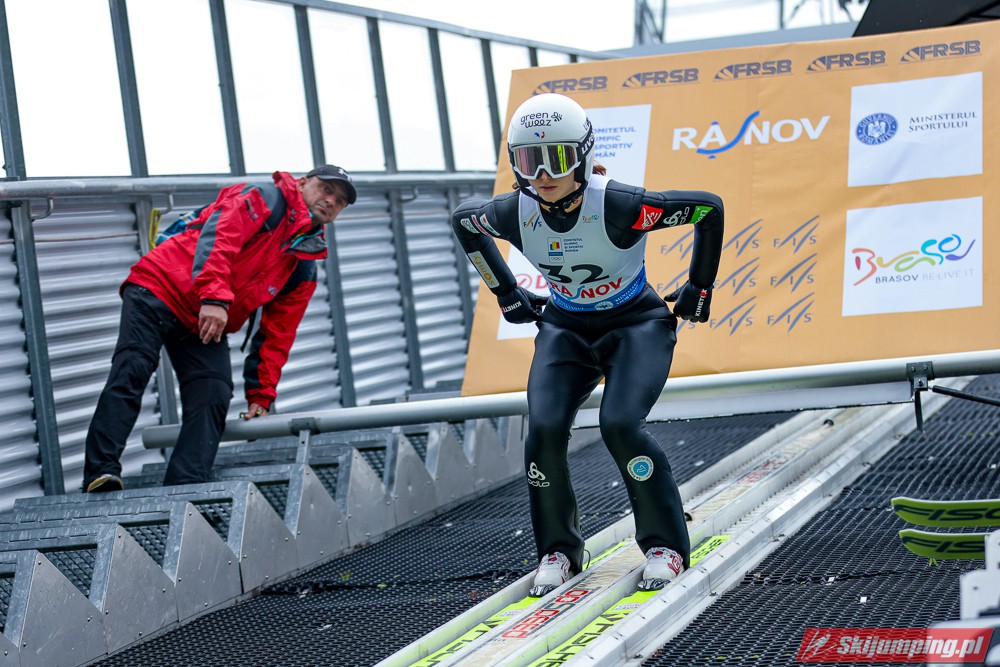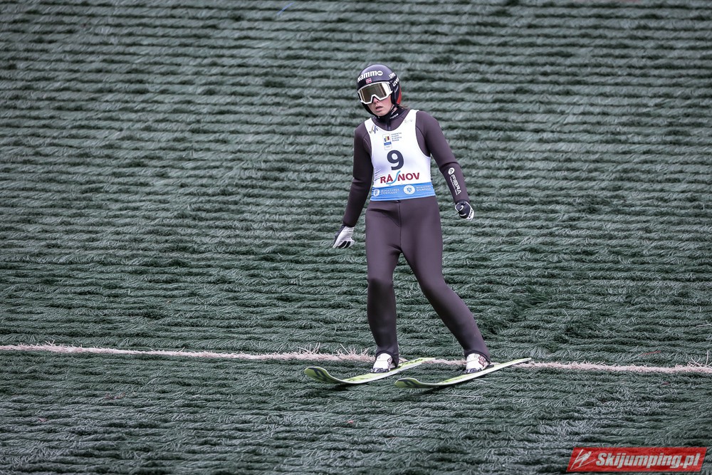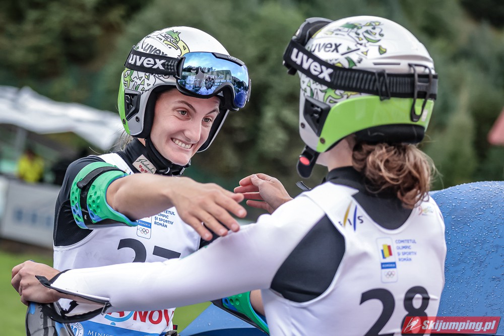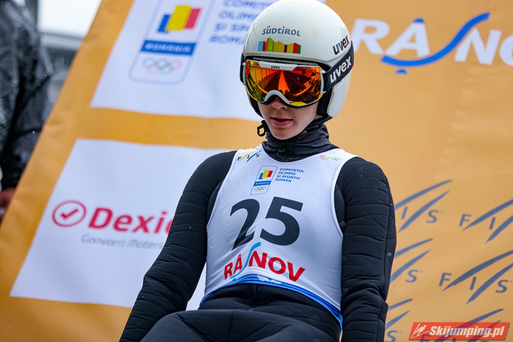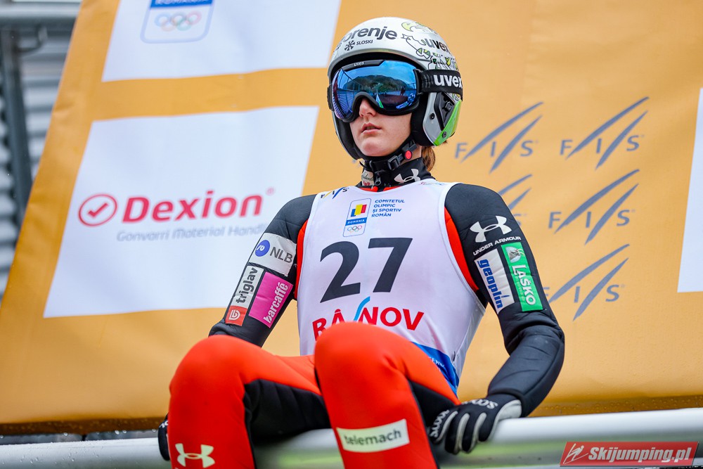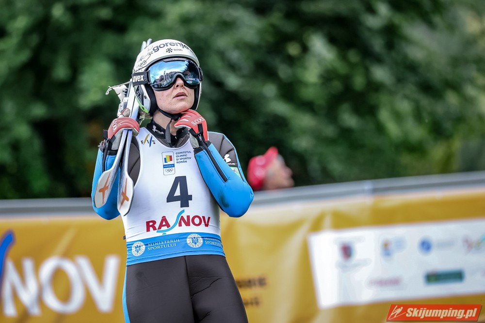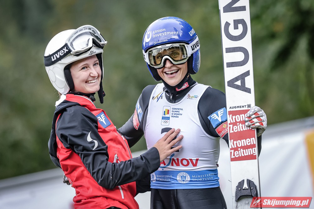 Eva Pinkelnig była jedyną skoczkinią, która w pierwszej serii zdołała przekroczyć 90 metr, a więc punkt konstrukcyjny rumuńskiego obiektu. Wynik trzykrotnej triumfatorki zawodów z cyklu Pucharu Świata to 92,5 metra. Austriaczka przed finałową próbą ma 11-punktową przewagę nad Ursą Bogataj. Słowenka skakała ze skróconego najazdu i doleciała do 85 metra. Trzecia na półmetku była Julia Clair (85,5 m) przed Nagomi Nakayamą (85 m), Julią Muelhbacher (80 m) oraz Nik Prevc (81 m).