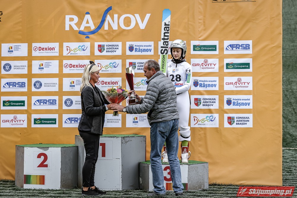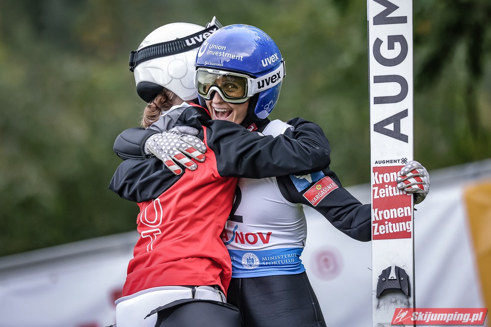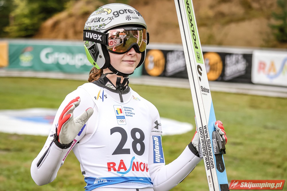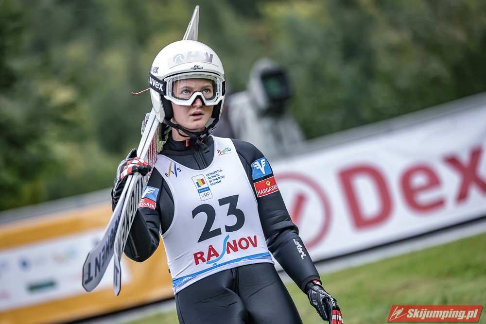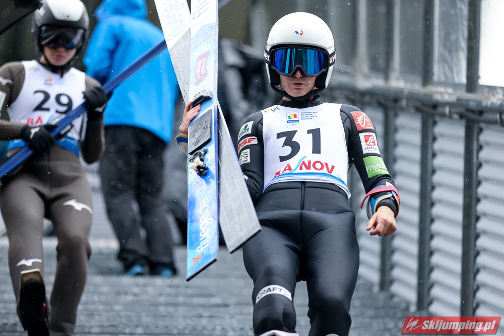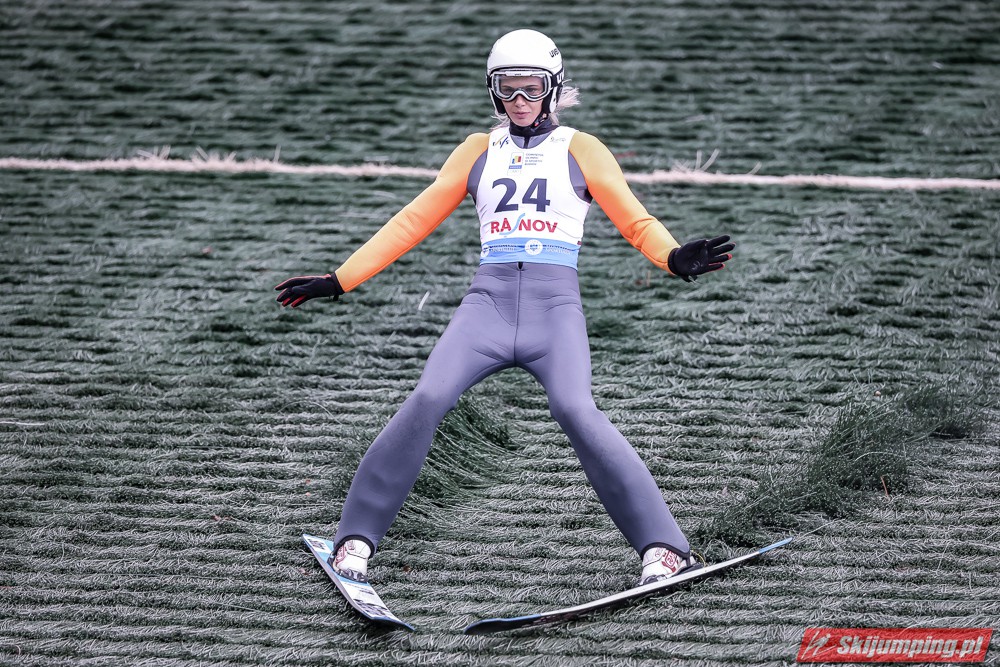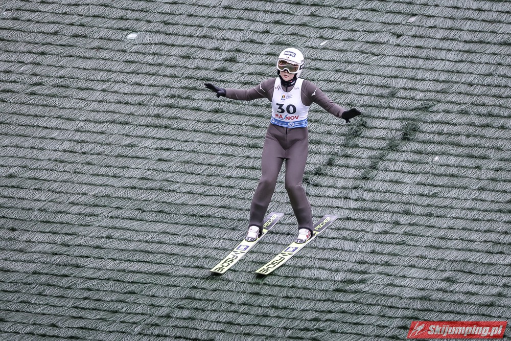 Eva Pinkelnig była jedyną skoczkinią, która w pierwszej serii zdołała przekroczyć 90 metr, a więc punkt konstrukcyjny rumuńskiego obiektu. Wynik trzykrotnej triumfatorki zawodów z cyklu Pucharu Świata to 92,5 metra. Austriaczka przed finałową próbą ma 11-punktową przewagę nad Ursą Bogataj. Słowenka skakała ze skróconego najazdu i doleciała do 85 metra. Trzecia na półmetku była Julia Clair (85,5 m) przed Nagomi Nakayamą (85 m), Julią Muelhbacher (80 m) oraz Nik Prevc (81 m).