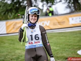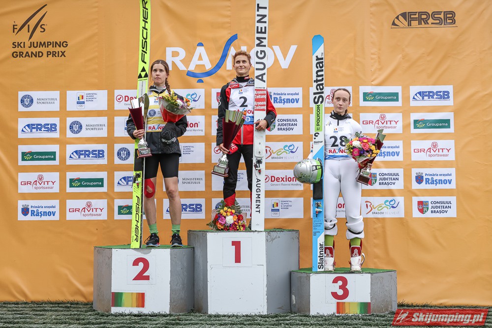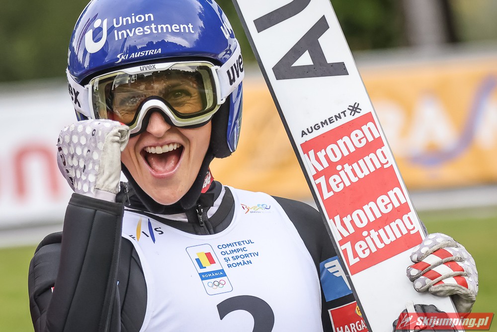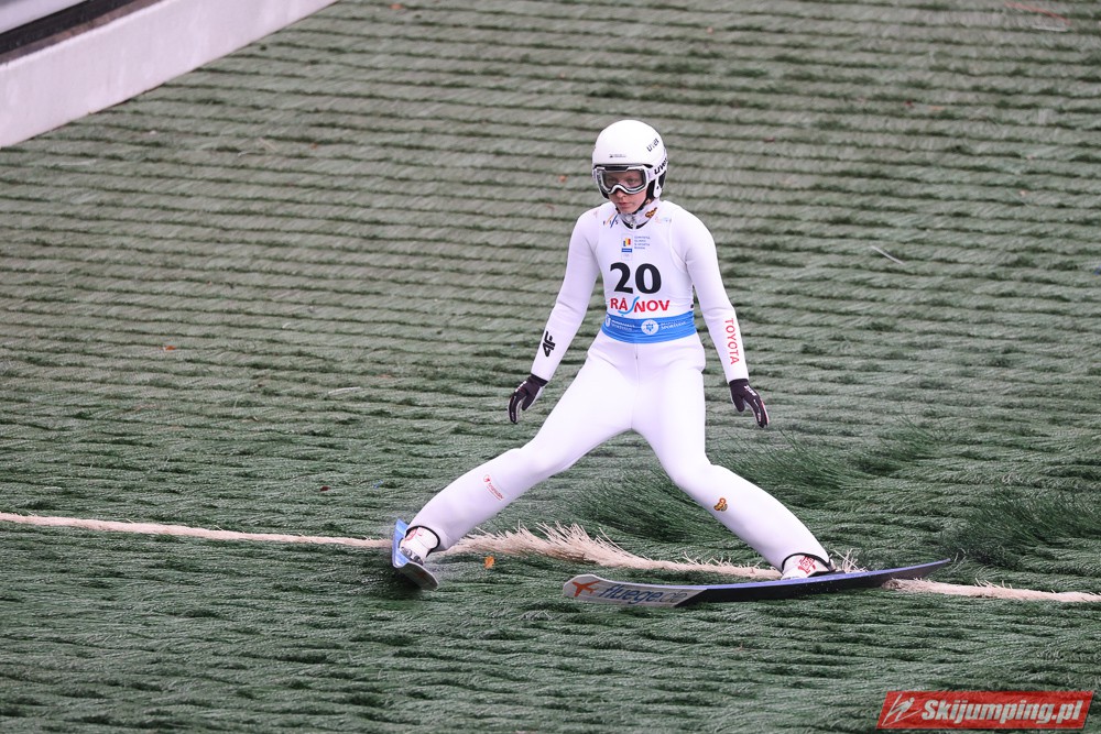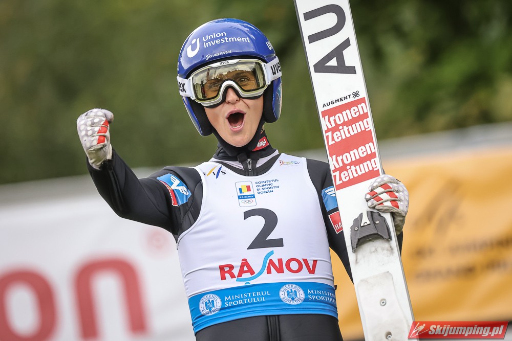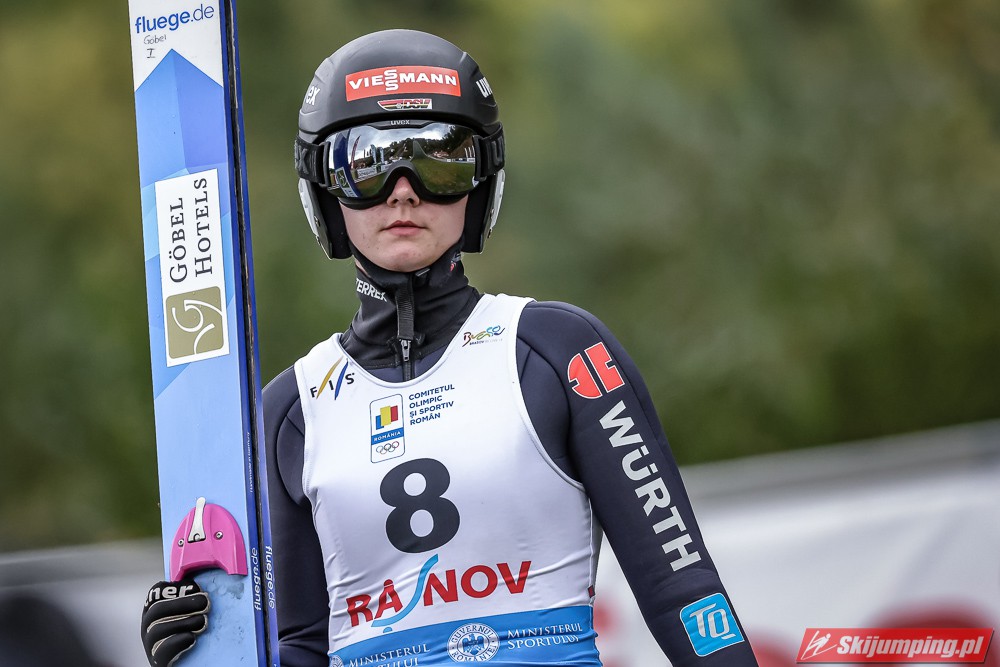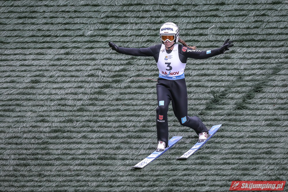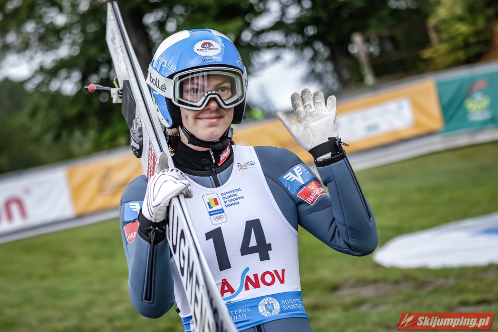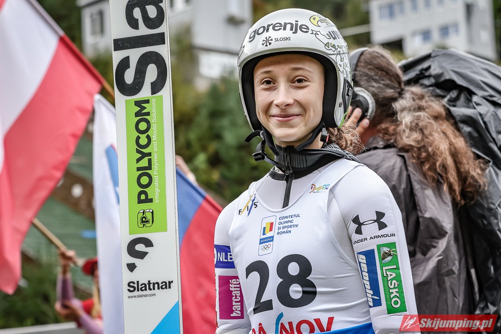Eva Pinkelnig była jedyną skoczkinią, która w pierwszej serii zdołała przekroczyć 90 metr, a więc punkt konstrukcyjny rumuńskiego obiektu. Wynik trzykrotnej triumfatorki zawodów z cyklu Pucharu Świata to 92,5 metra. Austriaczka przed finałową próbą ma 11-punktową przewagę nad Ursą Bogataj. Słowenka skakała ze skróconego najazdu i doleciała do 85 metra. Trzecia na półmetku była Julia Clair (85,5 m) przed Nagomi Nakayamą (85 m), Julią Muelhbacher (80 m) oraz Nik Prevc (81 m).