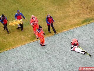 Groźny upadek zaliczyła Emely Torazza, która tuż po wybiciu się z progu runęła na zeskok na 45 metrze. Reprezentantka Szwajcarii została odwieziona do szpitala.